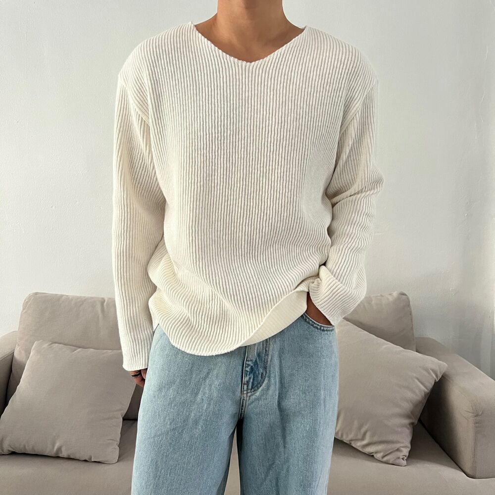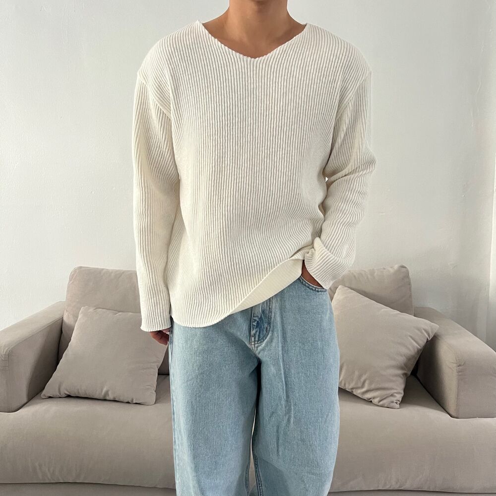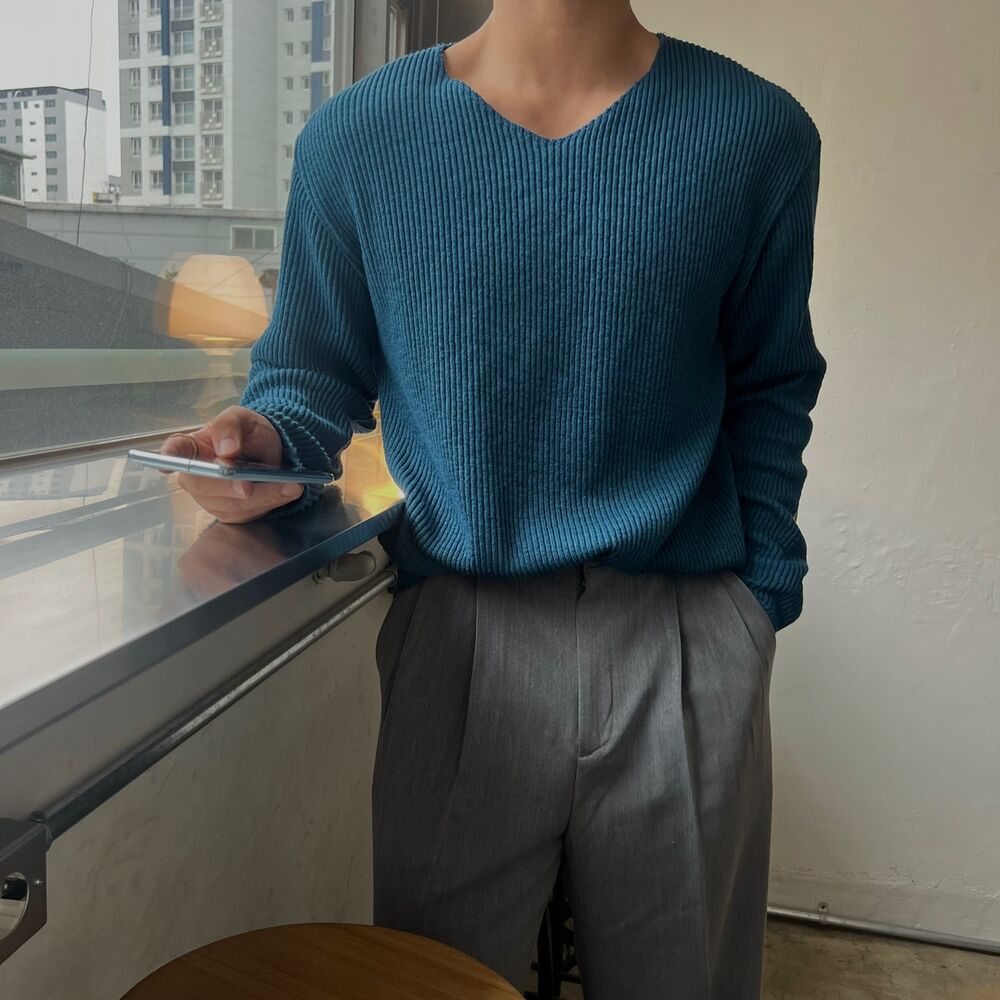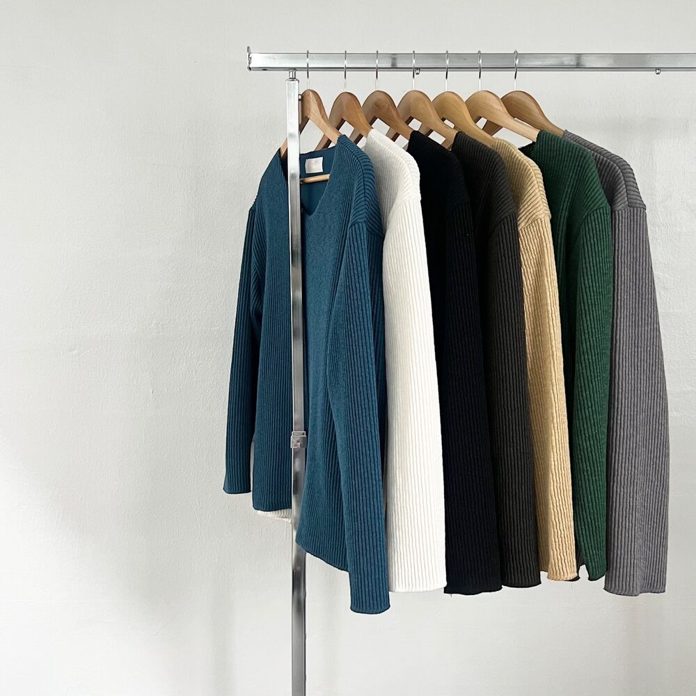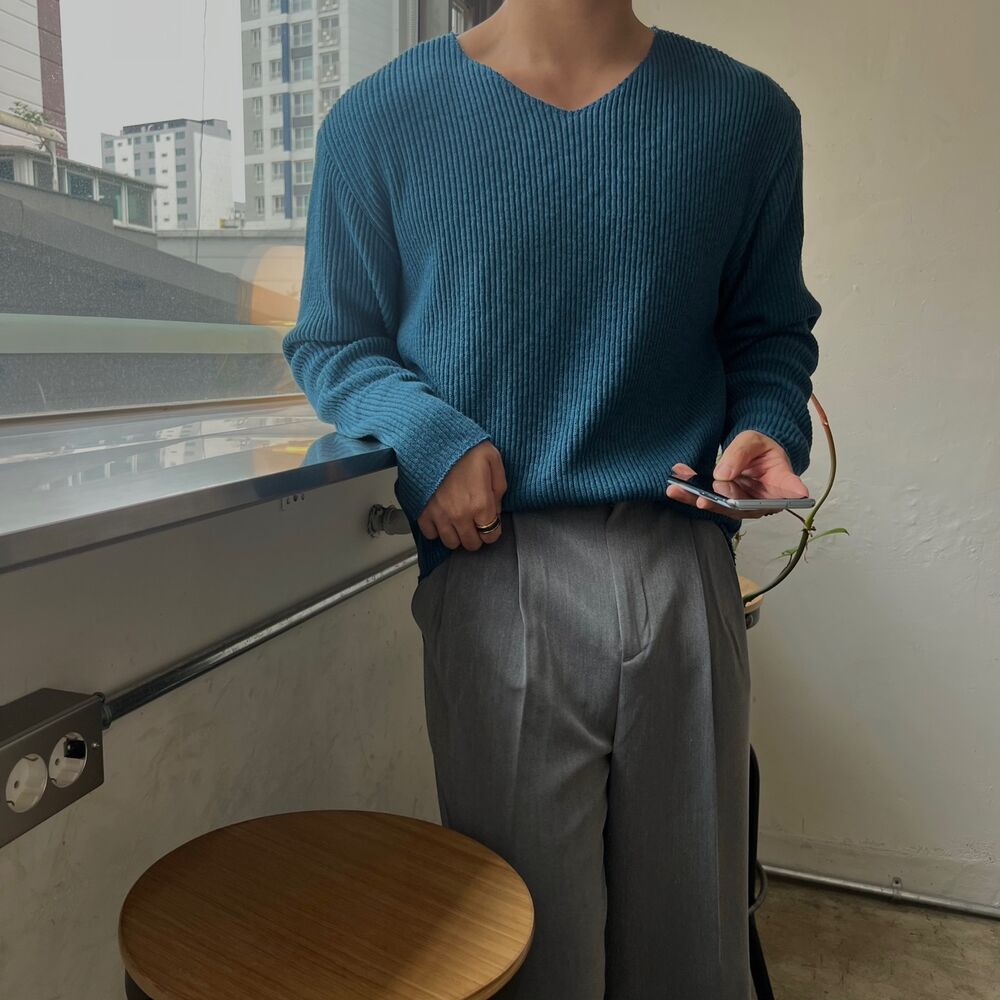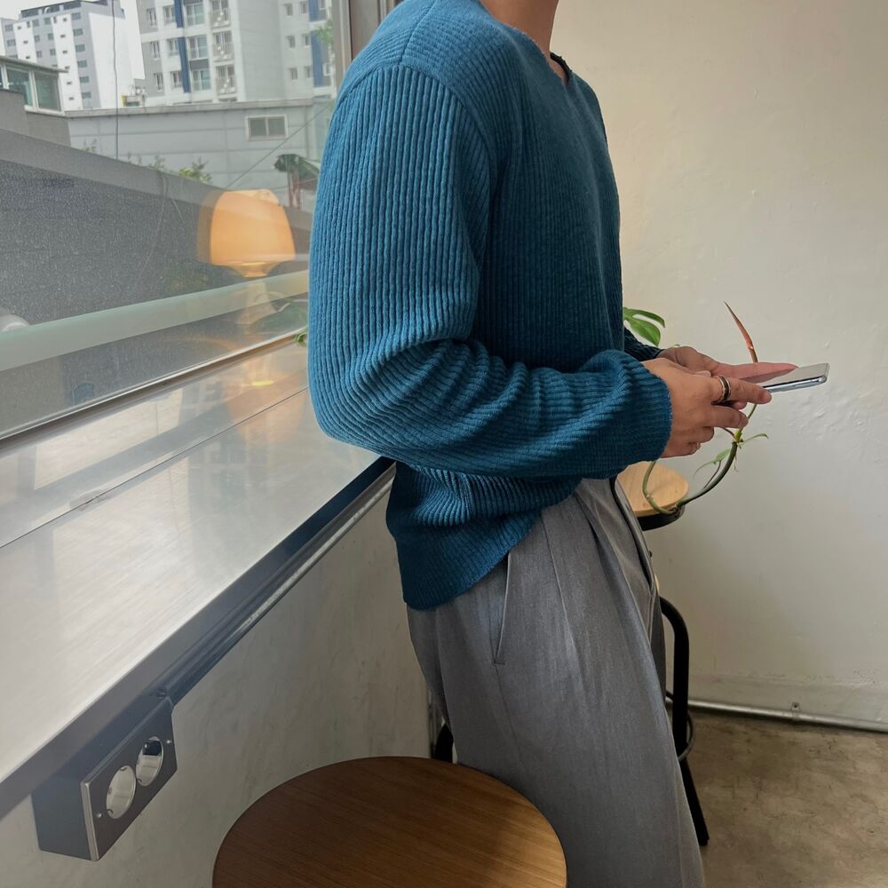 로원 골지 브이넥 데끼 니트 (7color)MD