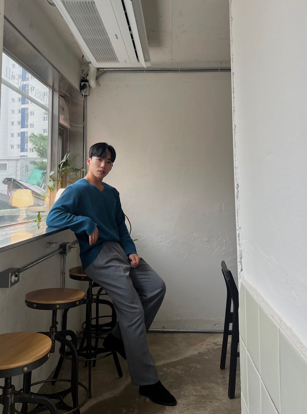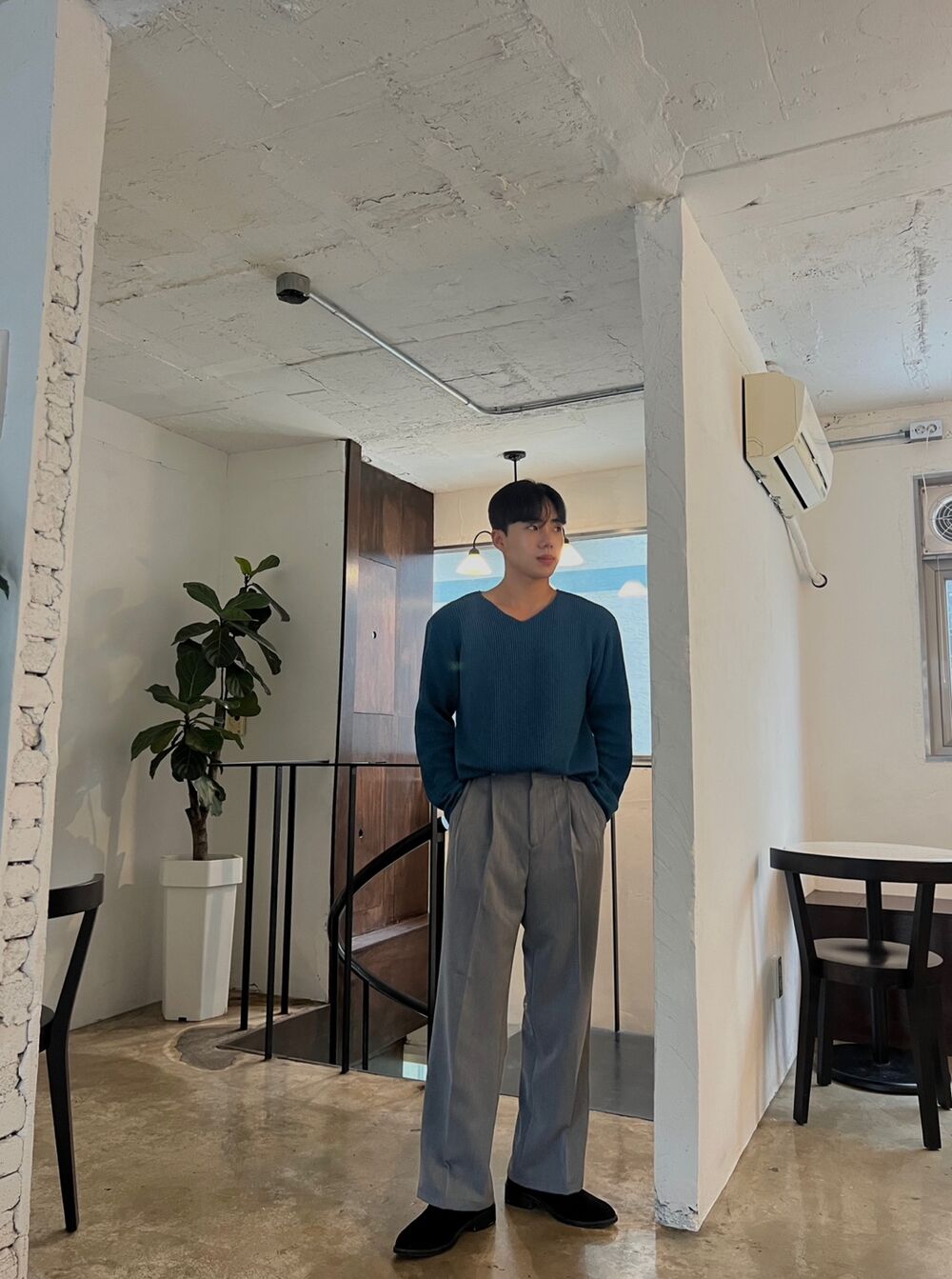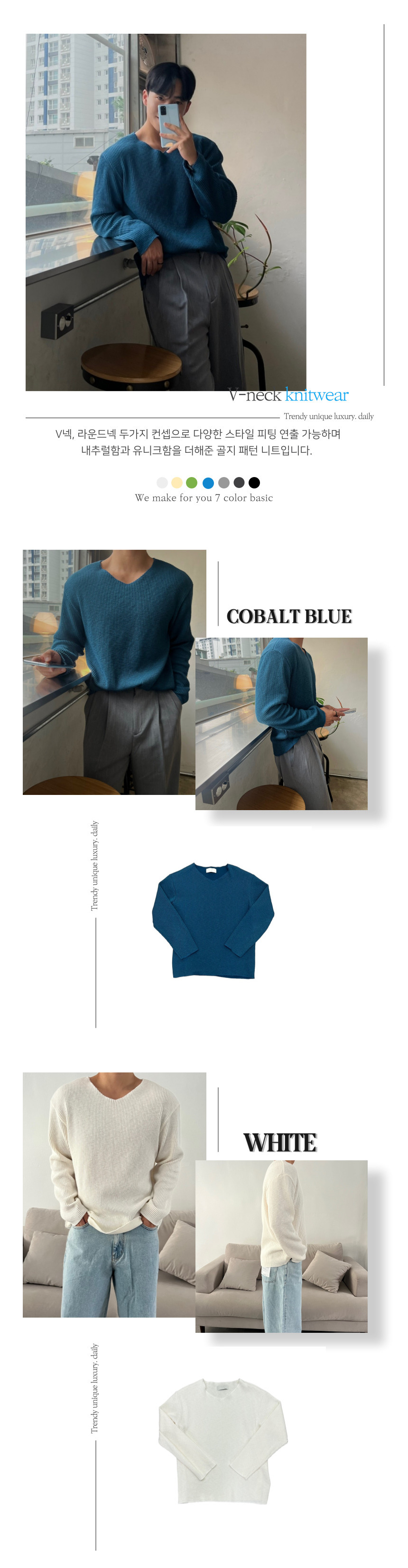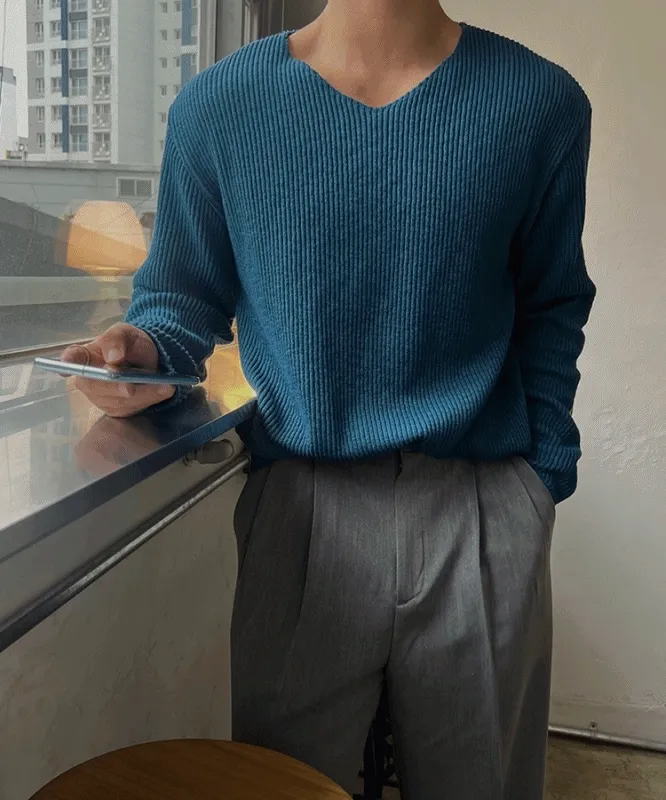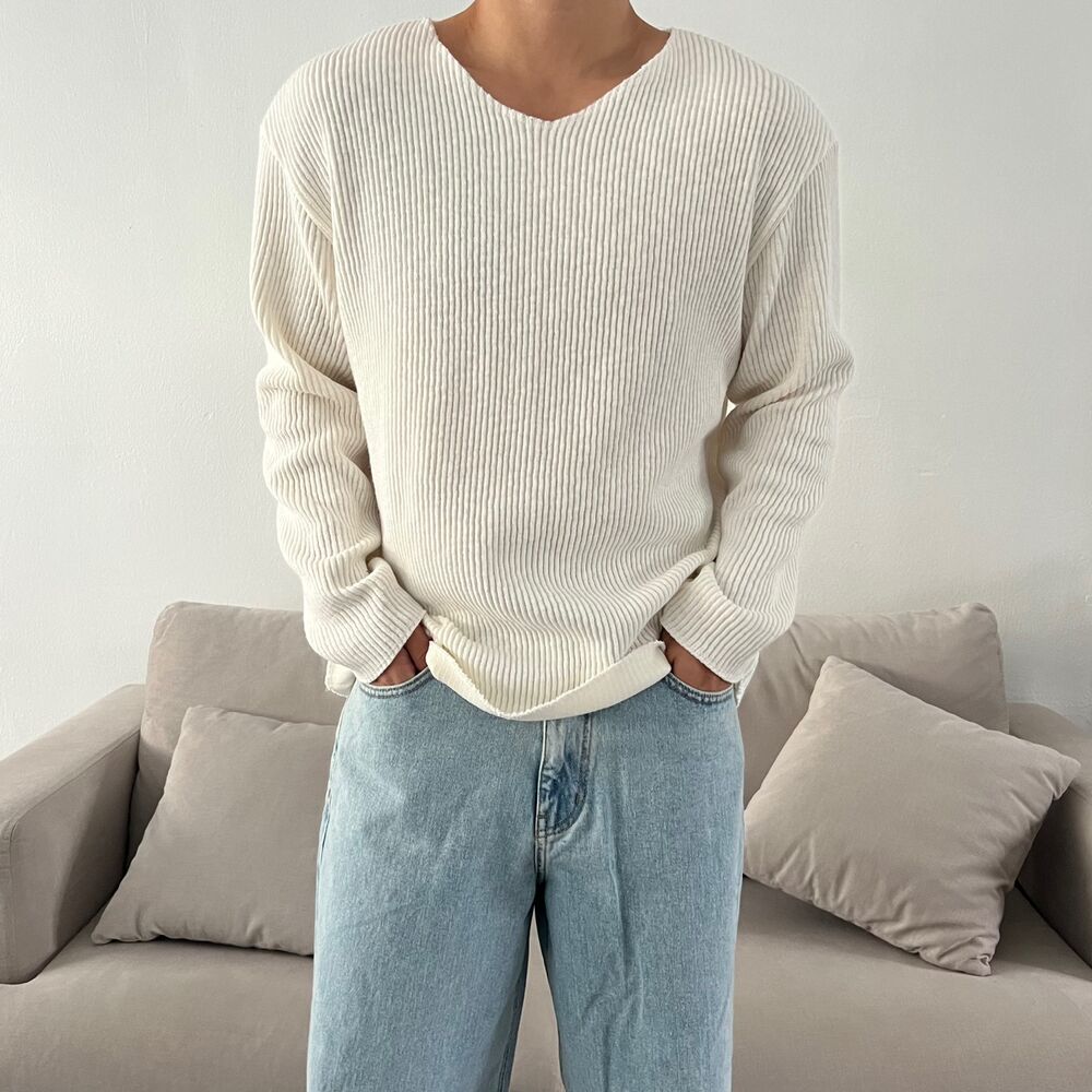 로원 골지 브이넥 데끼 니트 (7color)MD