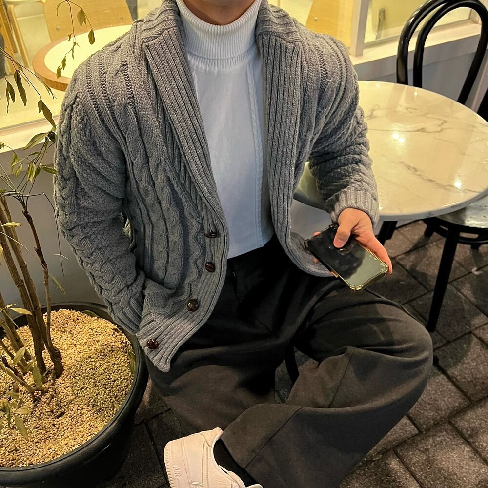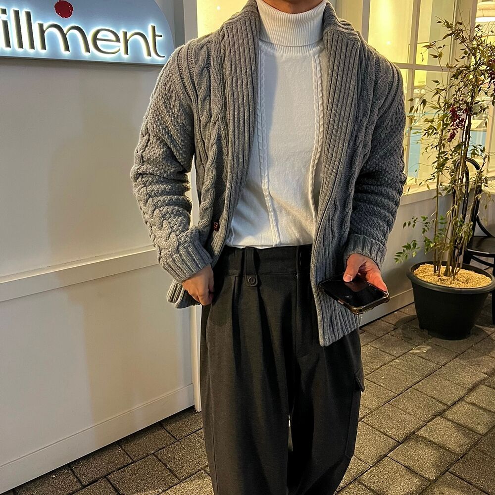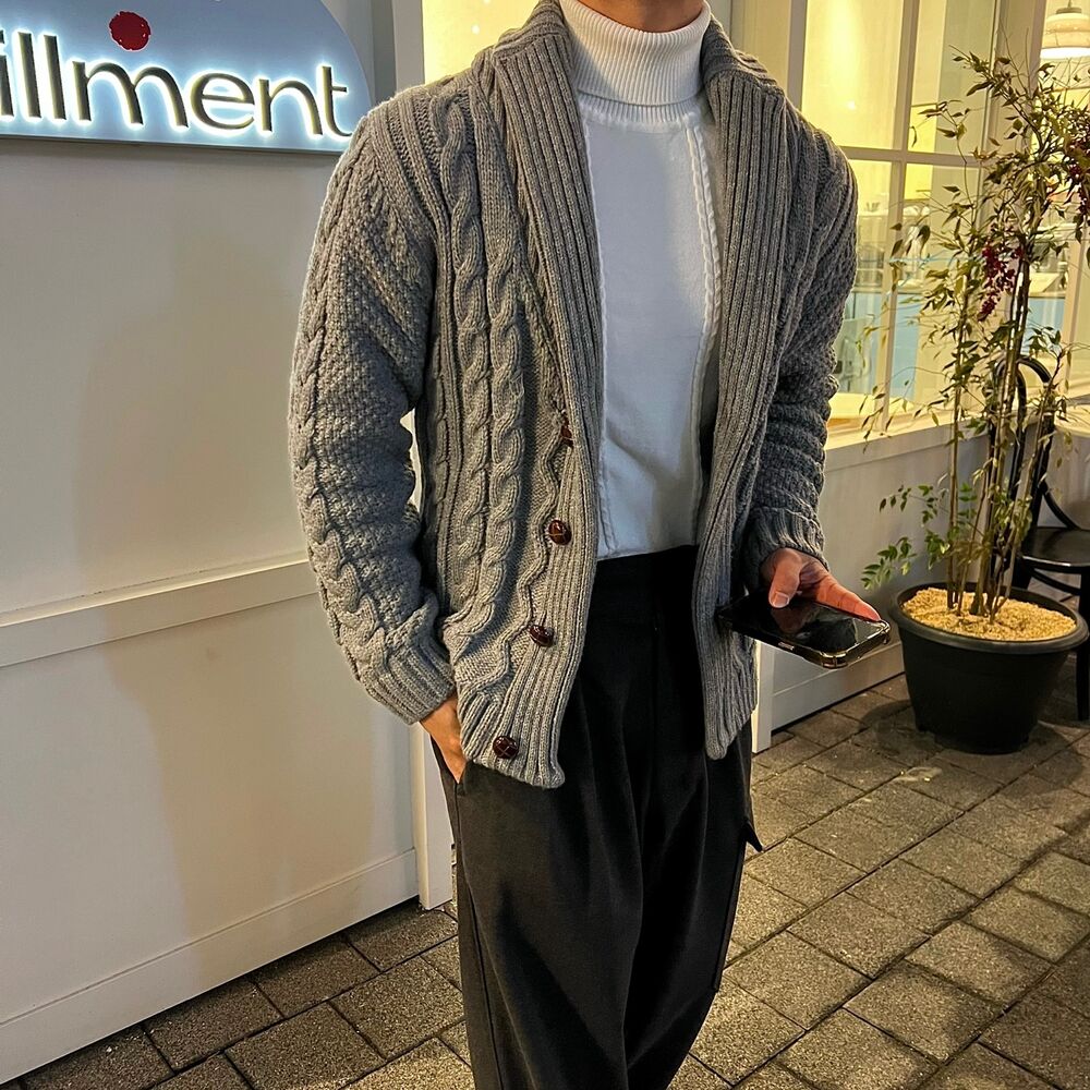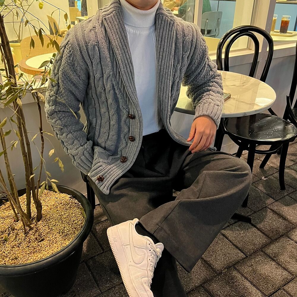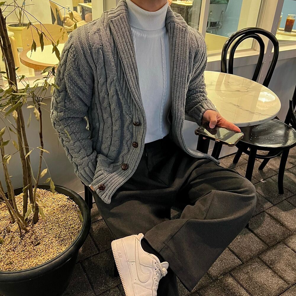 더드 캐시 울 꽈배기 카라 가디건 (2color)MD