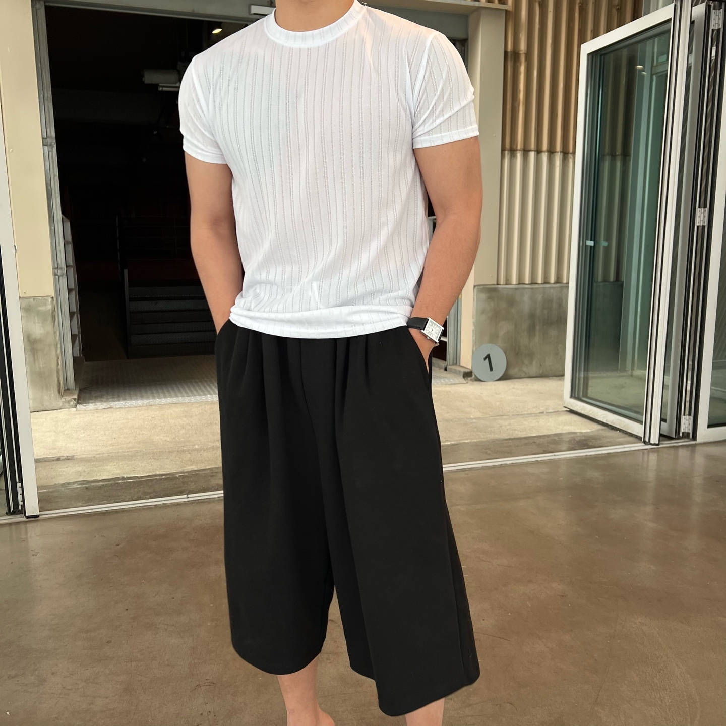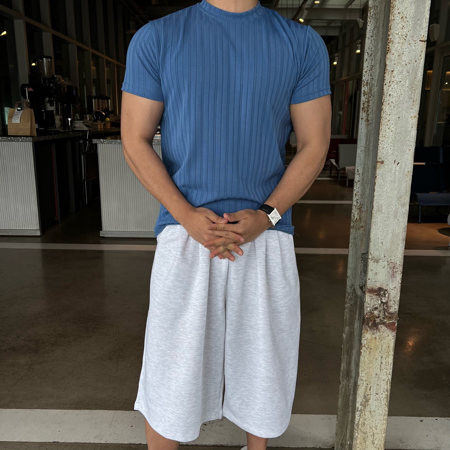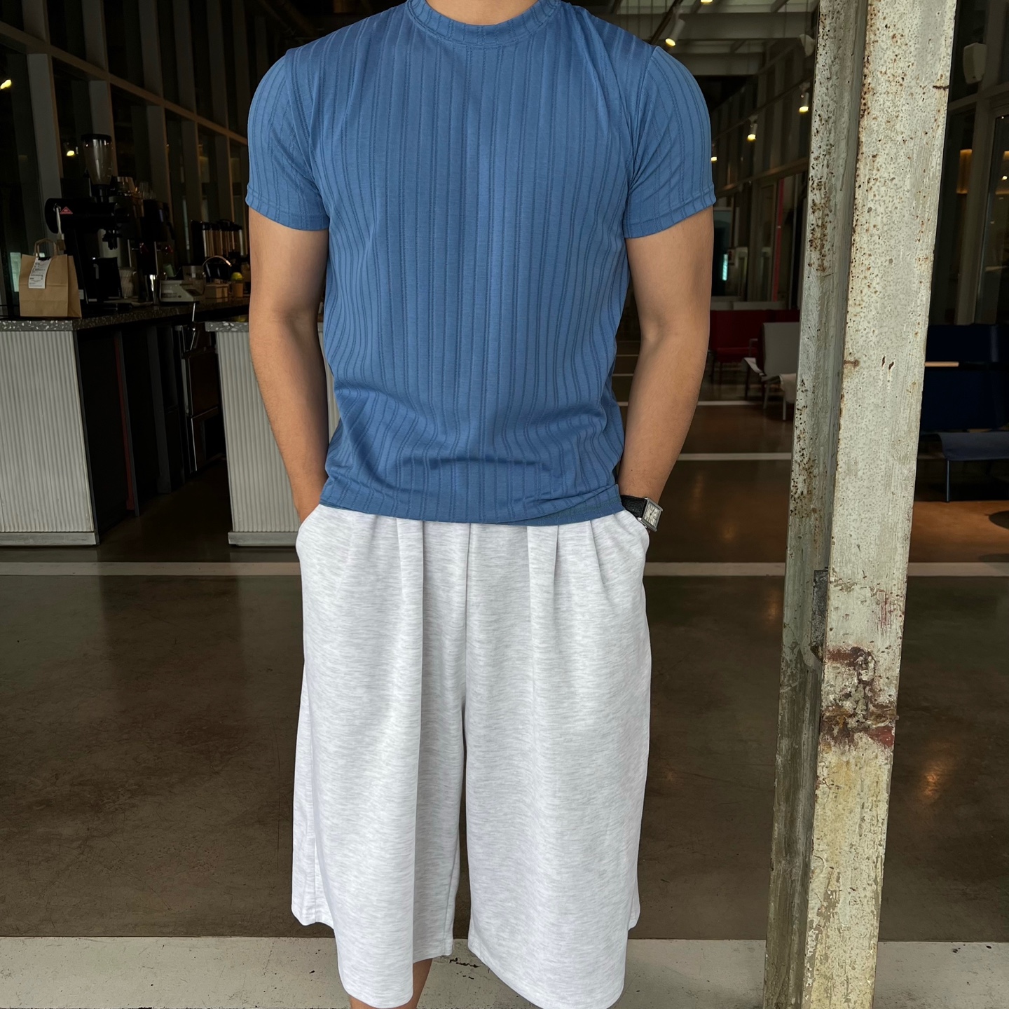 - 골지 패턴이 매력적인 반팔 니트