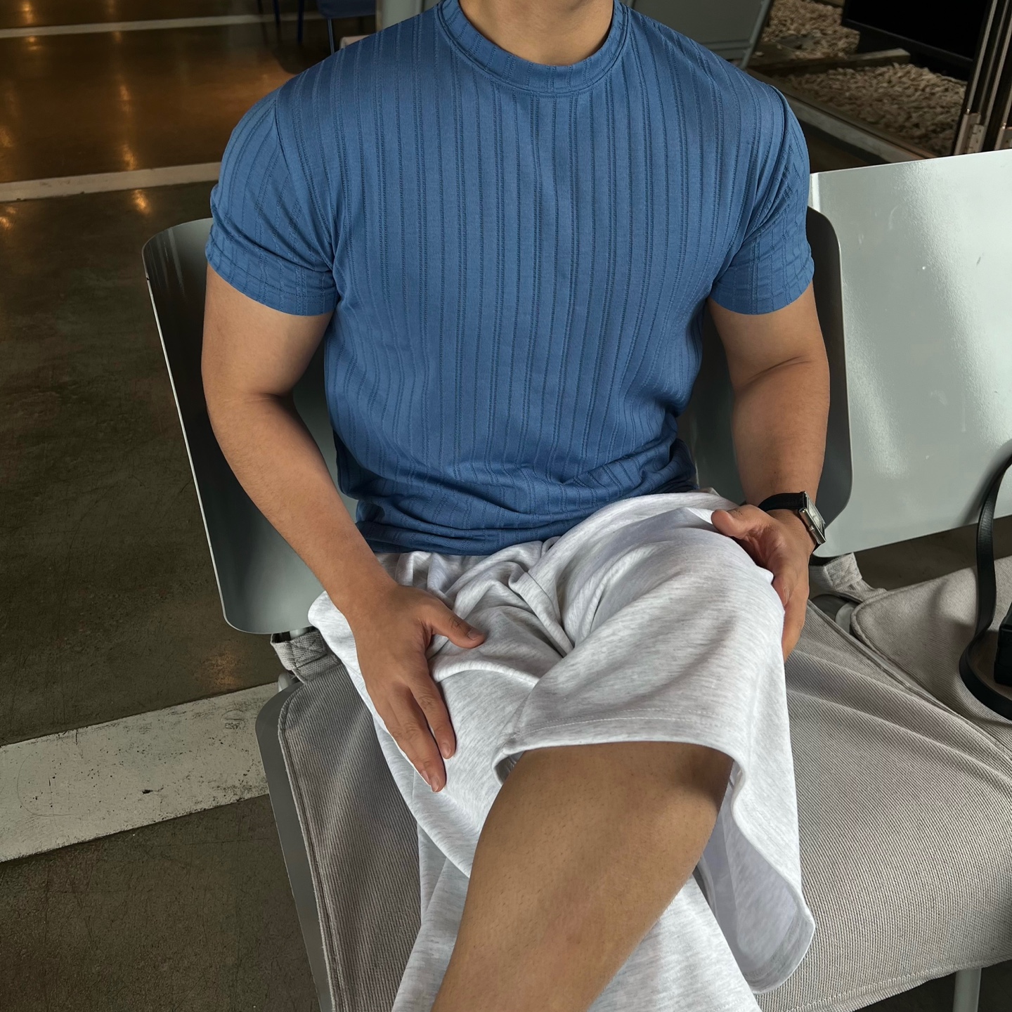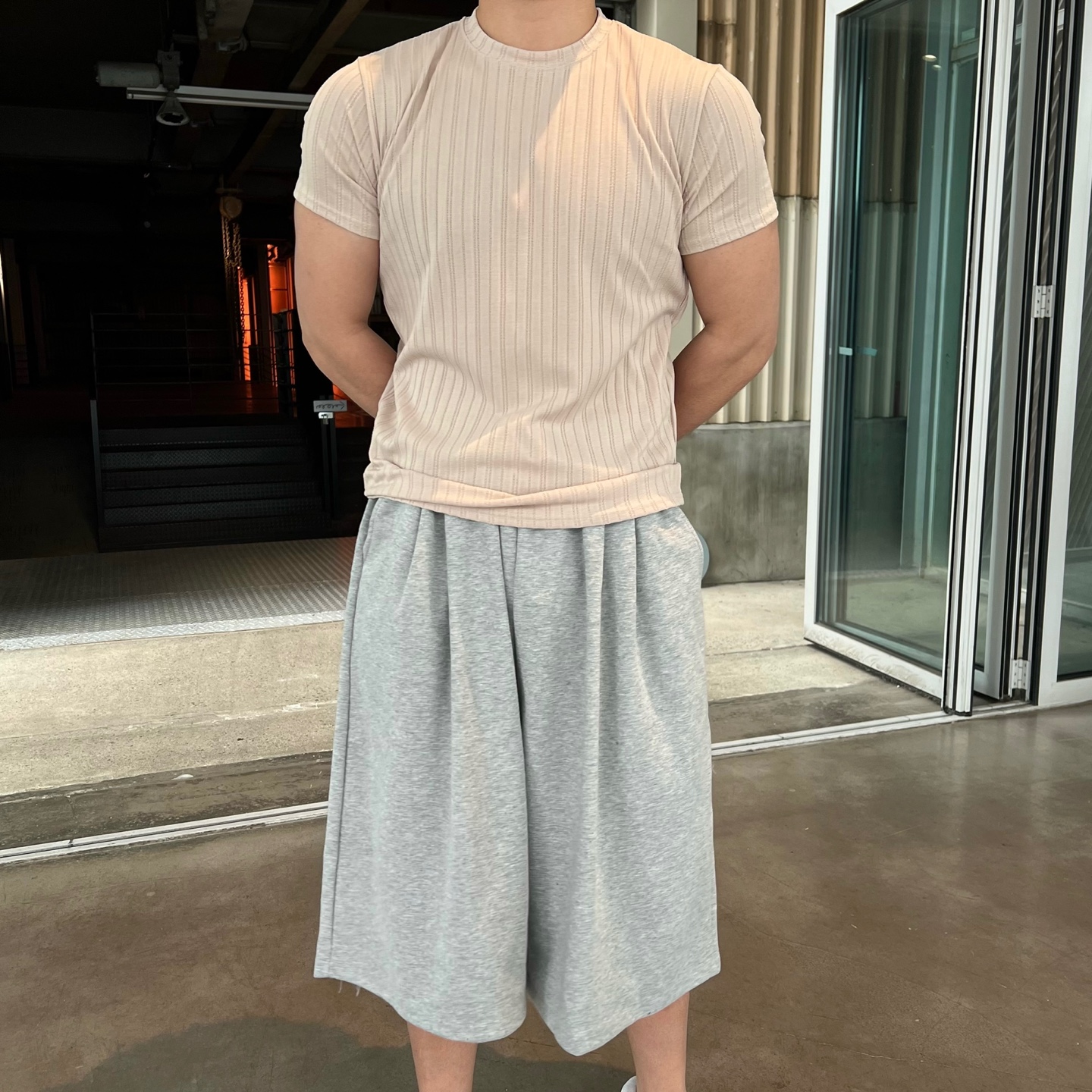 - 소매 부분을 꽉 잡아주어 머슬핏을 만들어줌