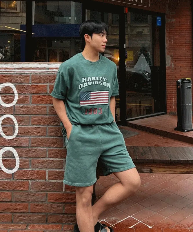- 전면 성조기 포인트가 매력적인 피그먼트 셋업