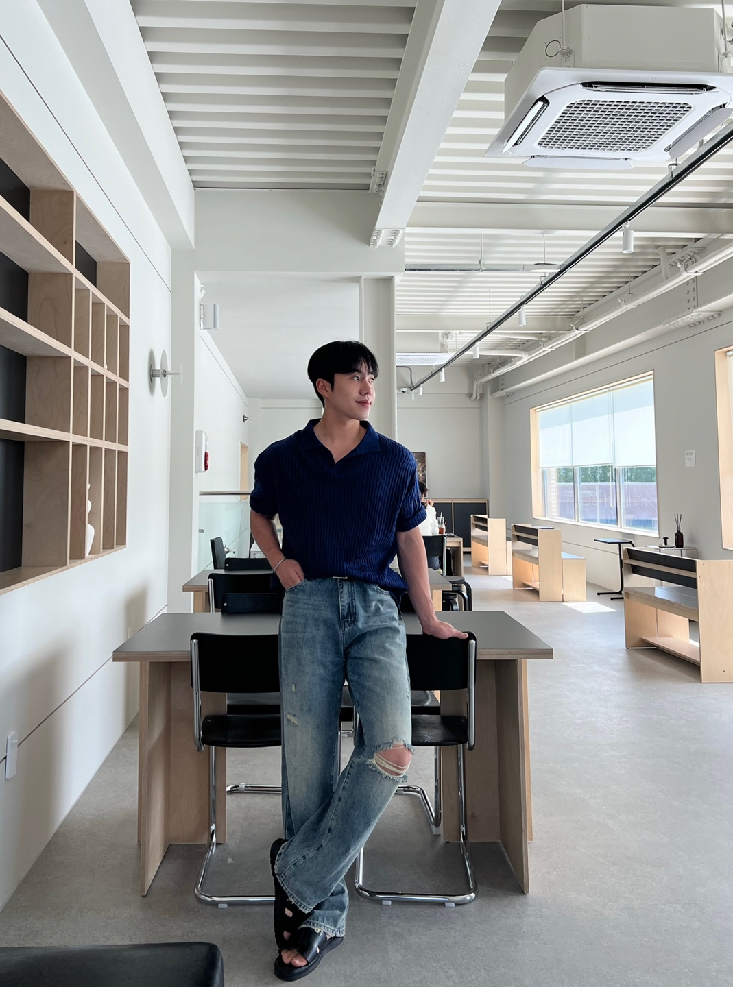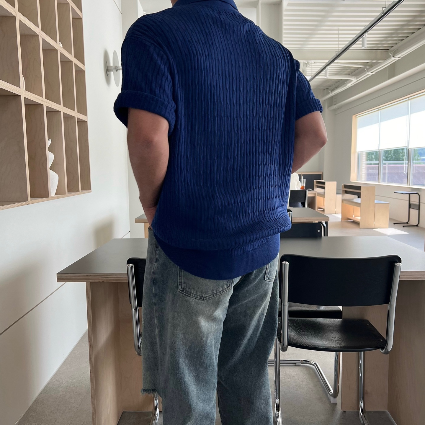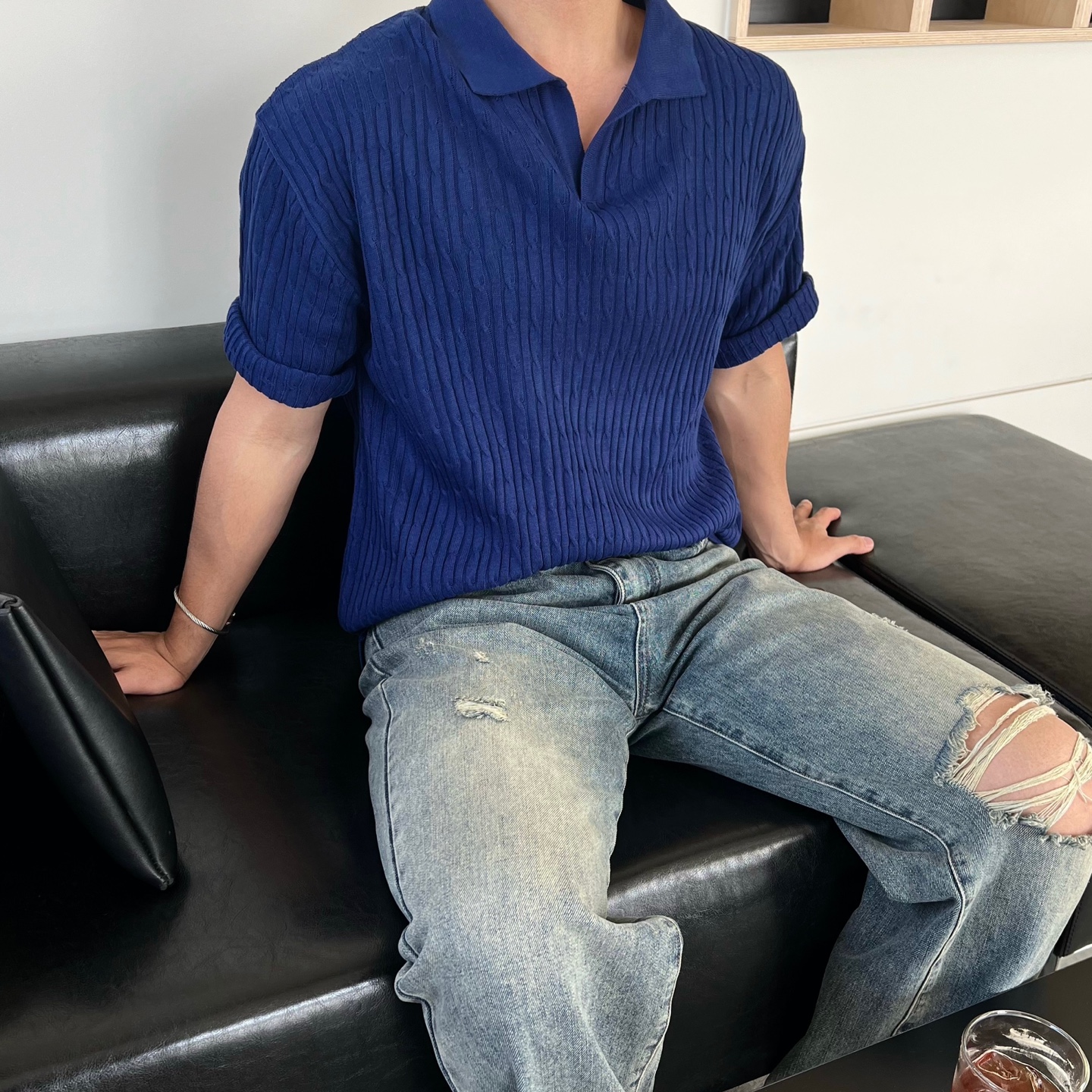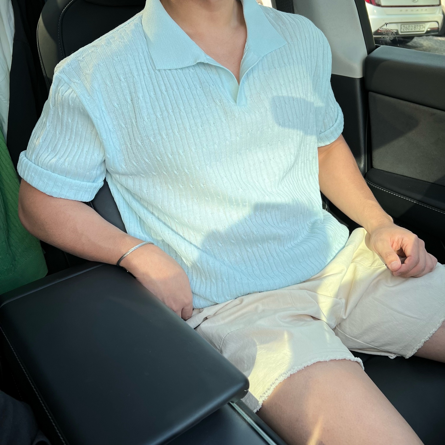 - 꽈배기 패턴이 들어간 매력적인 오픈 카라 니트