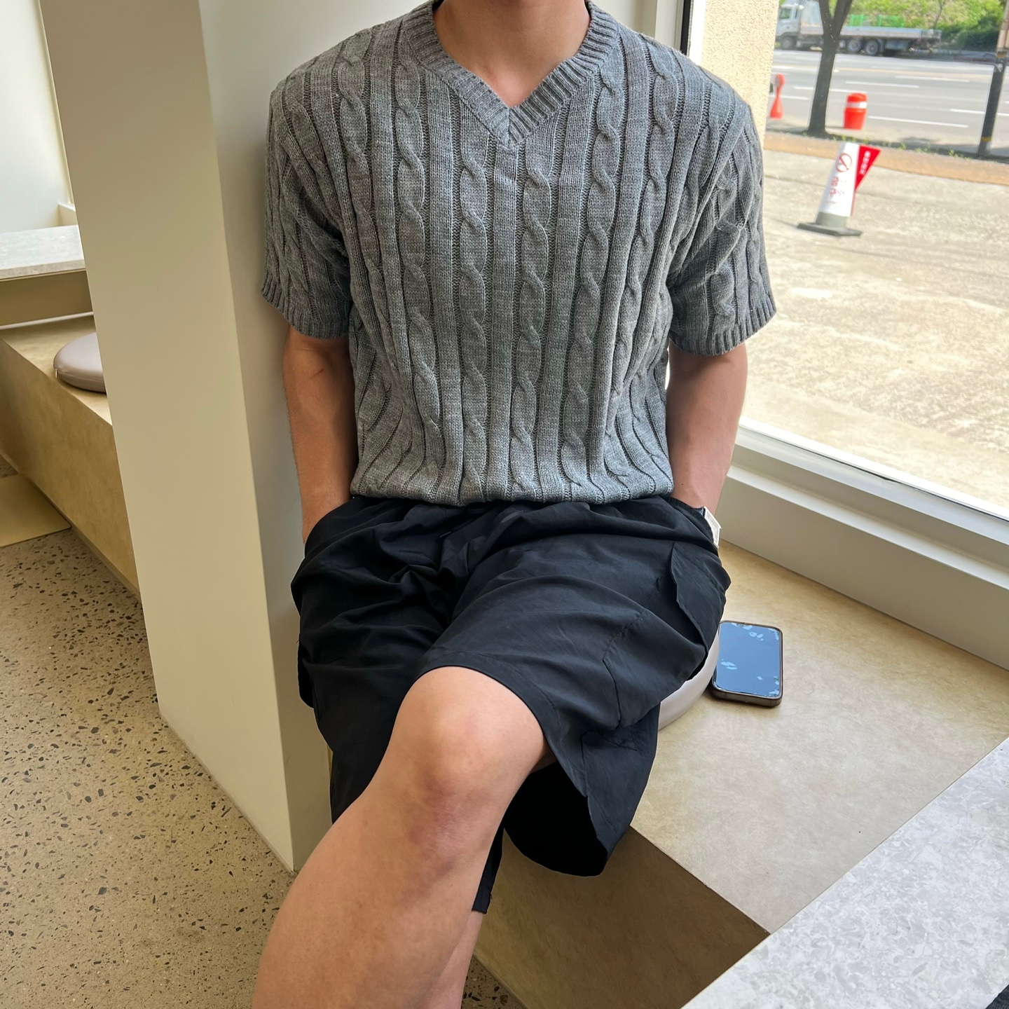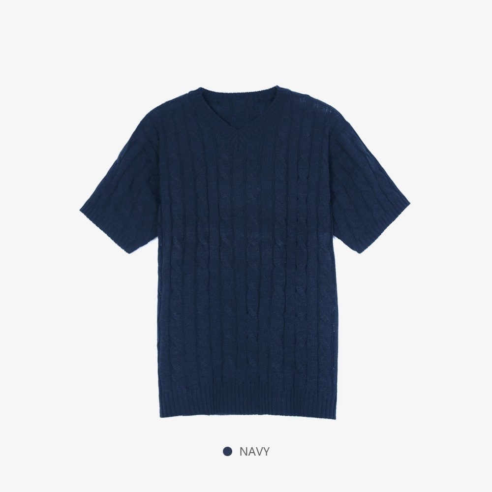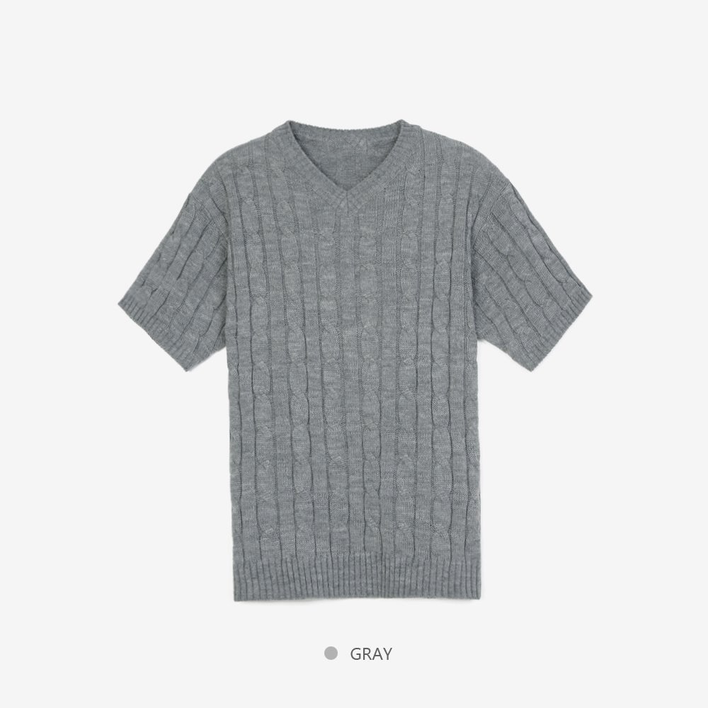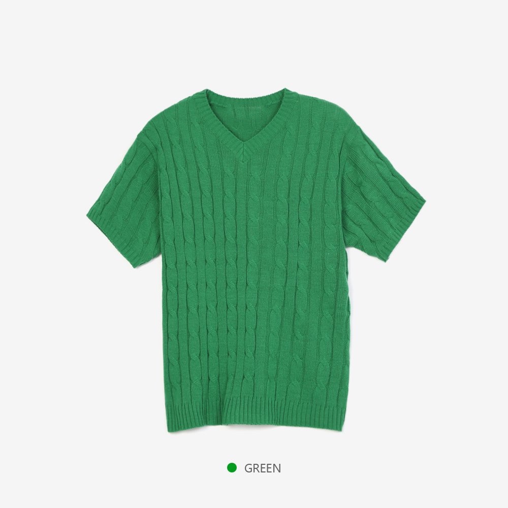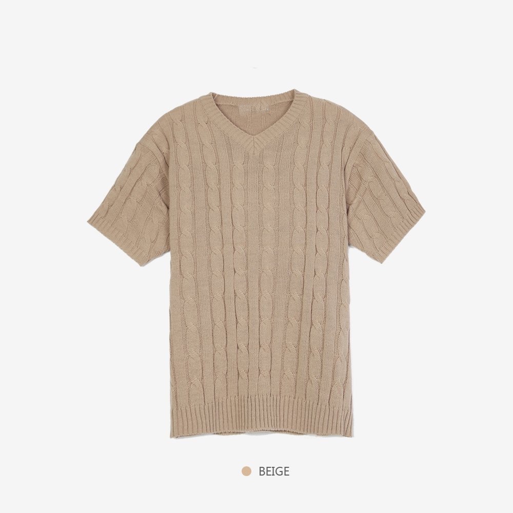 [1+1] 페르 꽈배기 브이넥 반팔 니트 (6color)