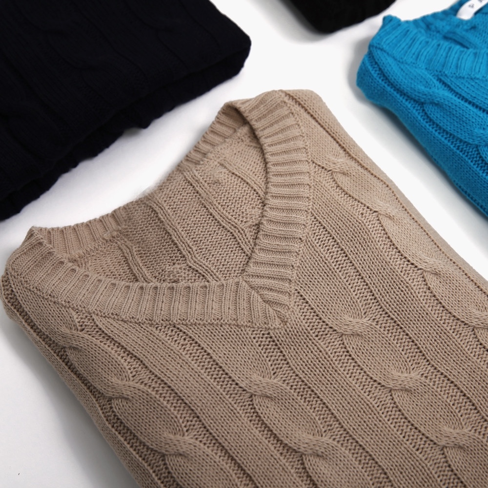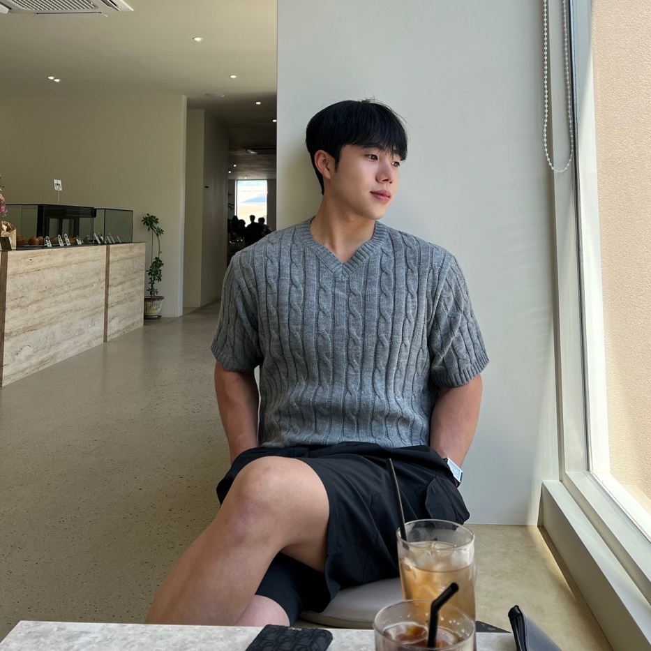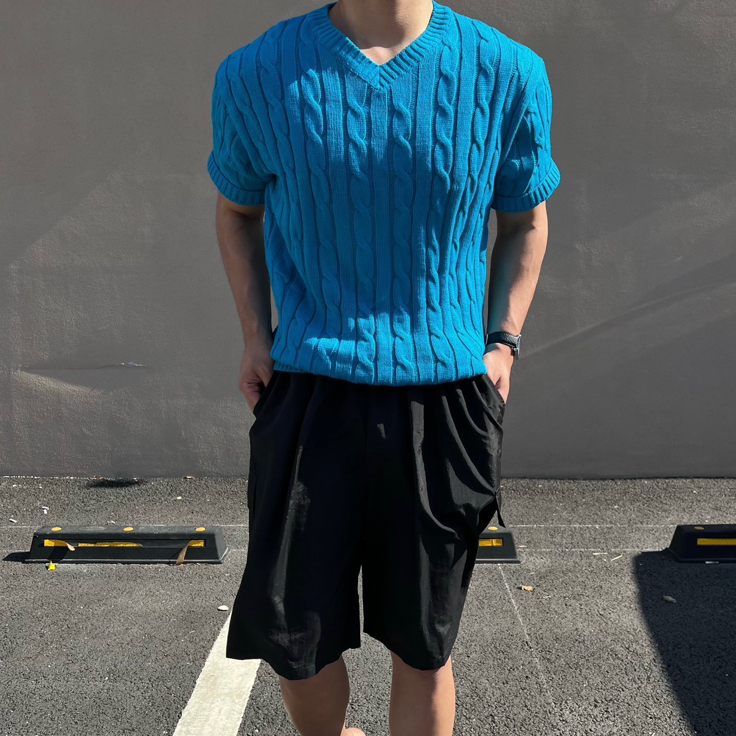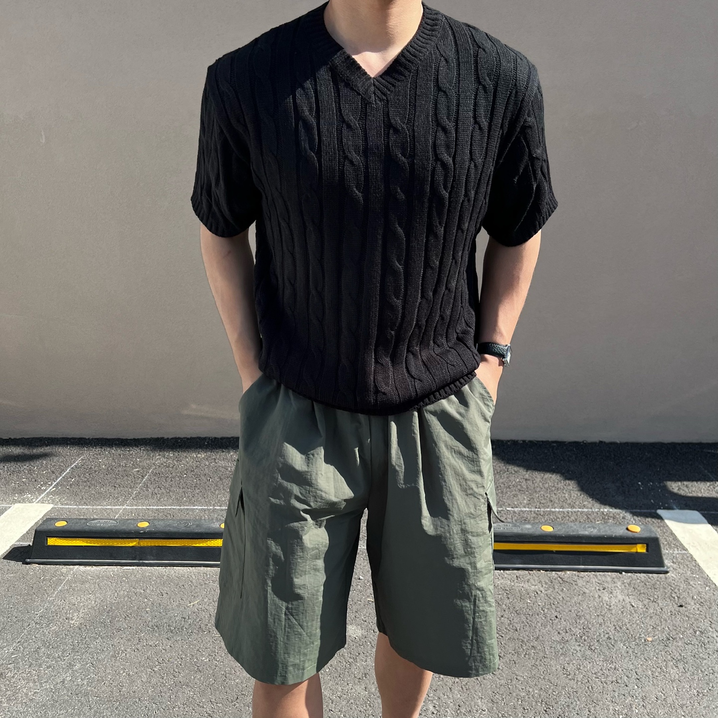 [1+1] 페르 꽈배기 브이넥 반팔 니트 (6color)