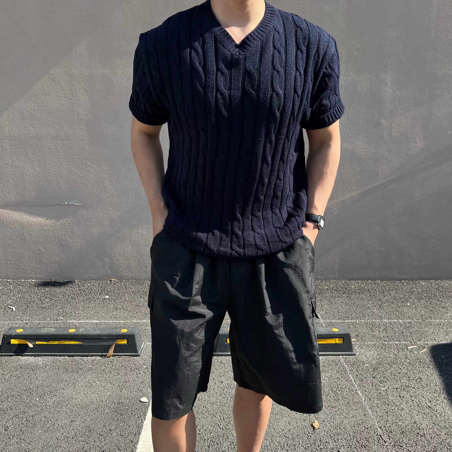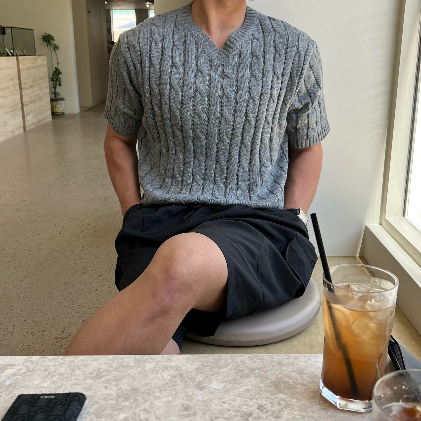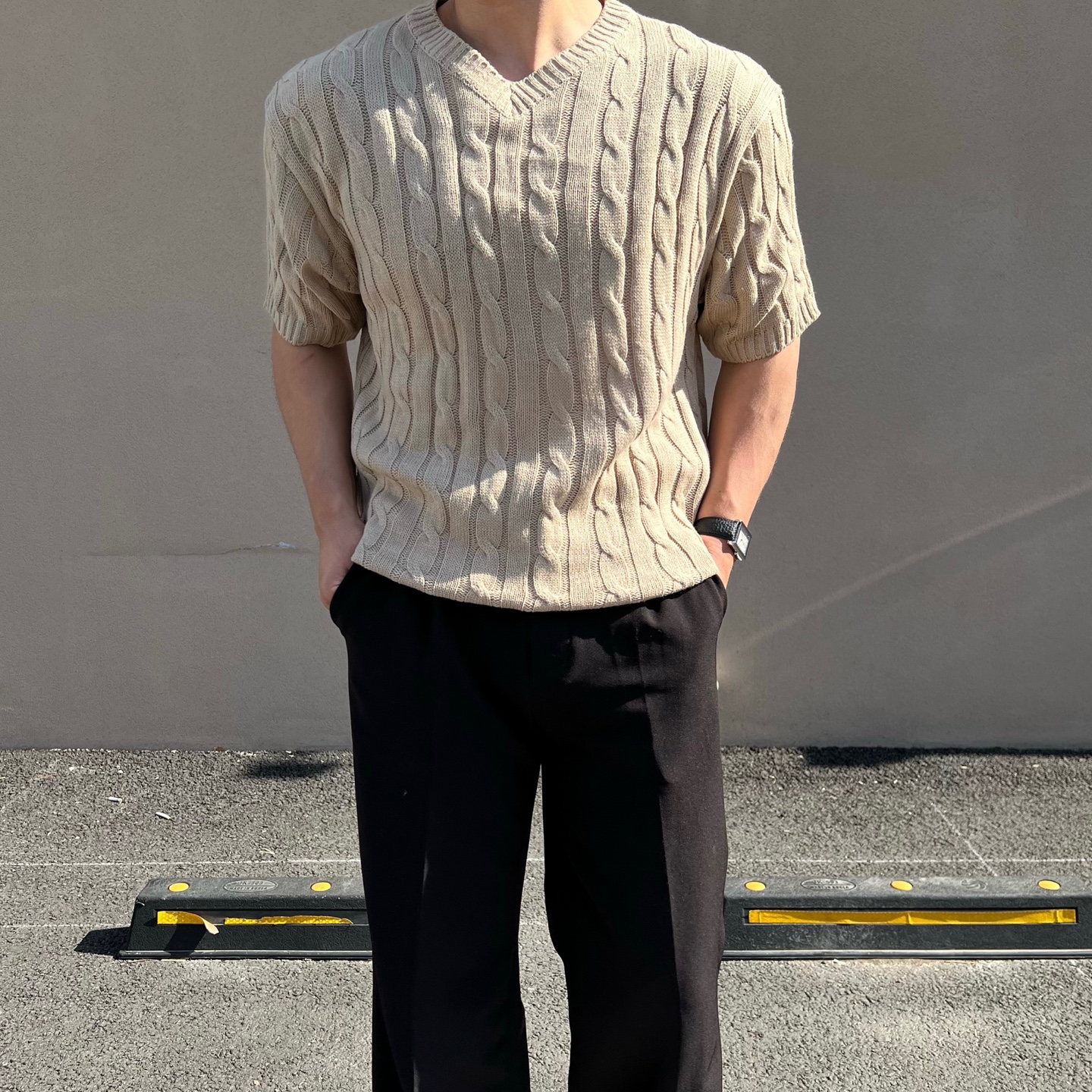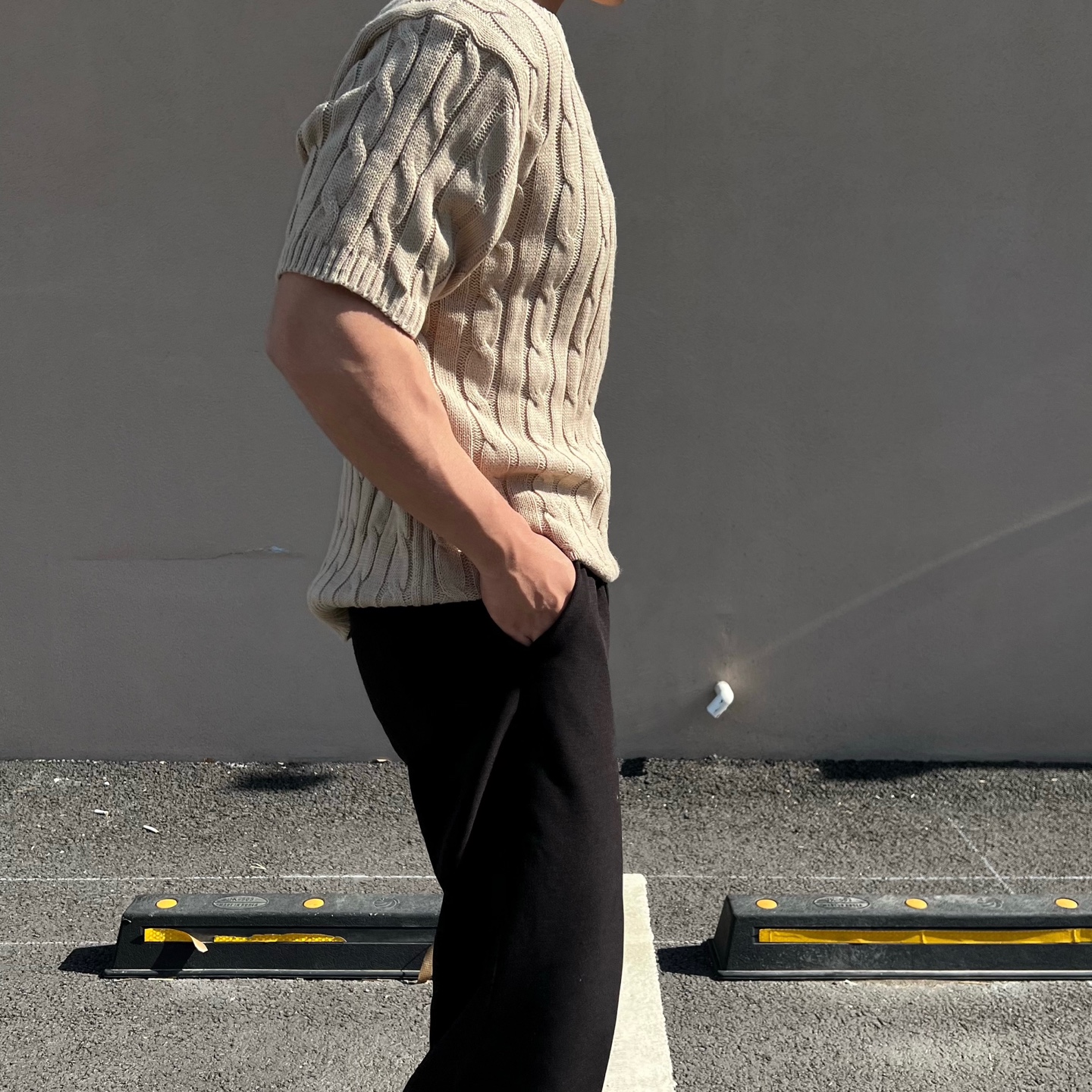 - 부드럽고 탄탄한 케이블 패턴의 반팔 니트