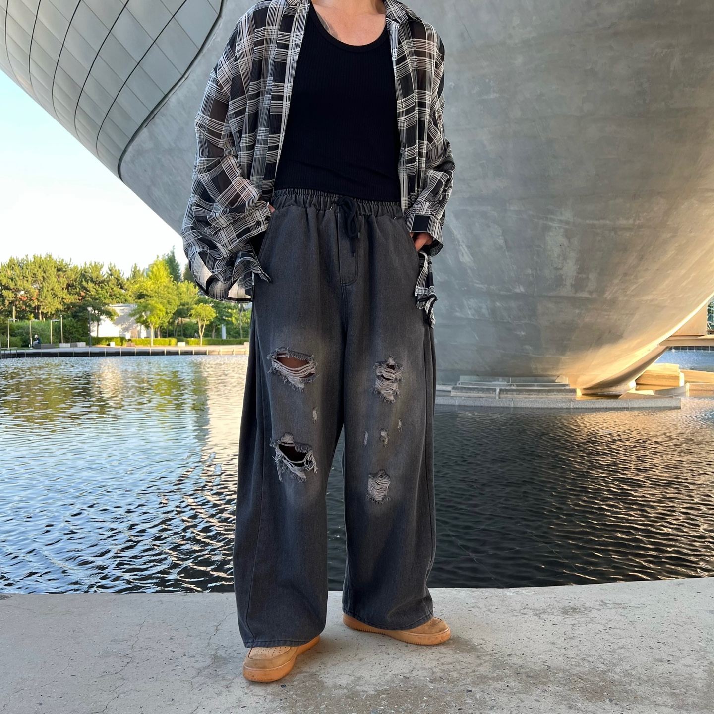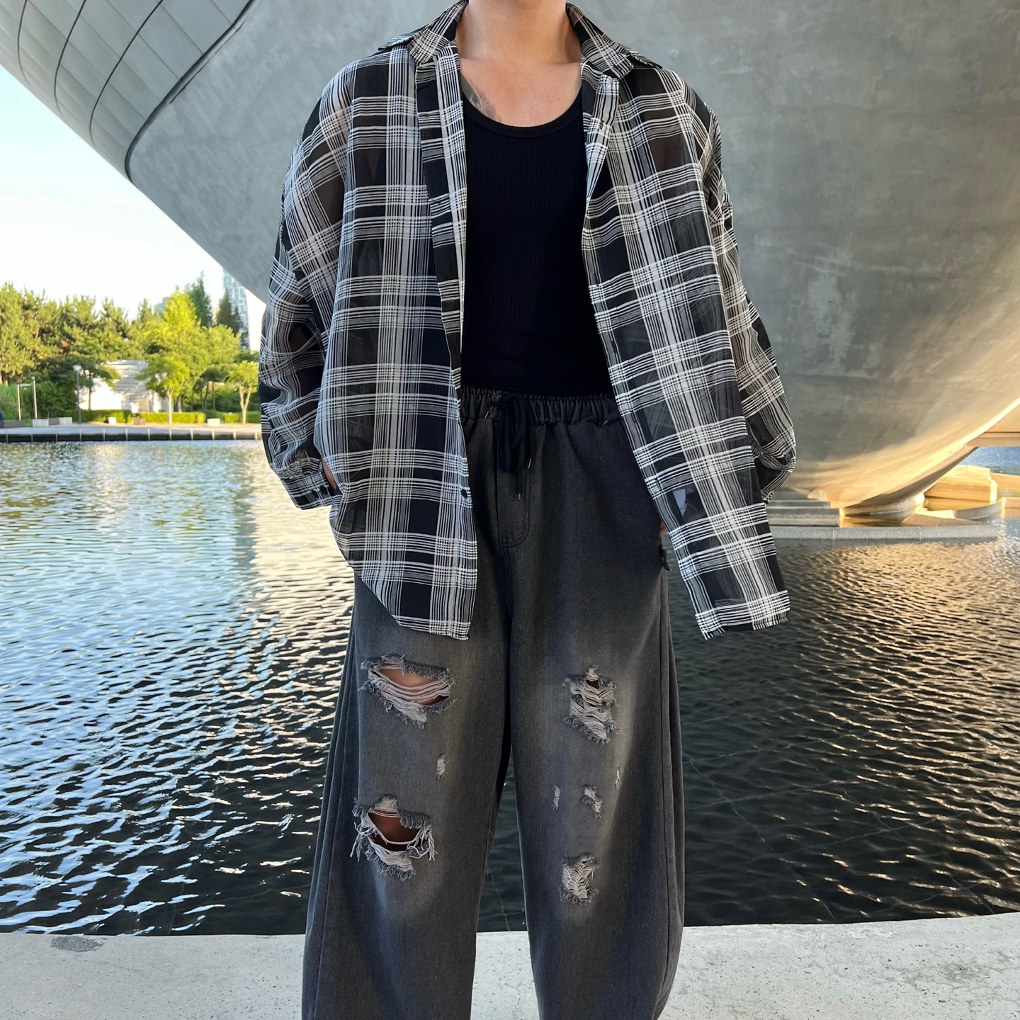 통기성 좋고 시원한 착용감으로 여름철 데일리룩에 제격트렌디한 체크 패턴 & 루즈핏
