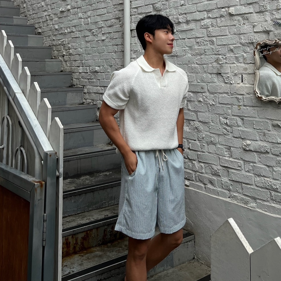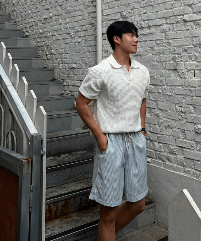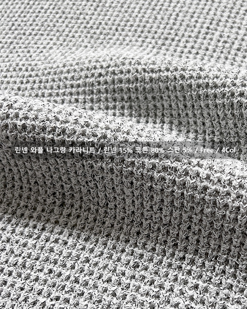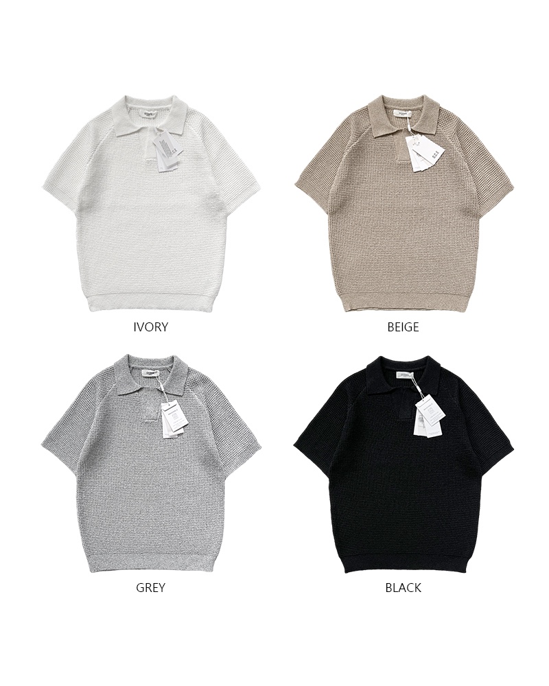 - 와플느낌의 조직으로 편직하며, 오픈 카라로 시원한 느낌