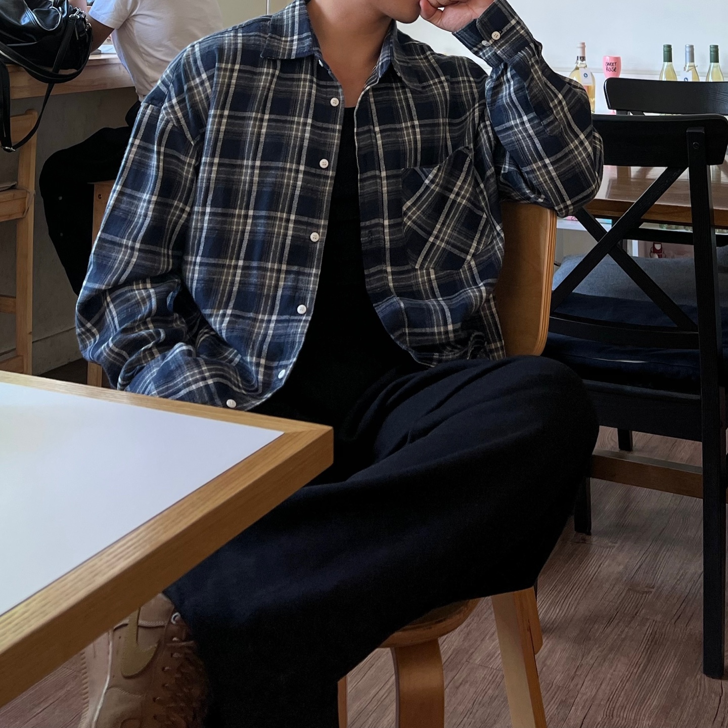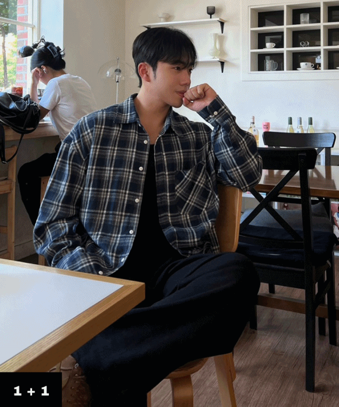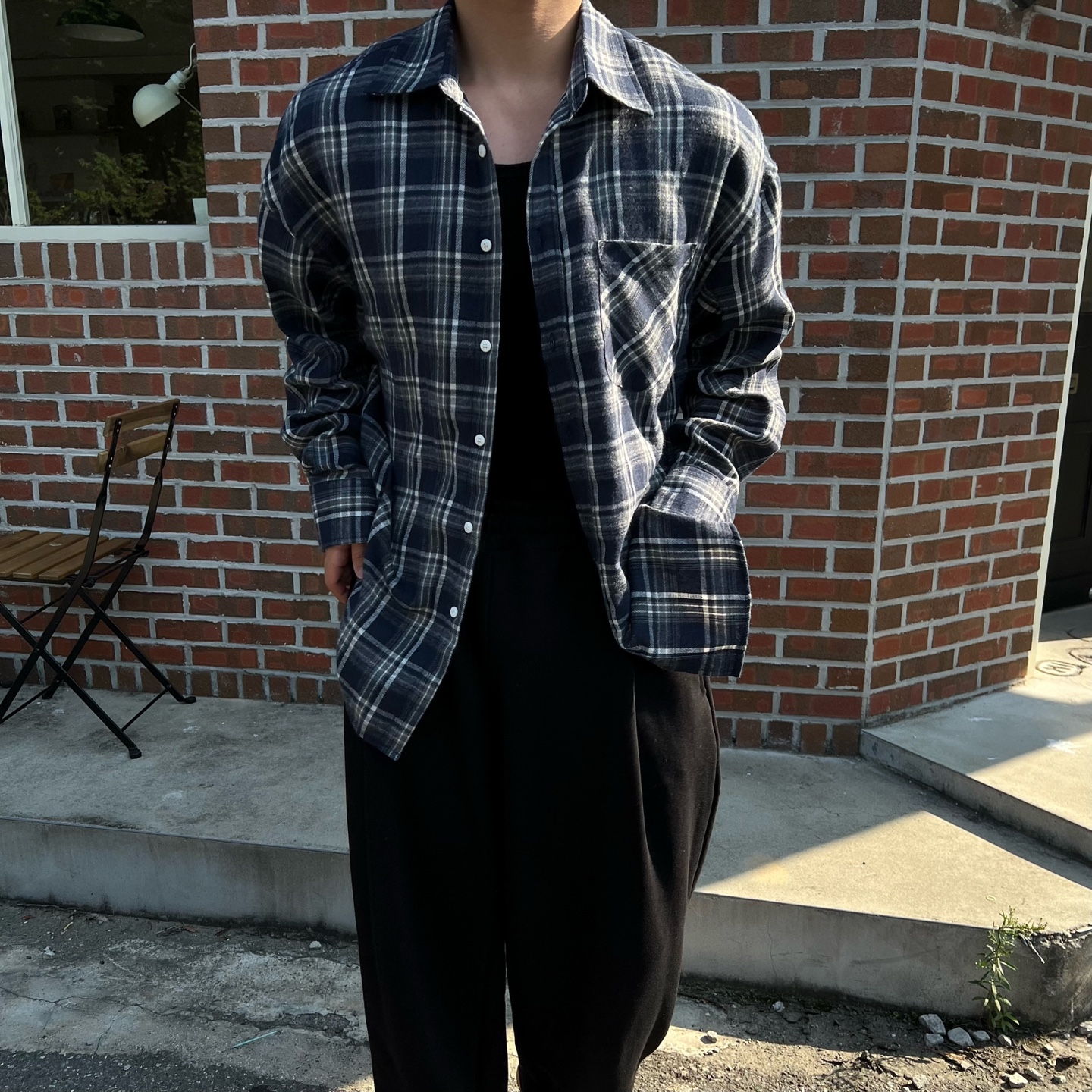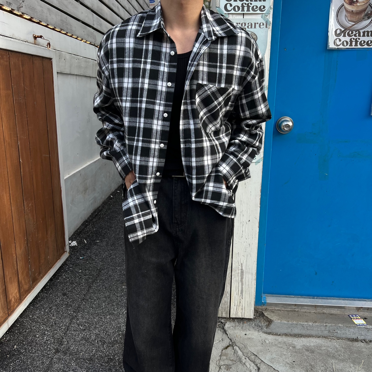 [1+1] 케일 포켓 체크 셔츠 (4color)