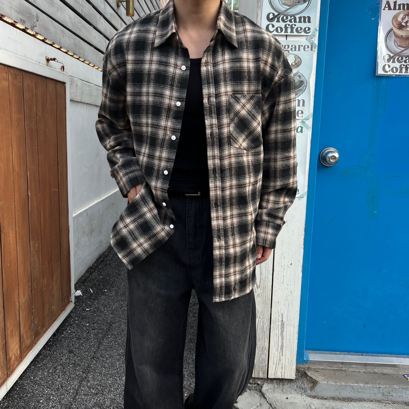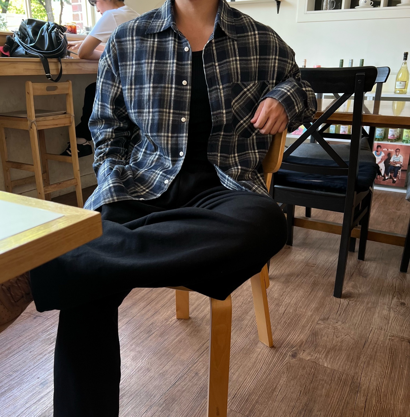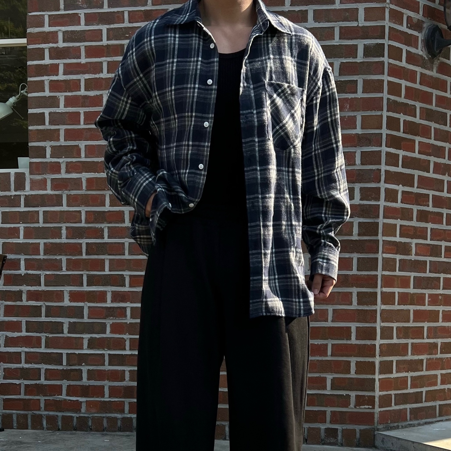 [1+1] 케일 포켓 체크 셔츠 (4color)