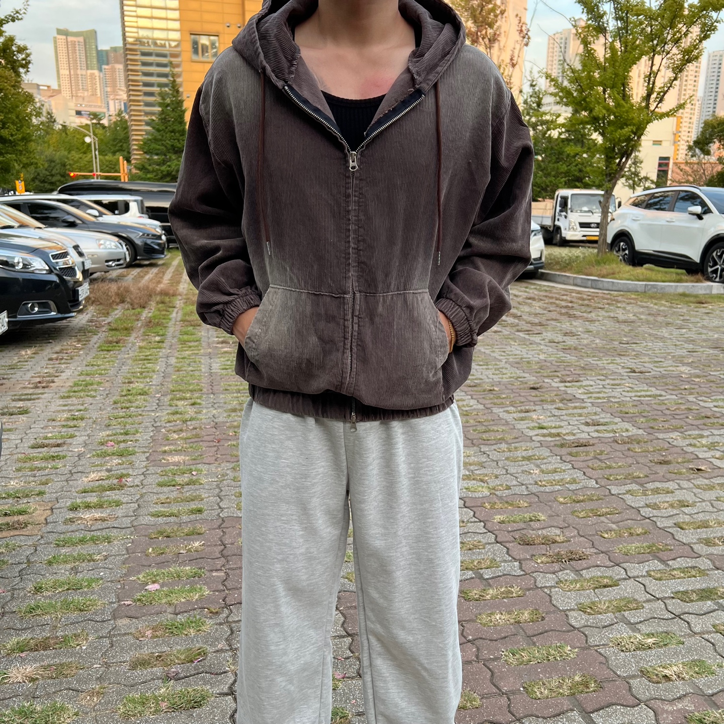 - 은은한 워싱감이 매력적인 골덴 후드집업