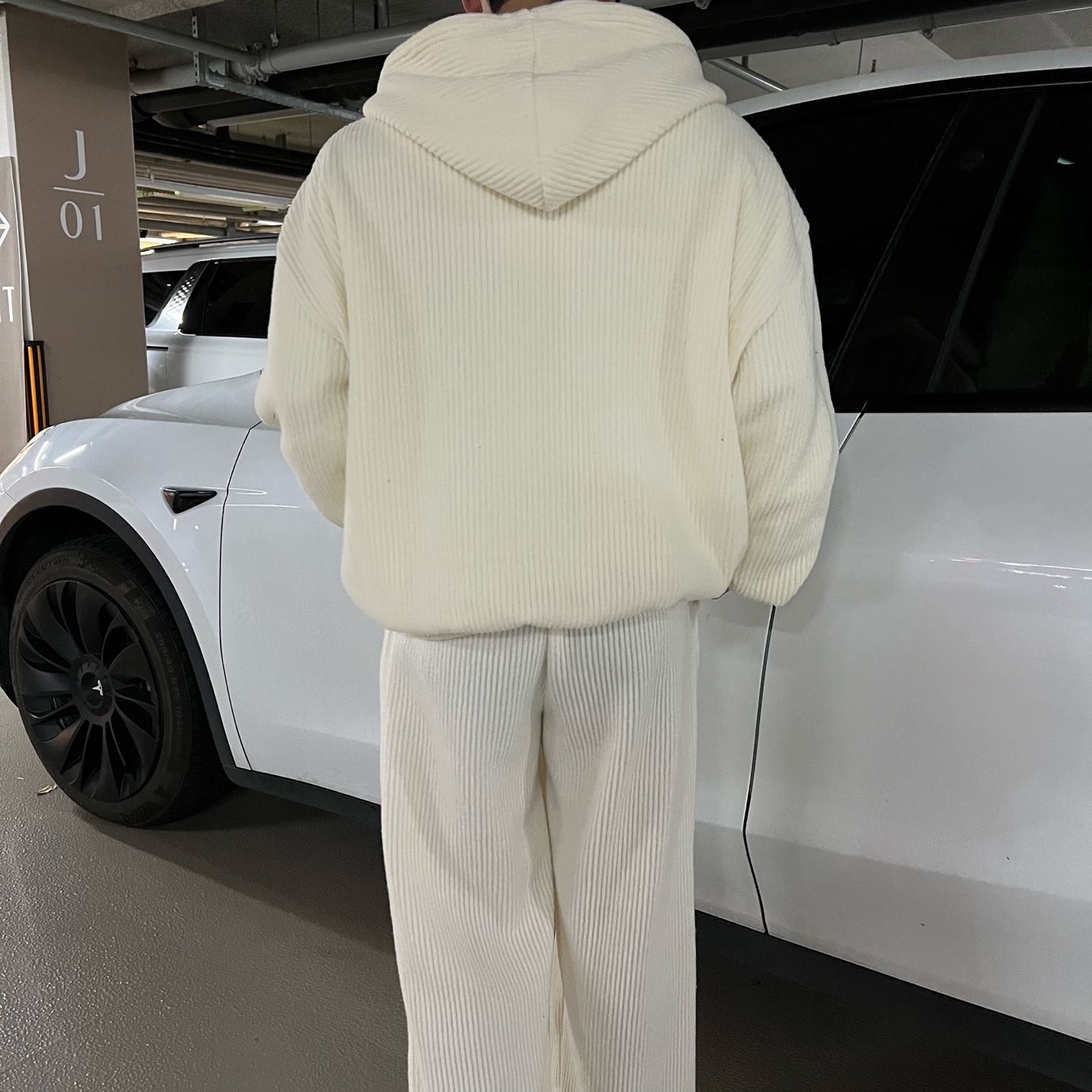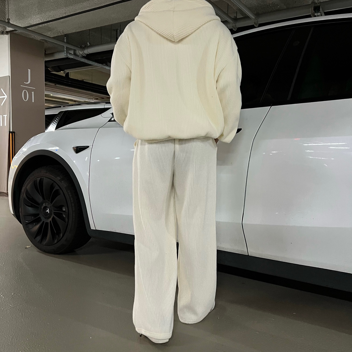 - 기모 골지 니트 원단을 사용하여 신축성이 좋음