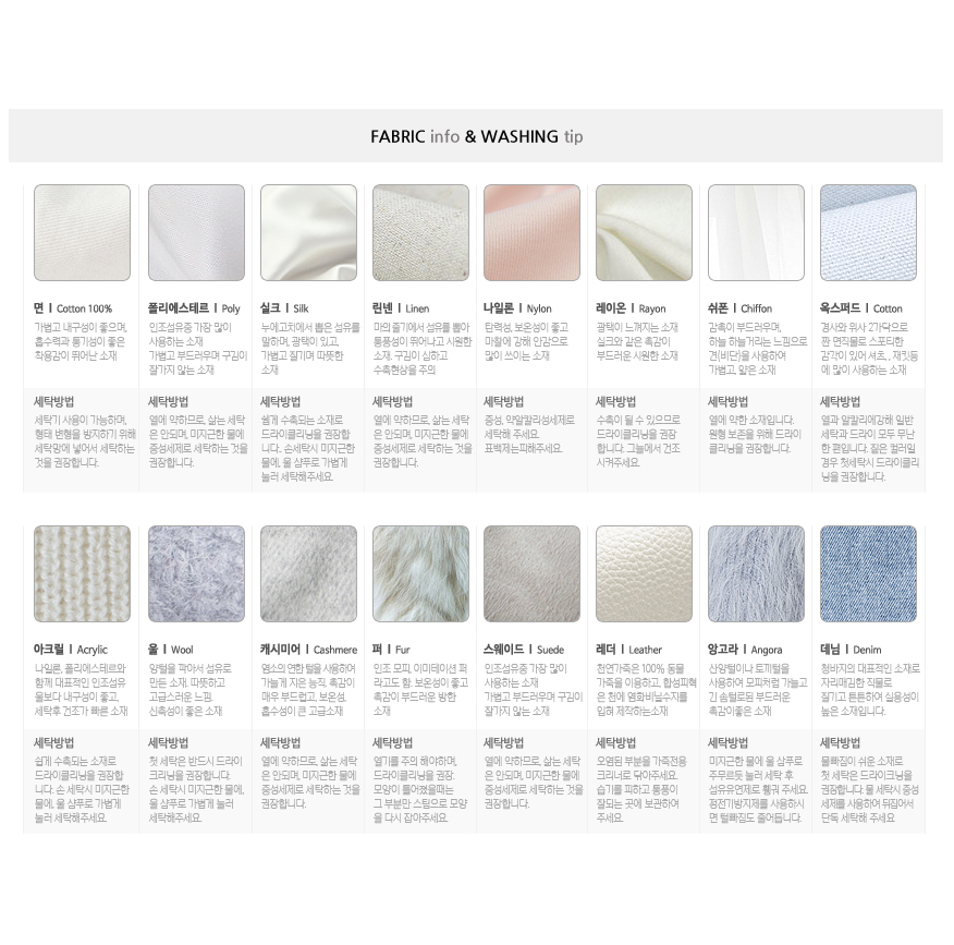 * 대량 생산으로 인하여 간혹 초크 자국이 묻어 나갈 수 있습니다 ( 해당 부분은 옷 재단 할 때 쓰는 초크 자국으로 물로 손쉽게 지워지는 부분이라 불량이 아닌 점 참고 부탁드립니다. )
