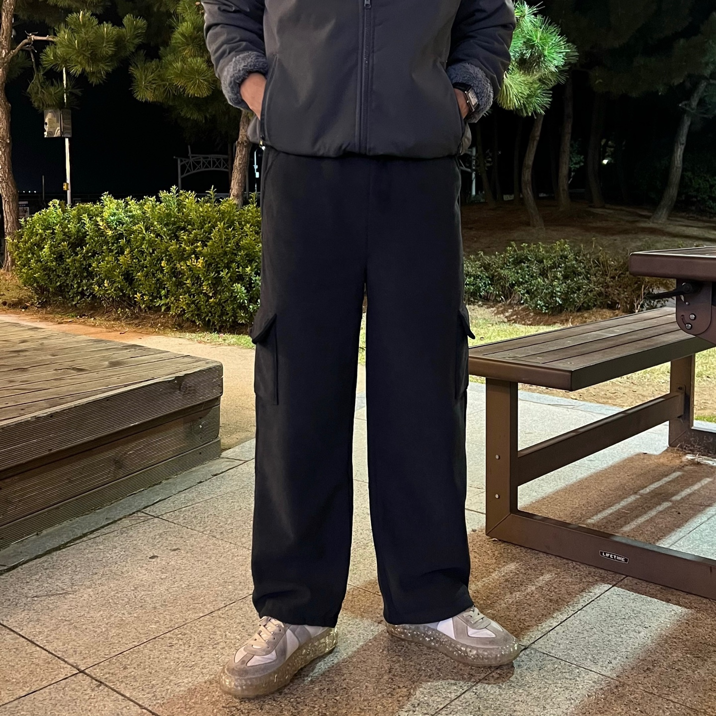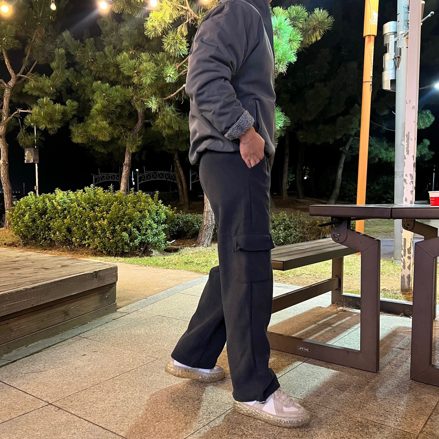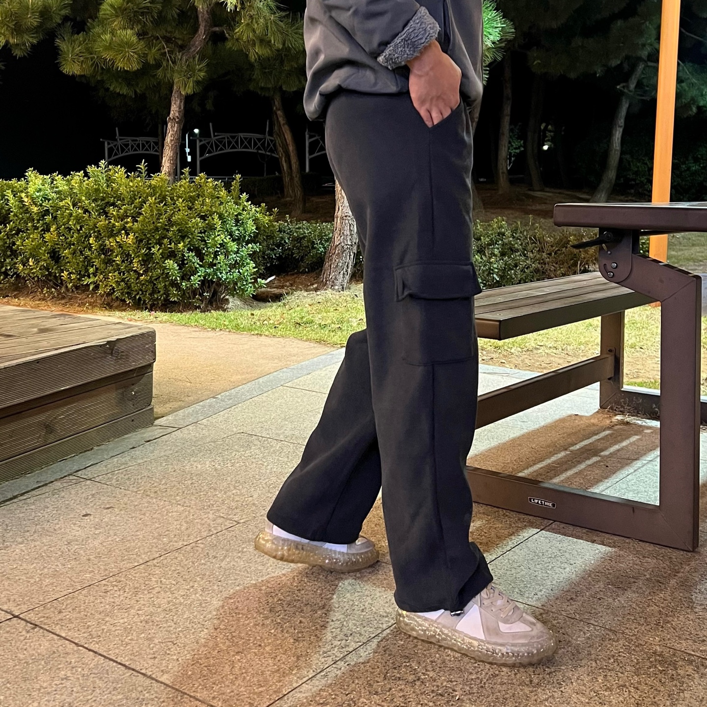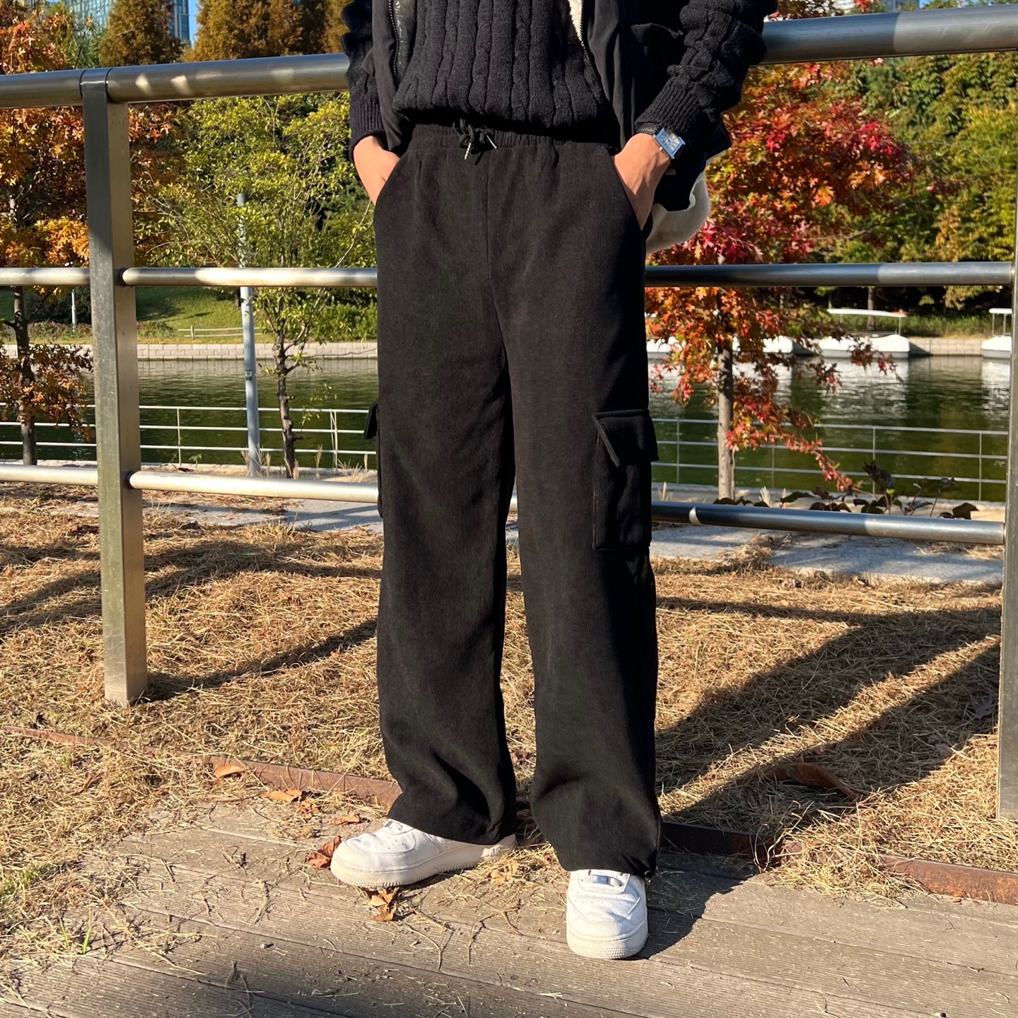 - 밑단 스트링으로 조거 or 와이드핏 연출