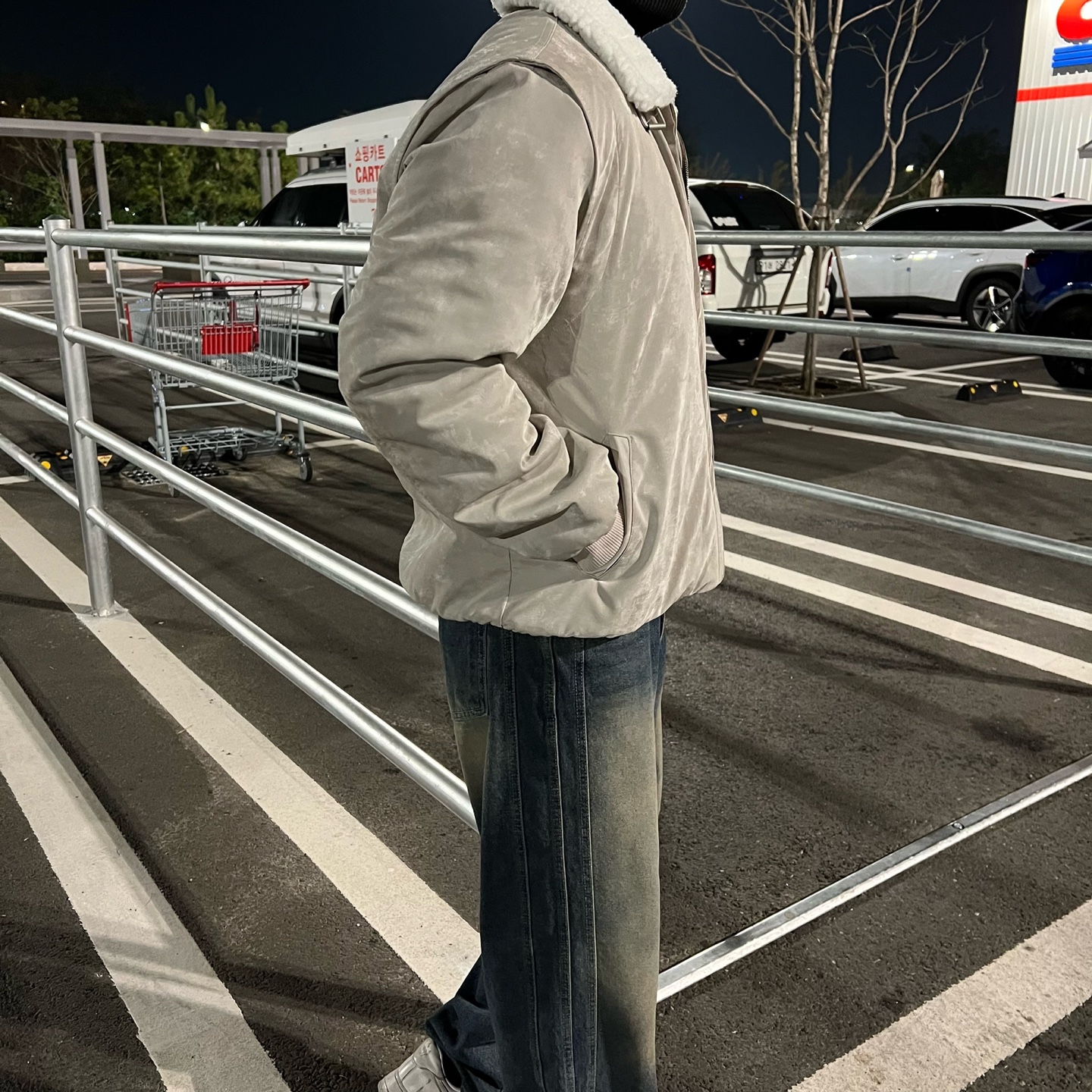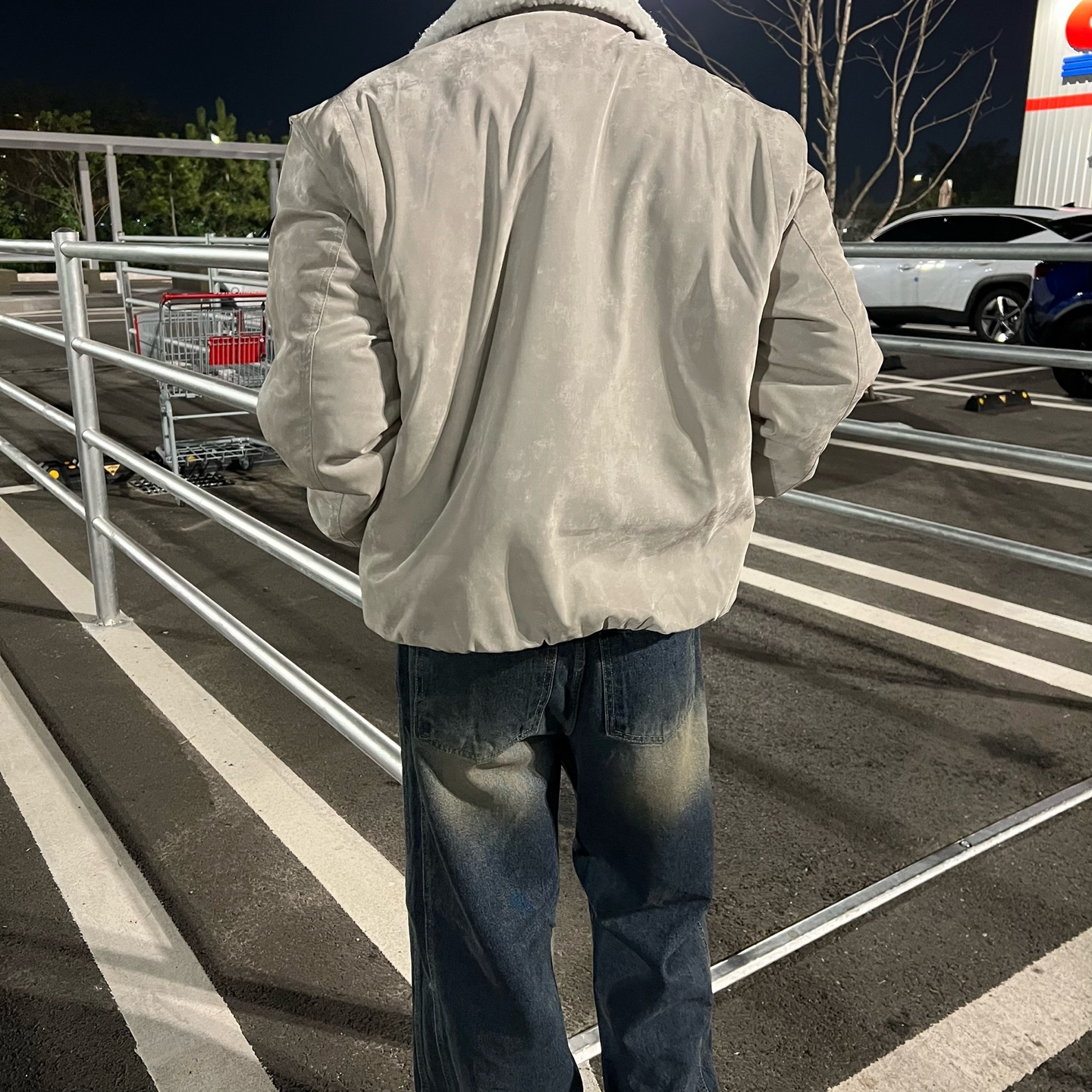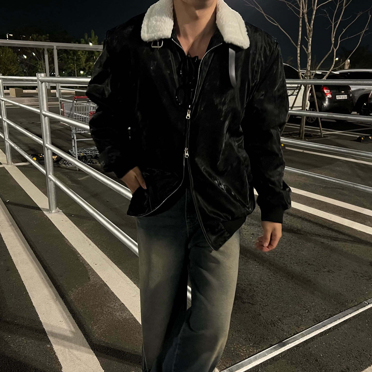 - 은은한 크랙 원단감이 매력적인 무스탕 패딩