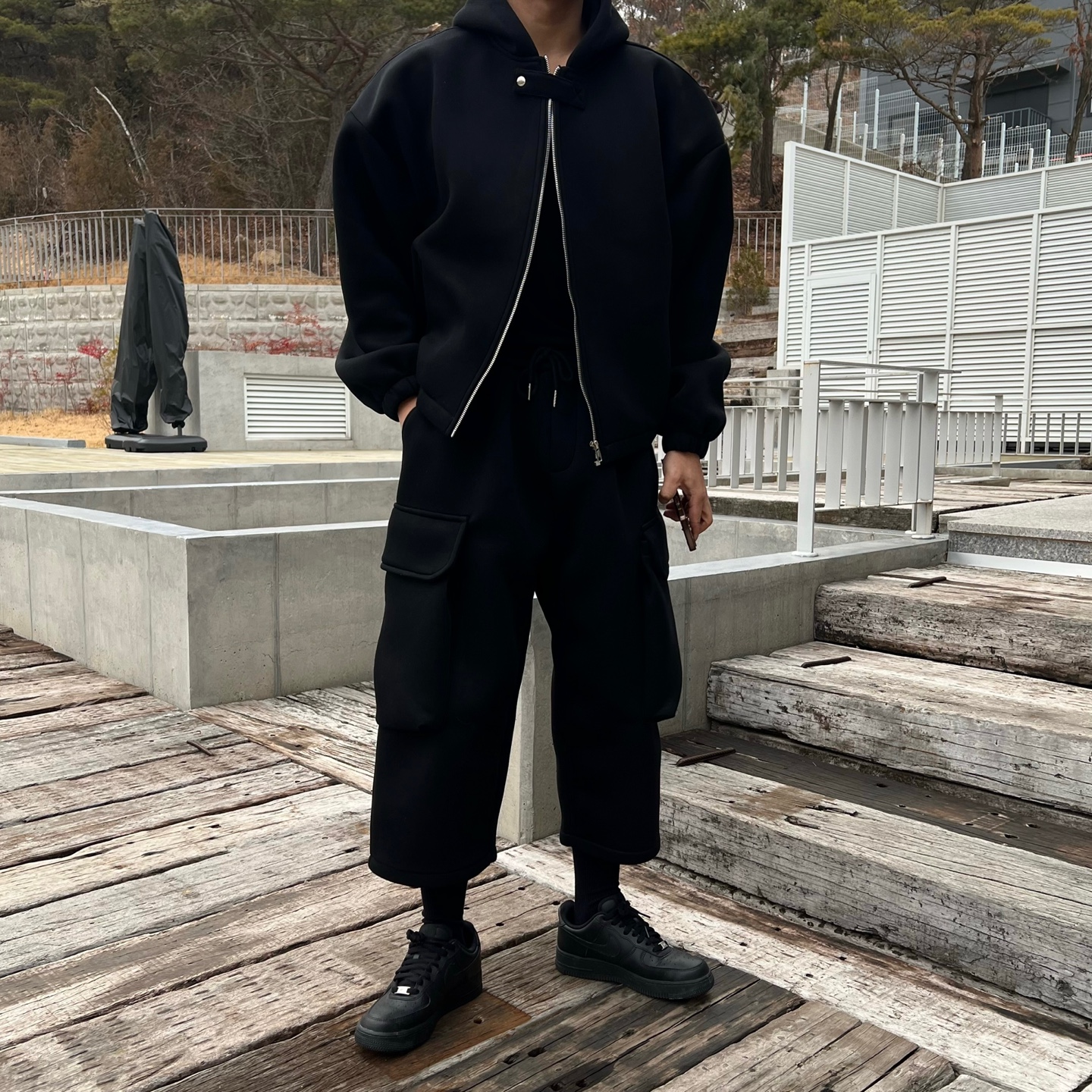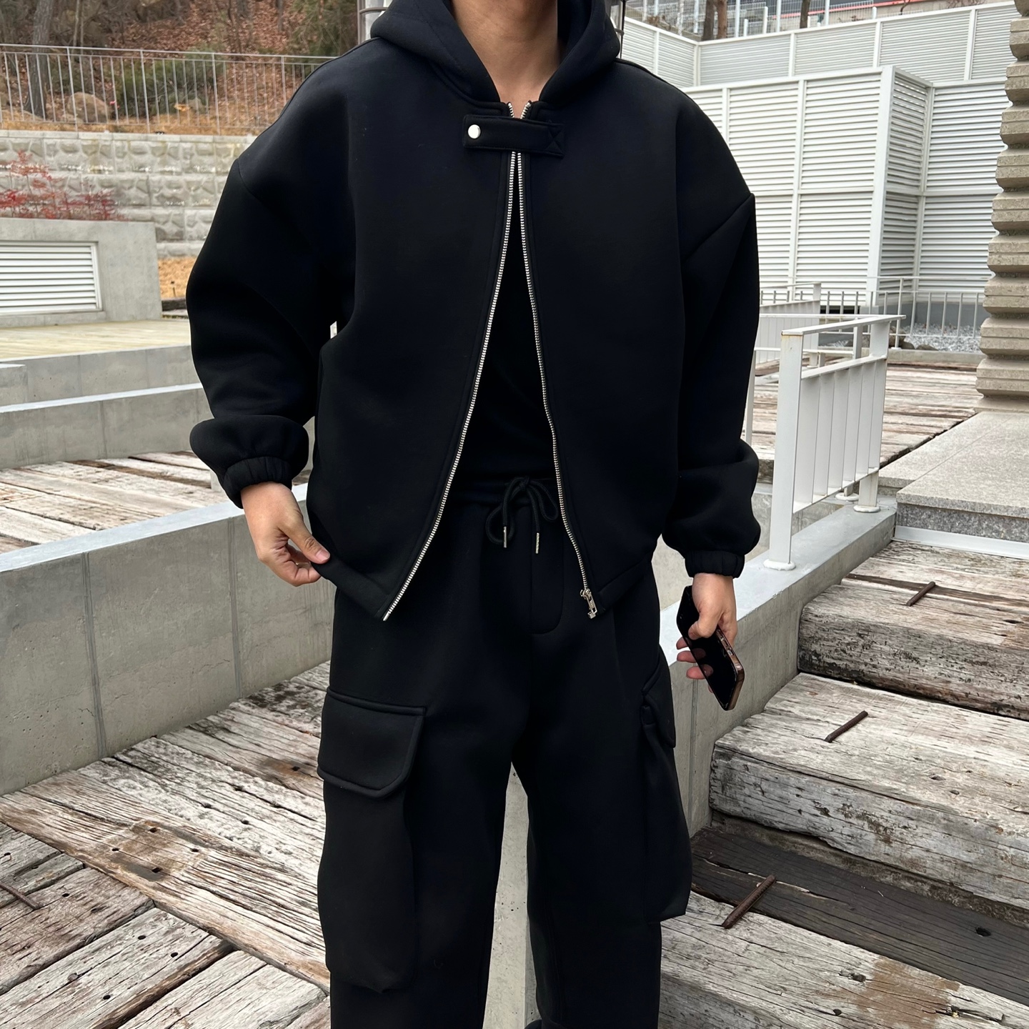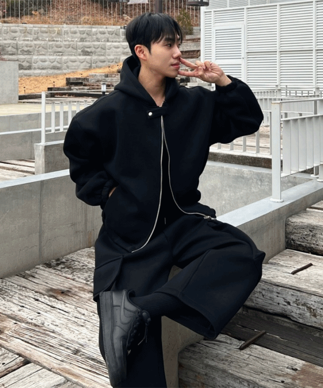 - 후드집업 스냅 버튼으로 다양한 스타일링 가능