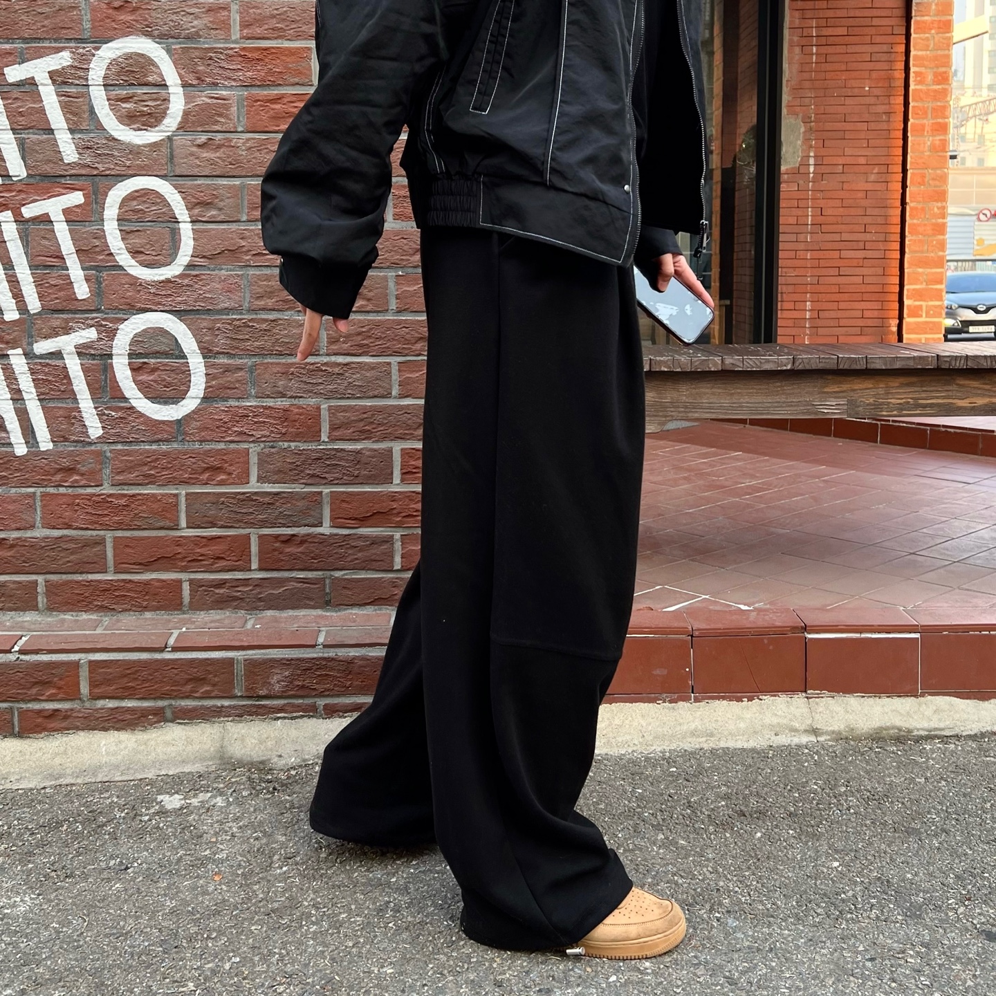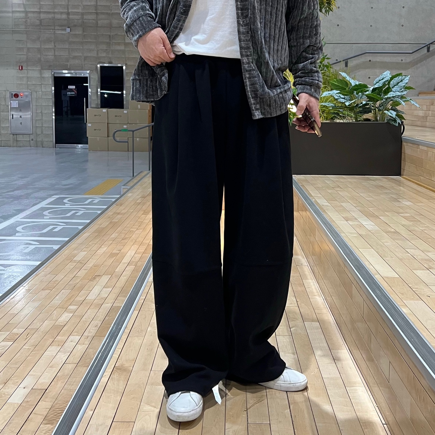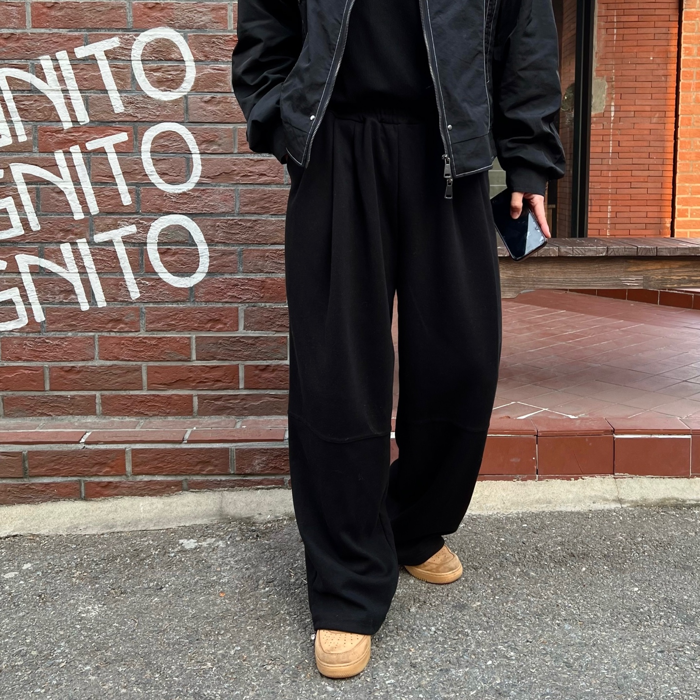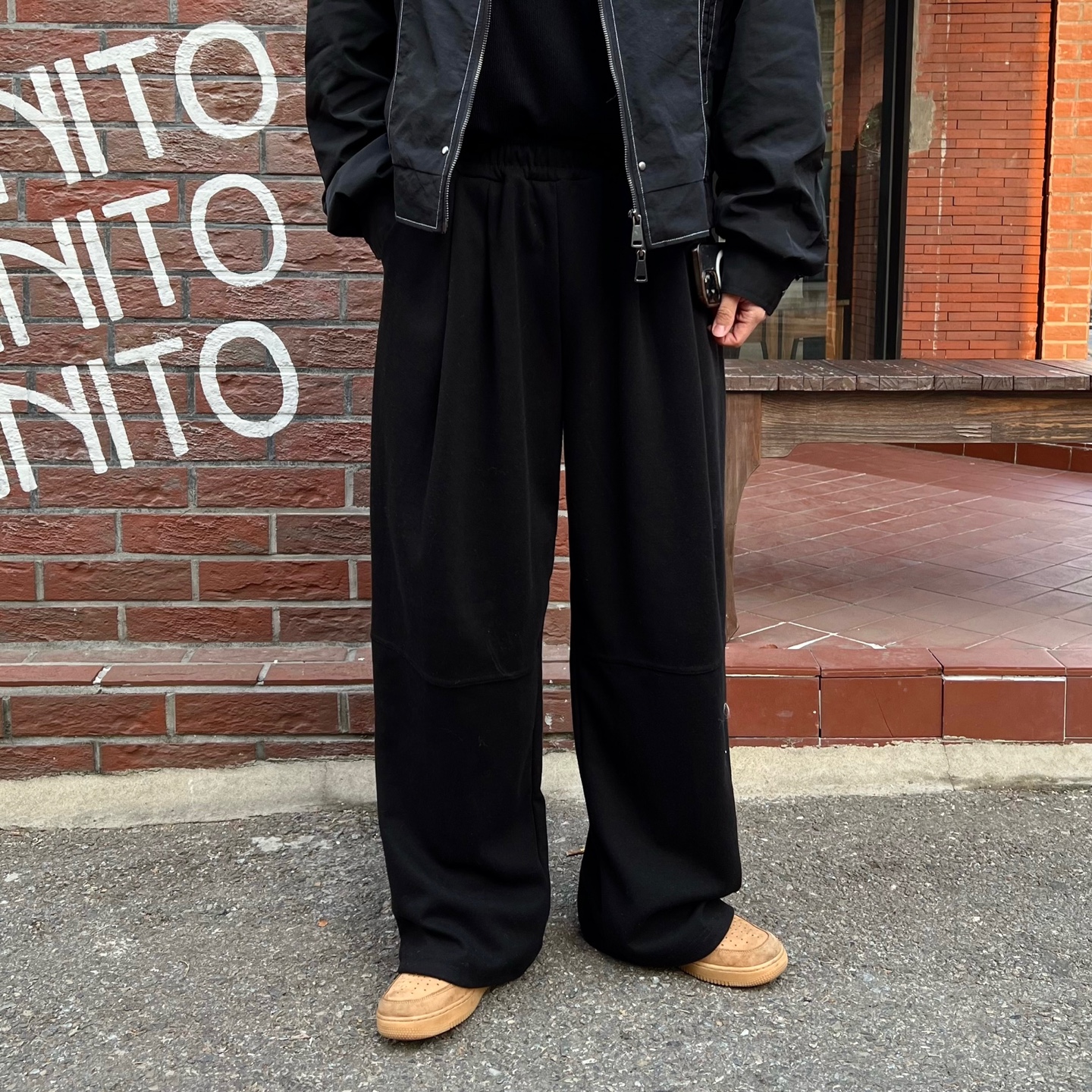 - 와이드한 기장감과 투턱 포인트가 매력적인 팬츠