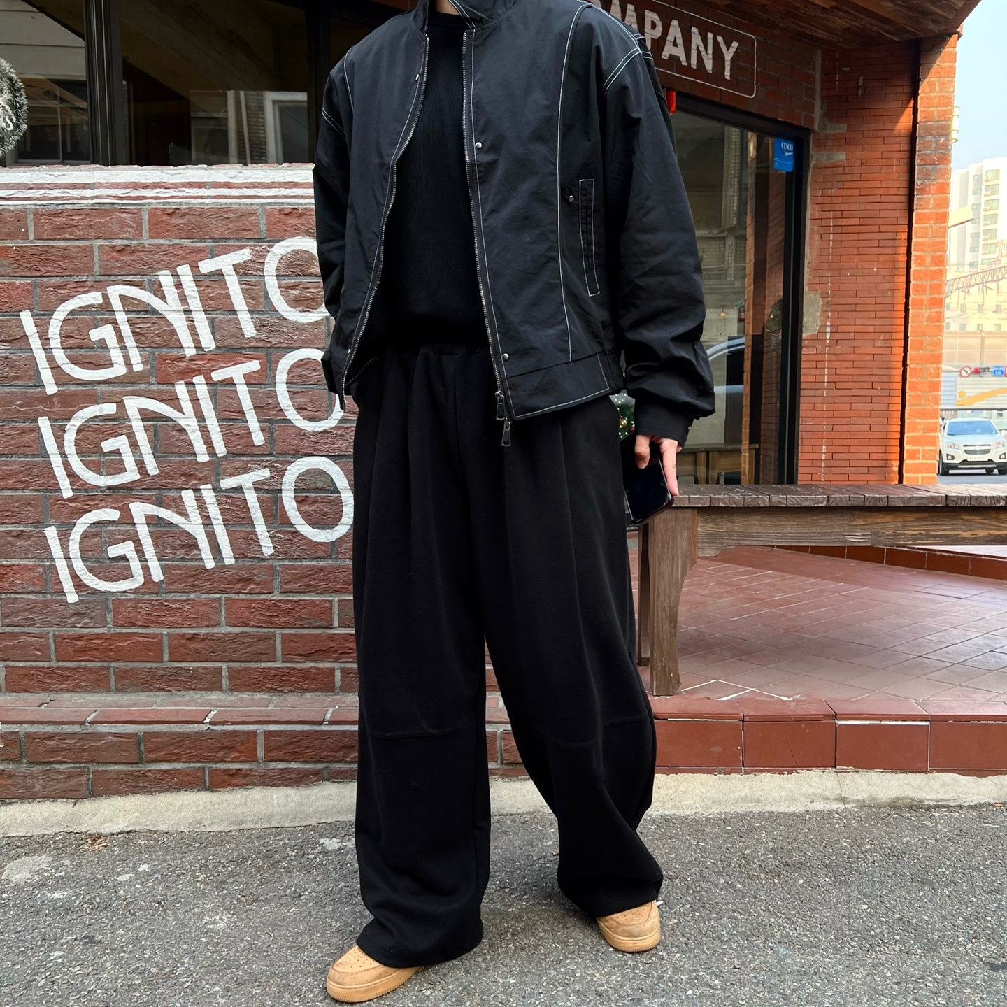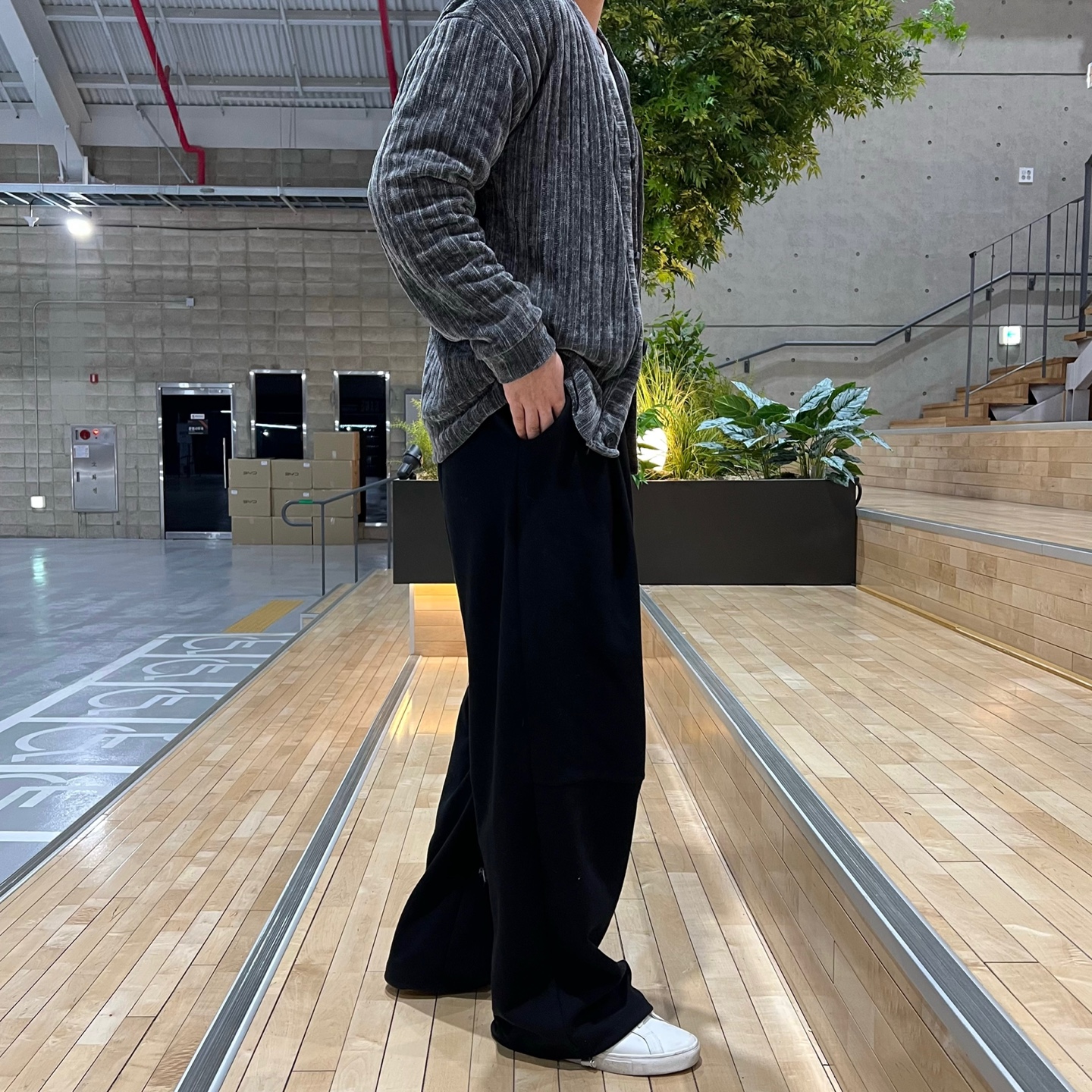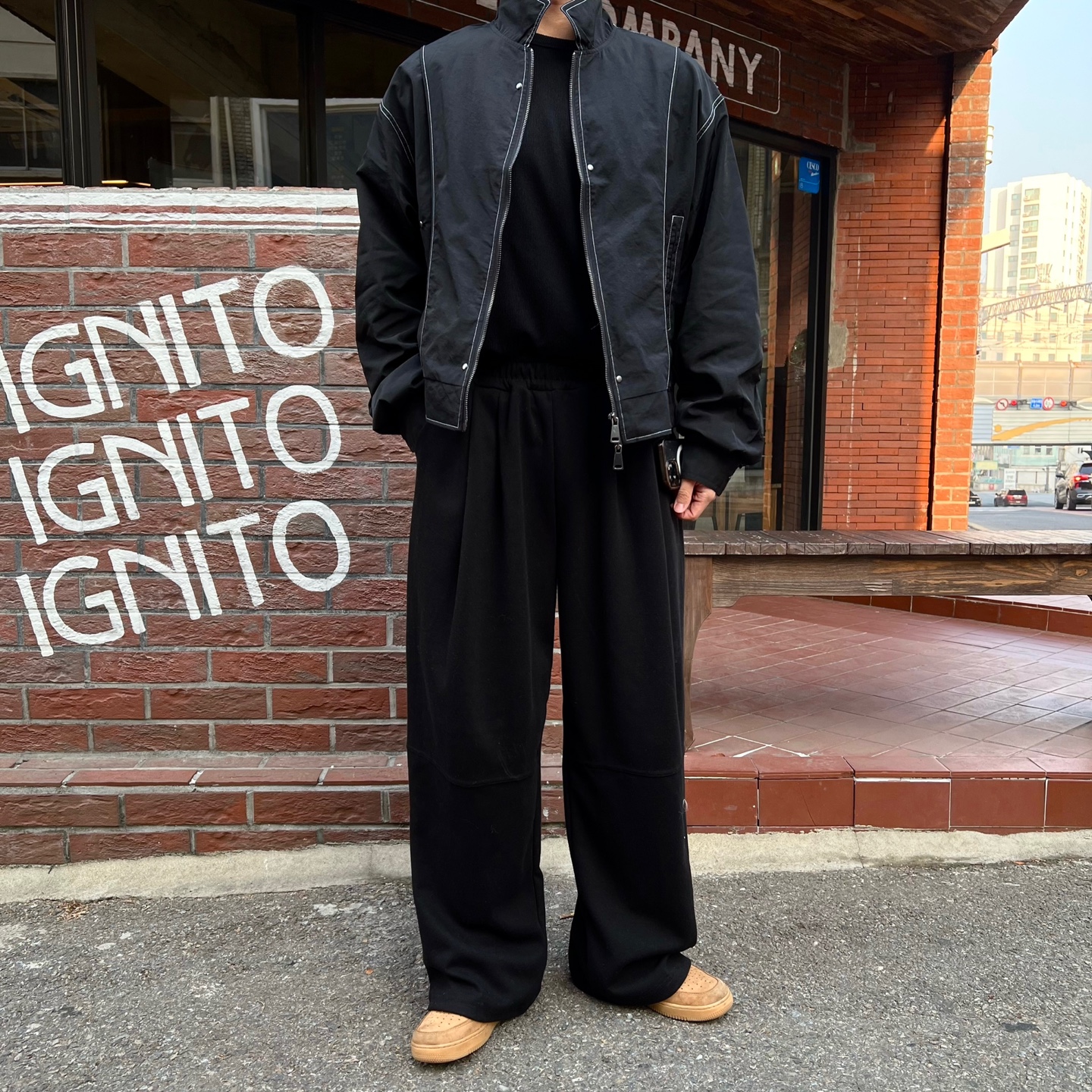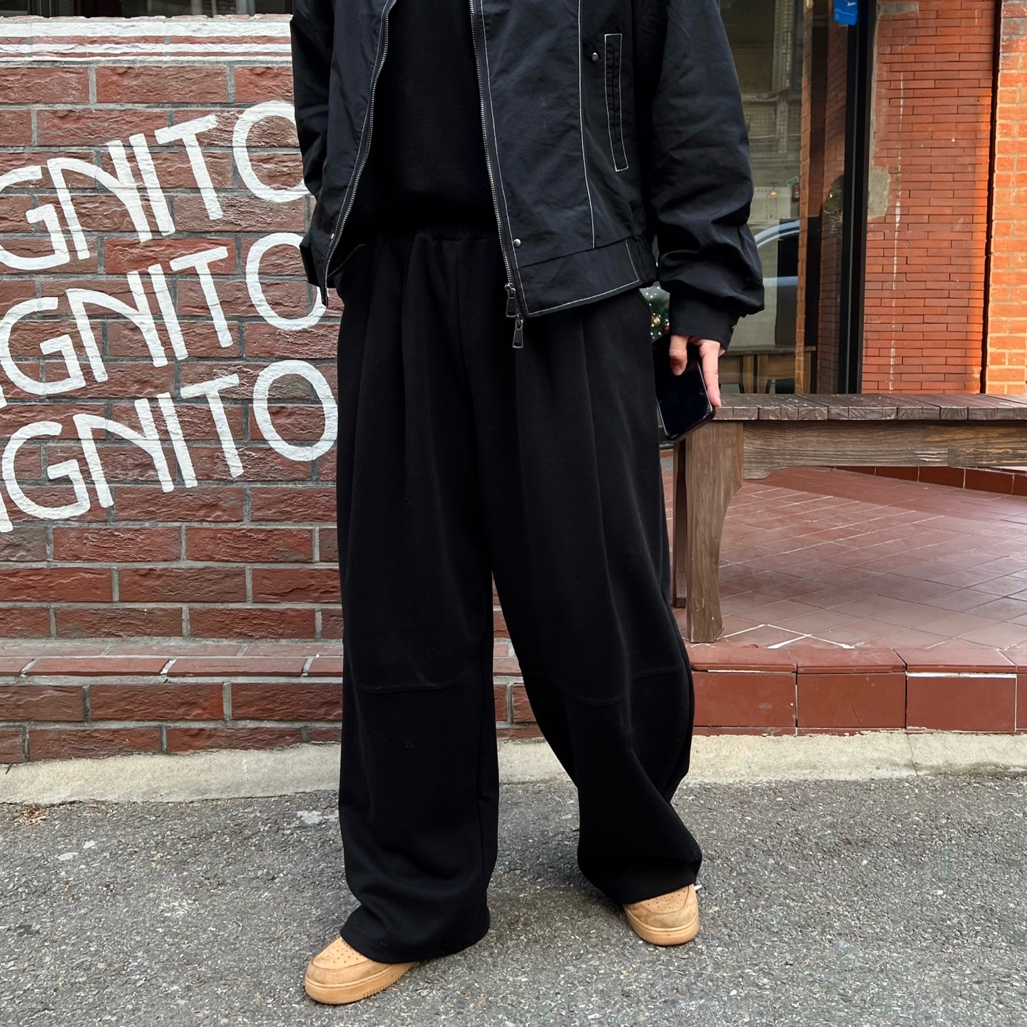 - 와이드한 기장감과 투턱 포인트가 매력적인 팬츠