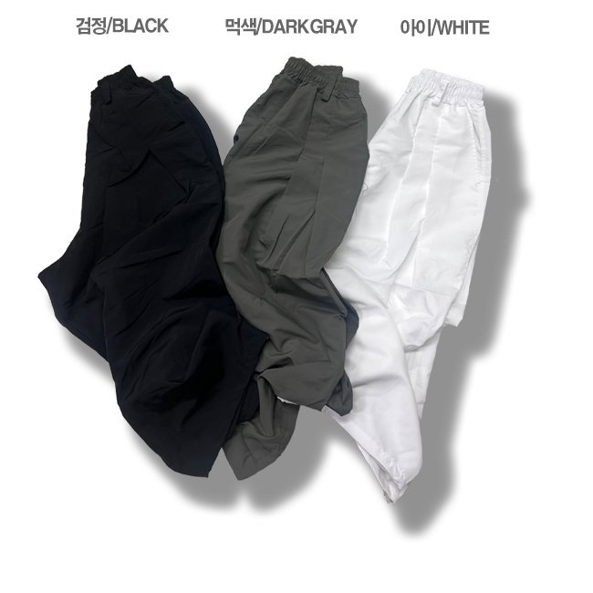 - 나일론 원단으로 가볍고 편안한 착용감의 팬츠