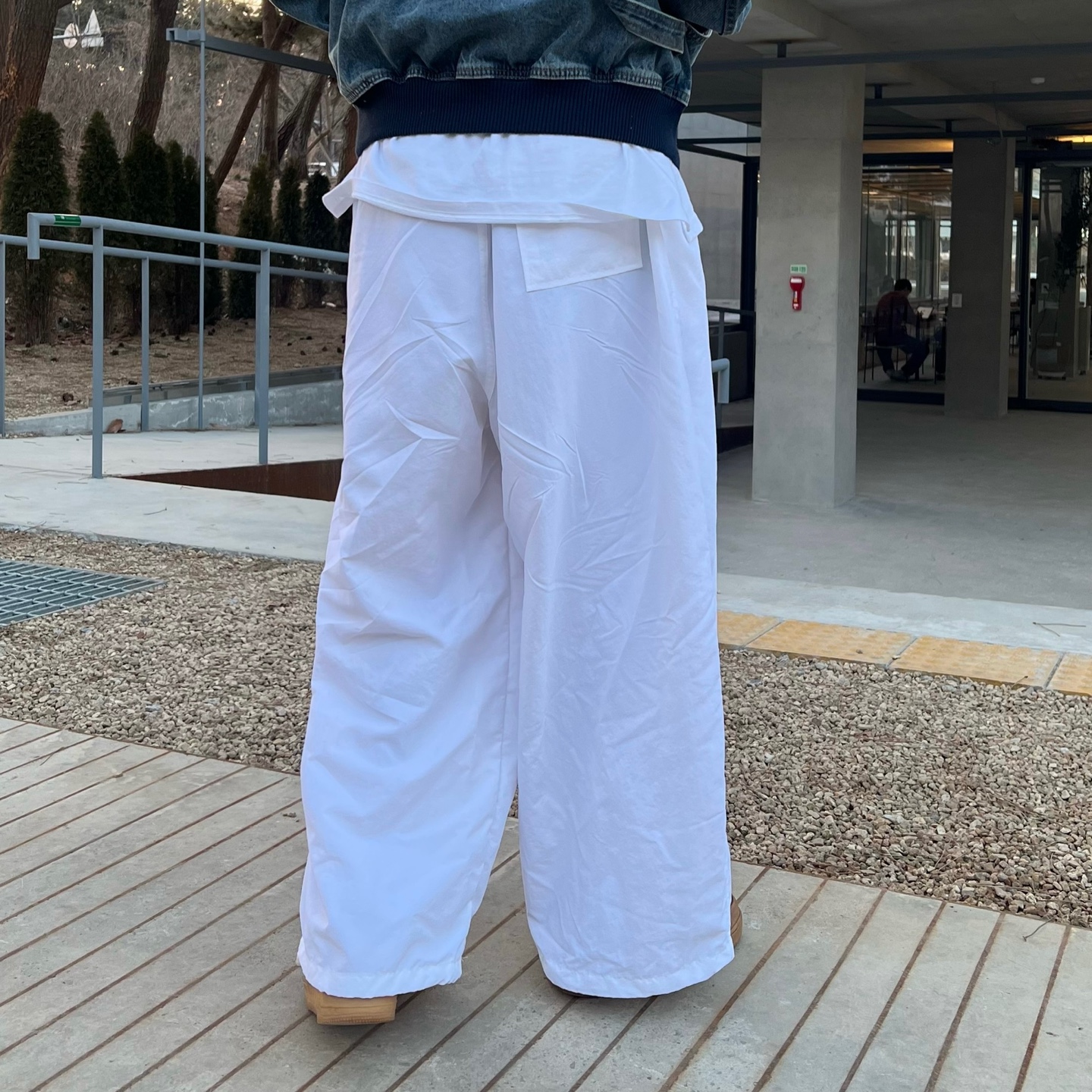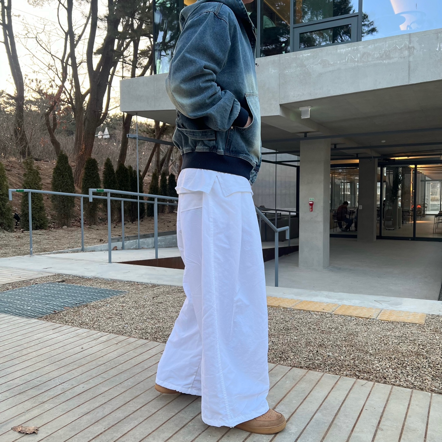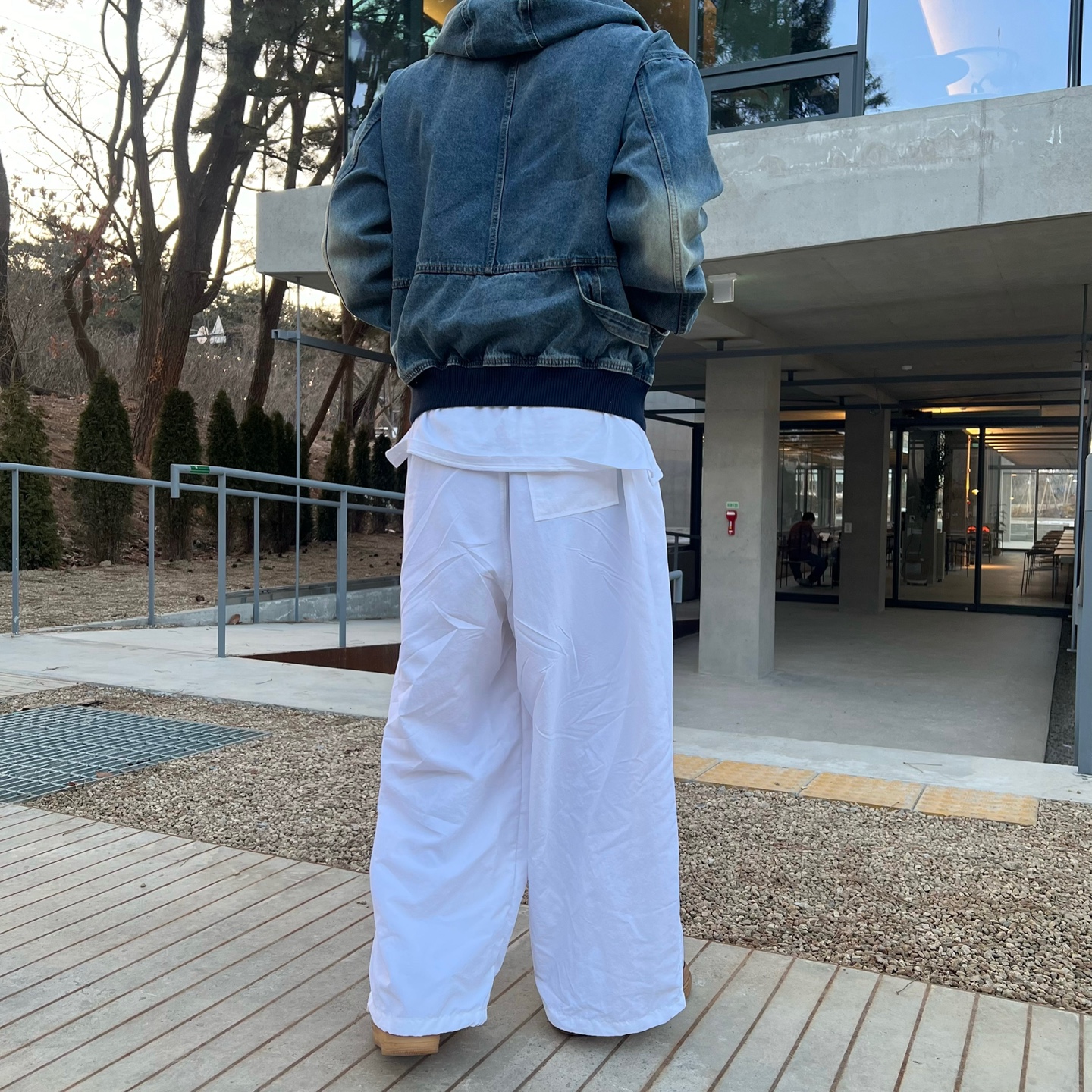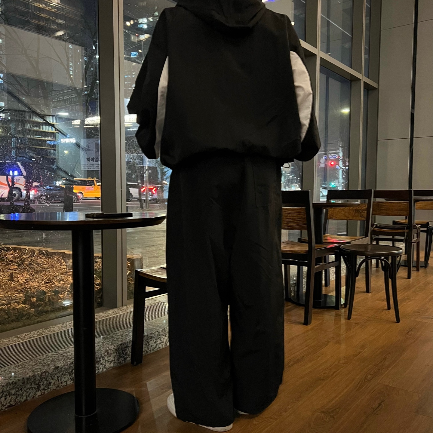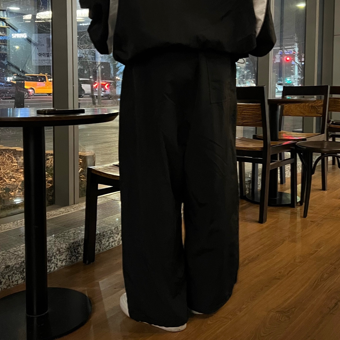 - 밑단 스트링으로 조거 or 와이드 핏 연출