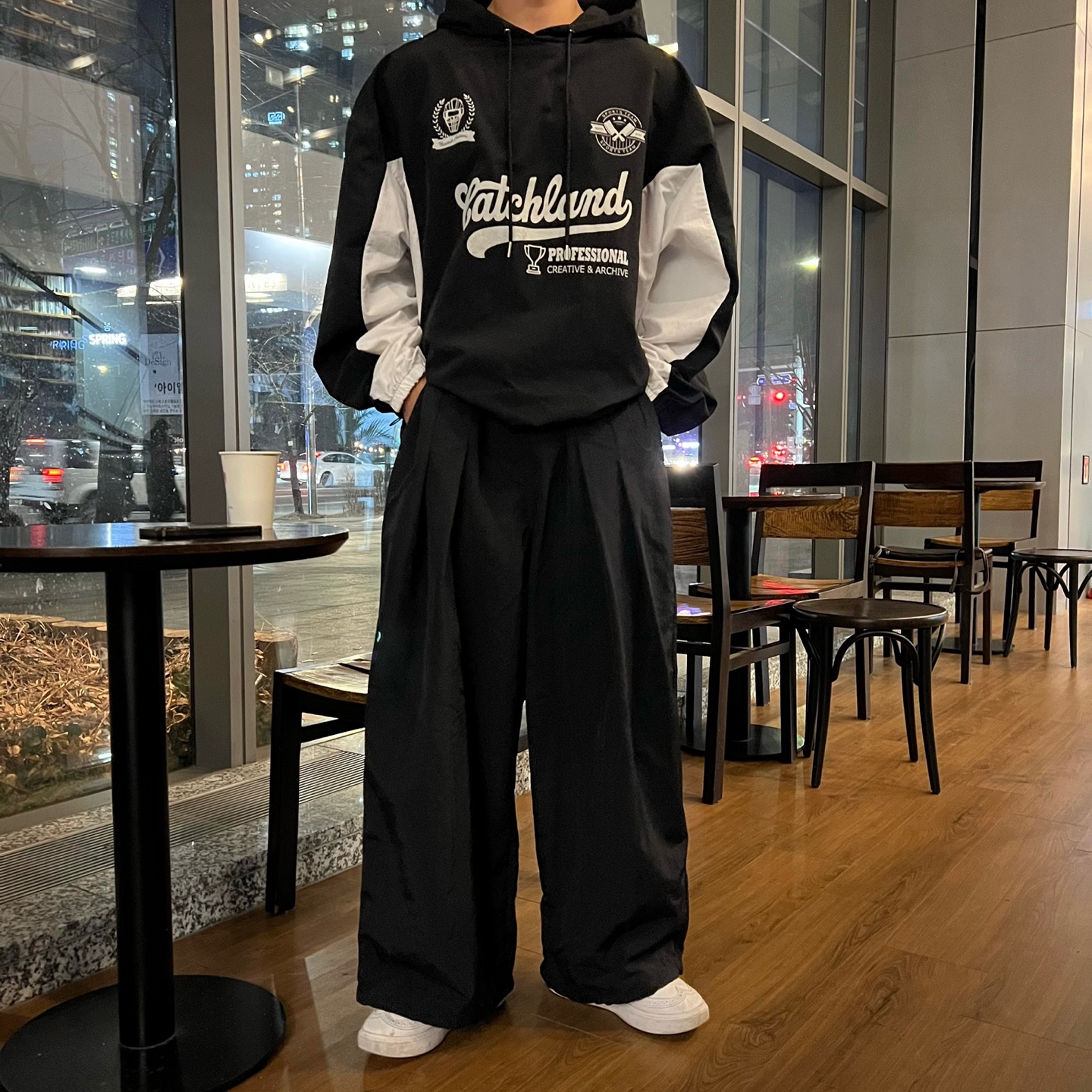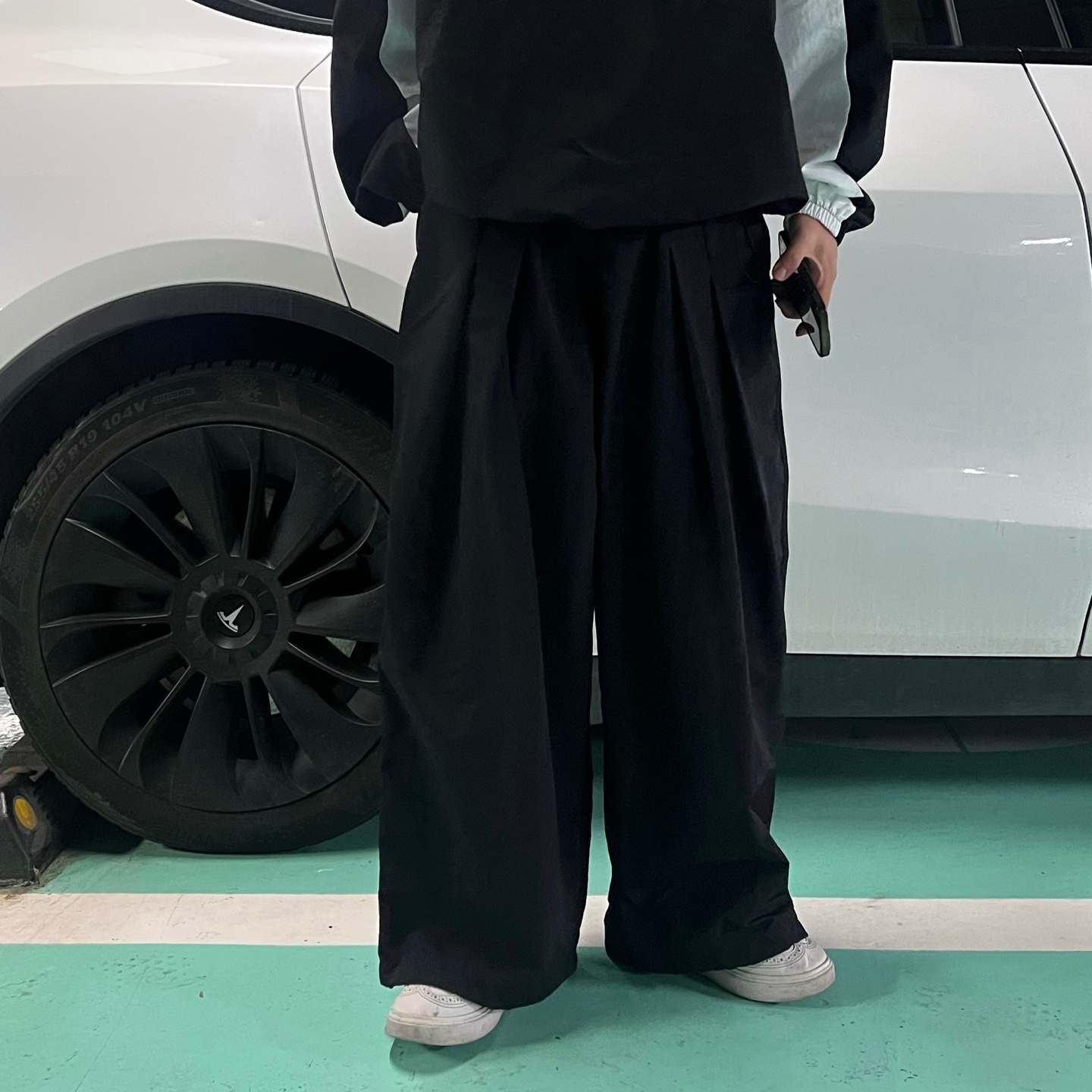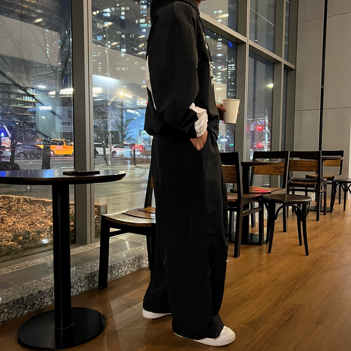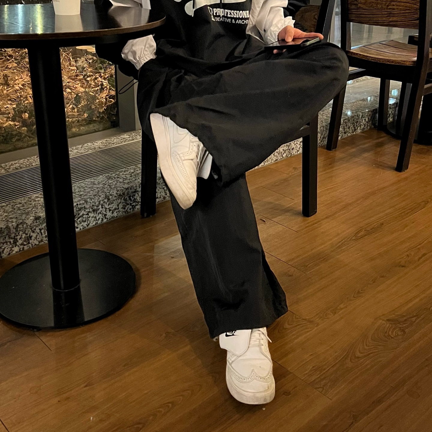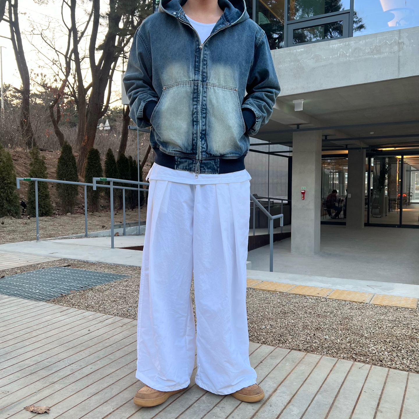 - 밑단 스트링으로 조거 or 와이드 핏 연출