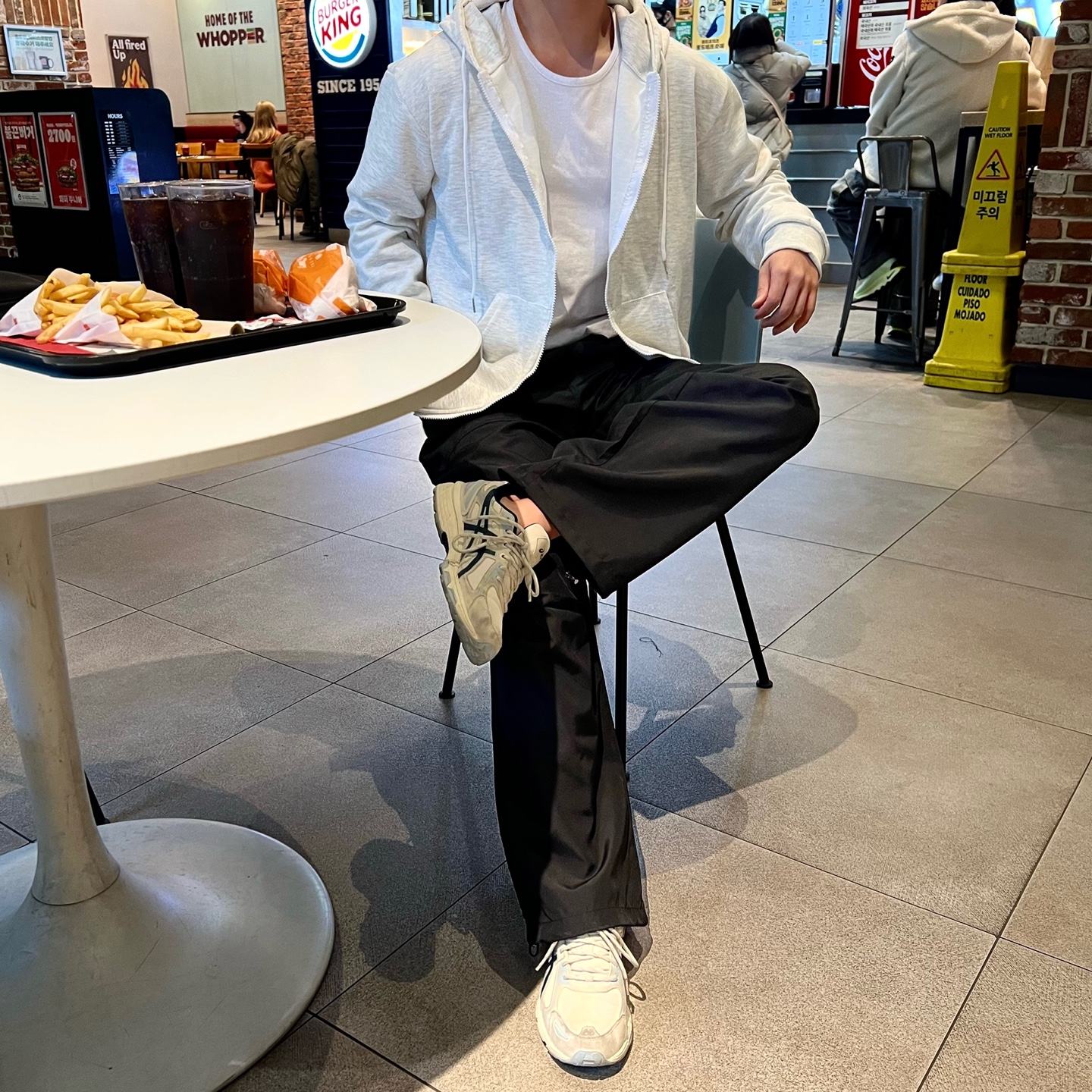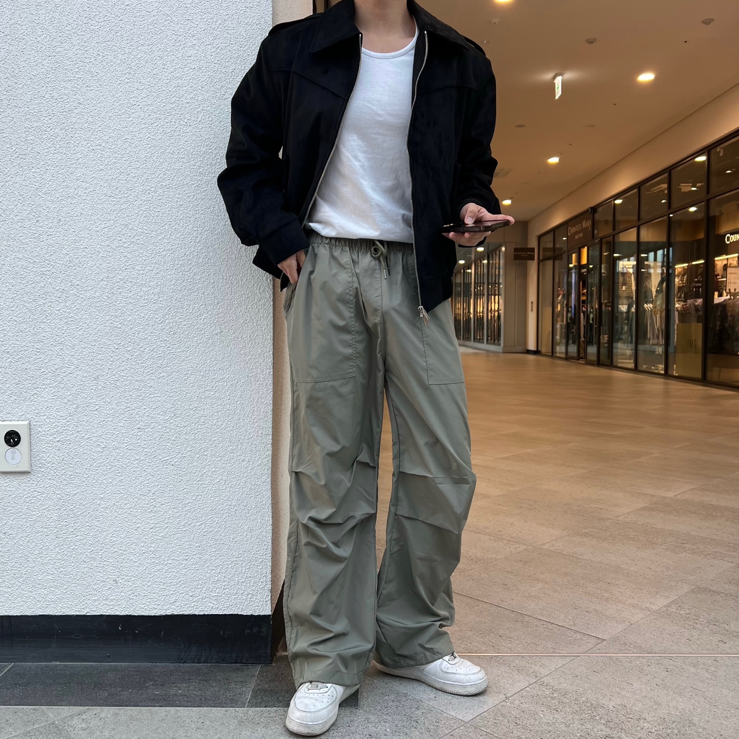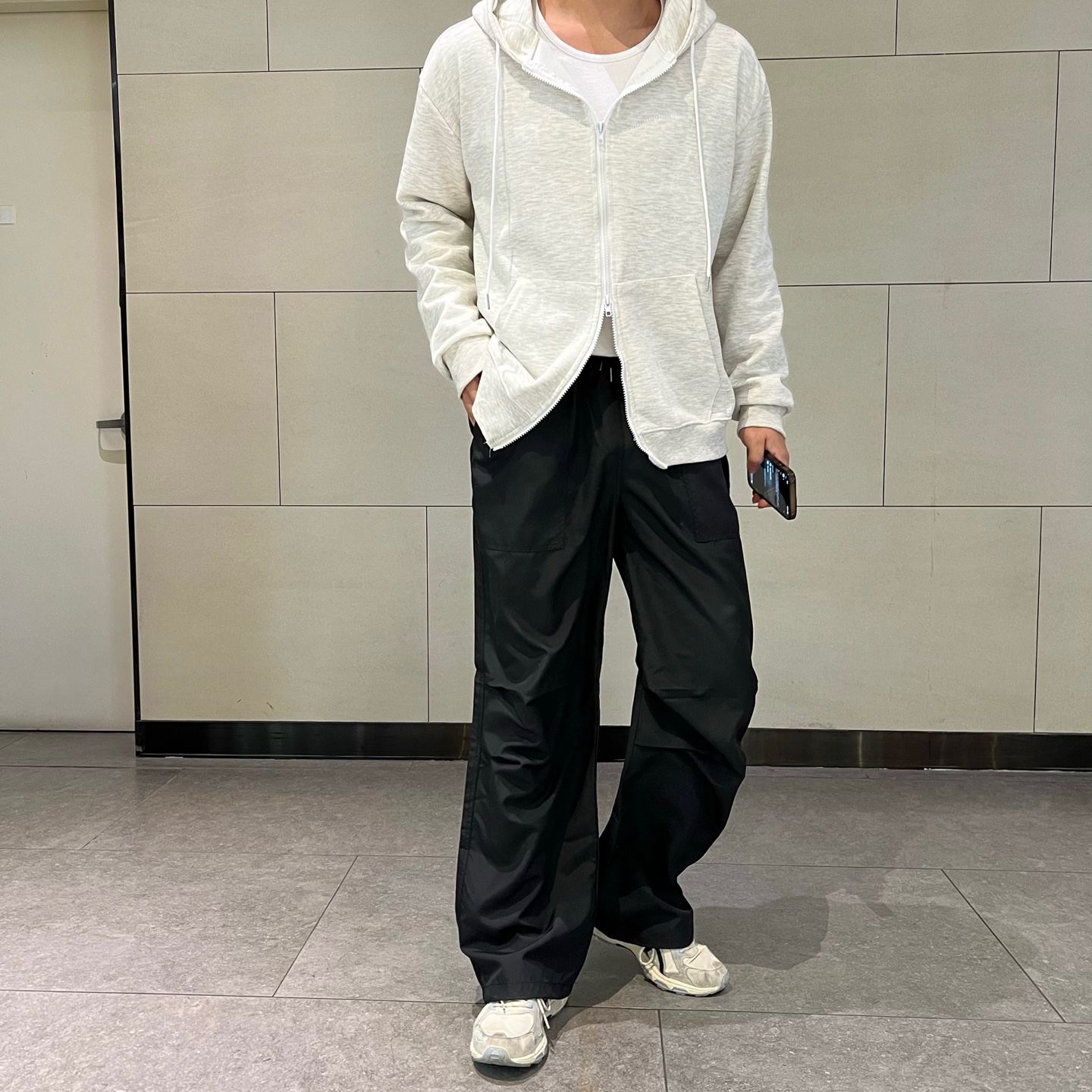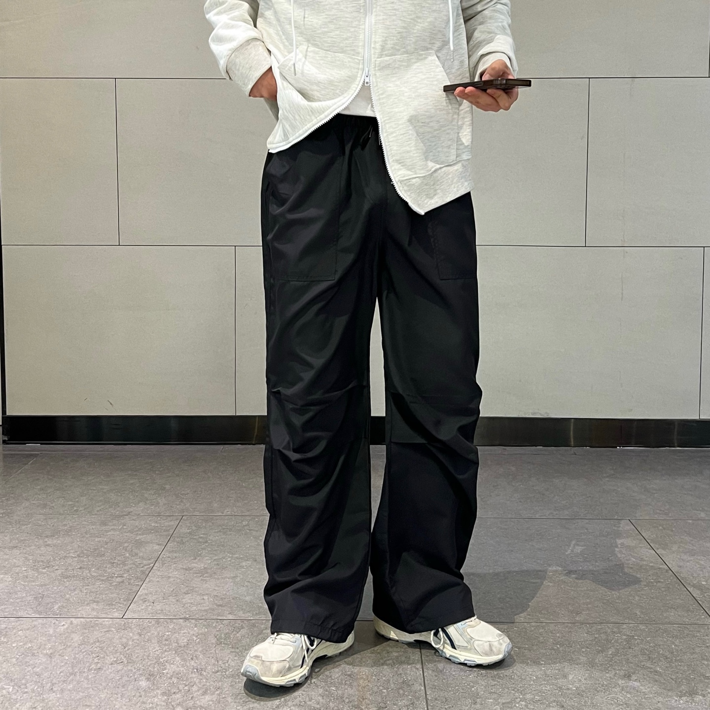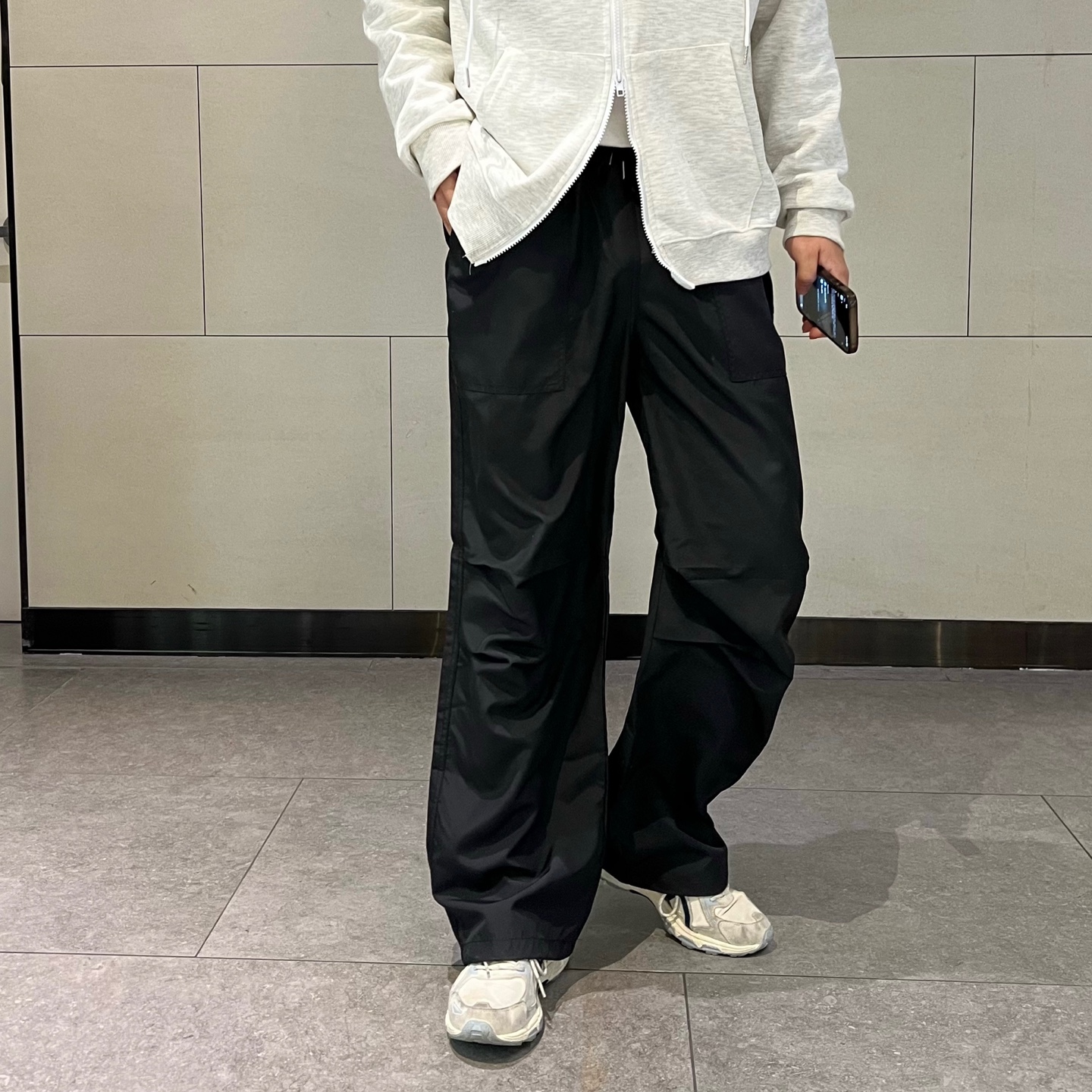 - 밑단 스트링으로 조거 or 와이드 핏 연출
