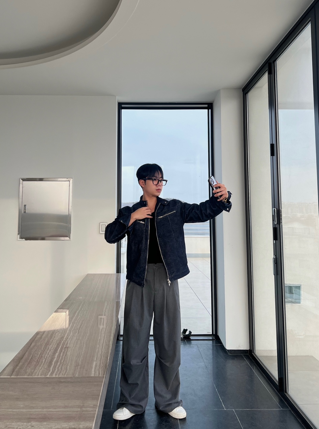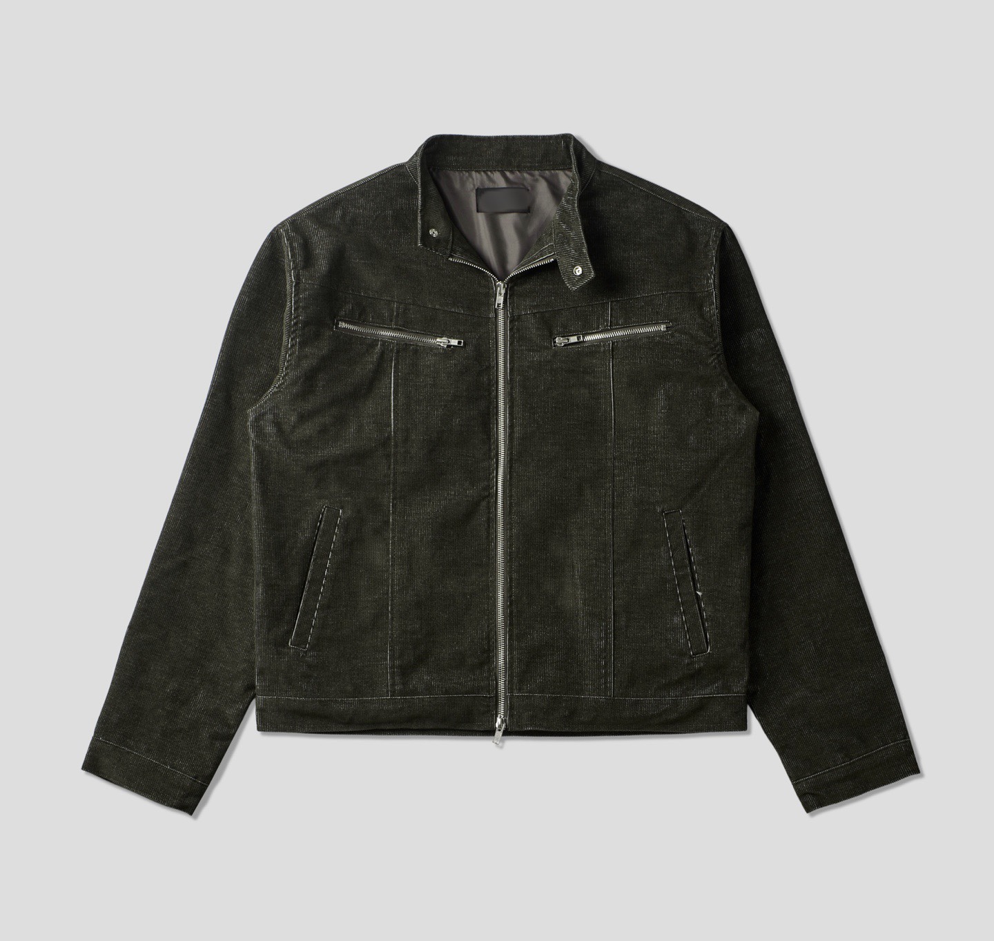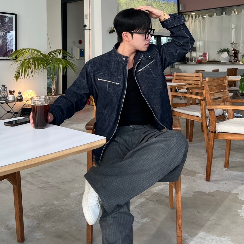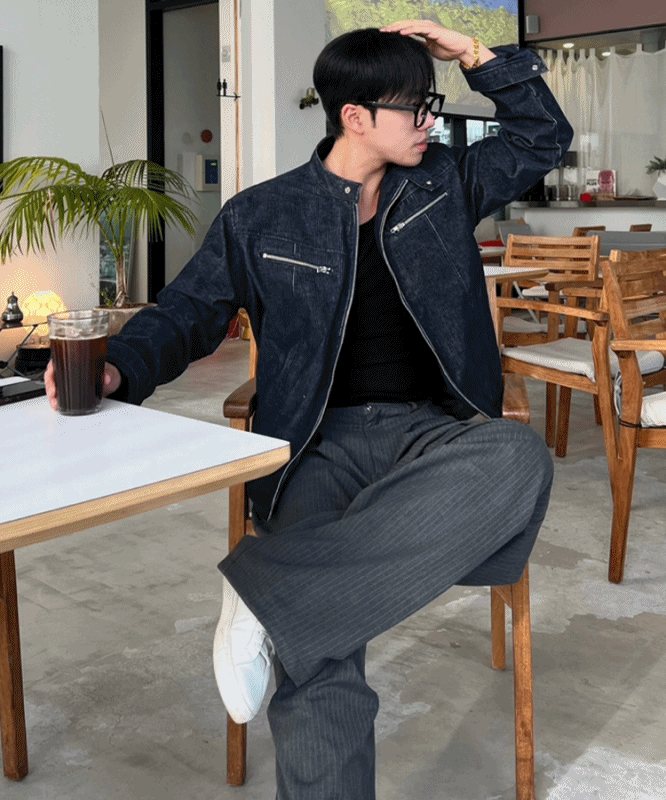 - 전면부 지퍼 디테일로 빈티지한 무드의 자켓