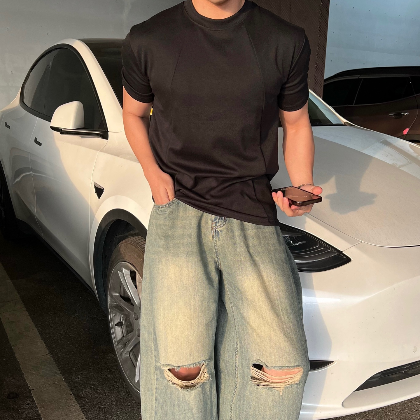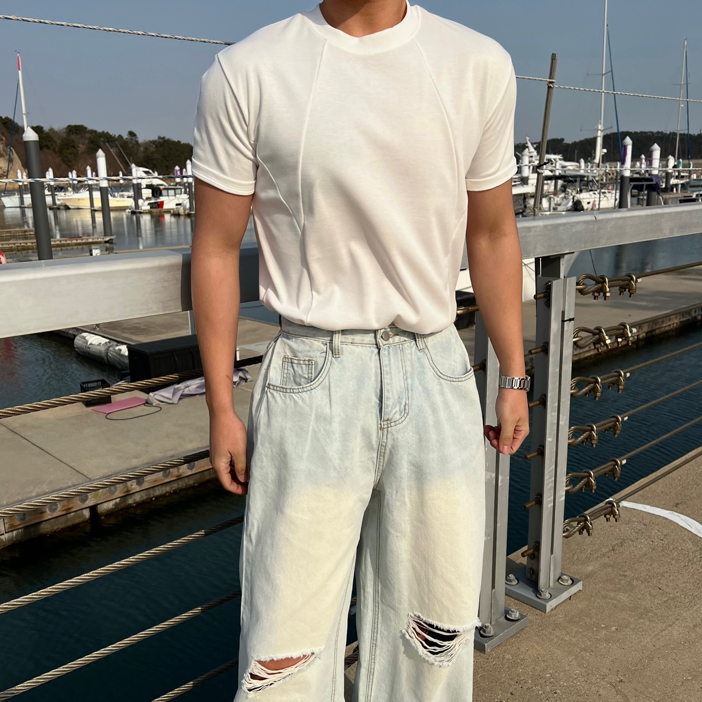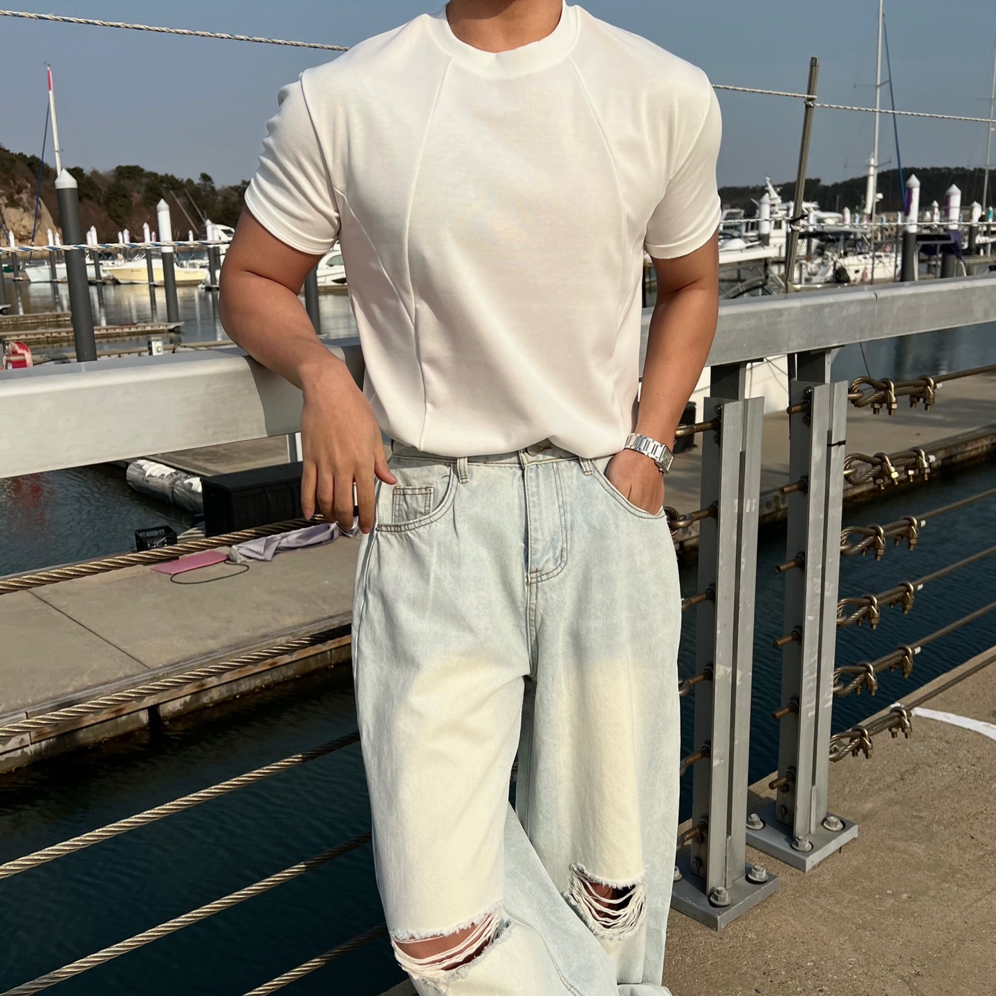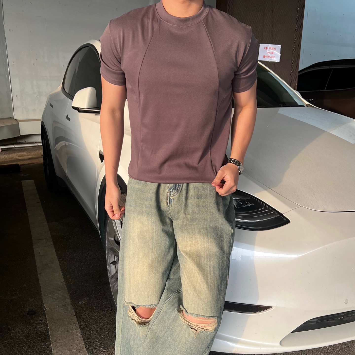 - 전면 커팅 포인트가 매력적인 머슬핏 반팔