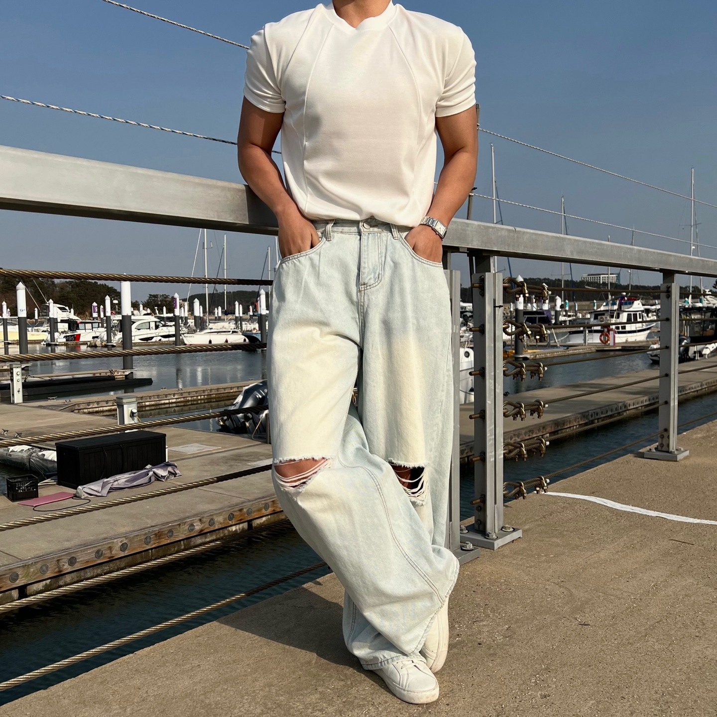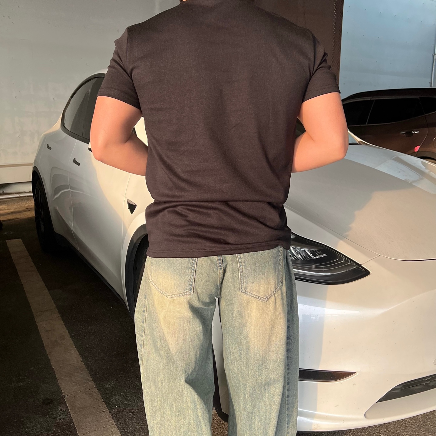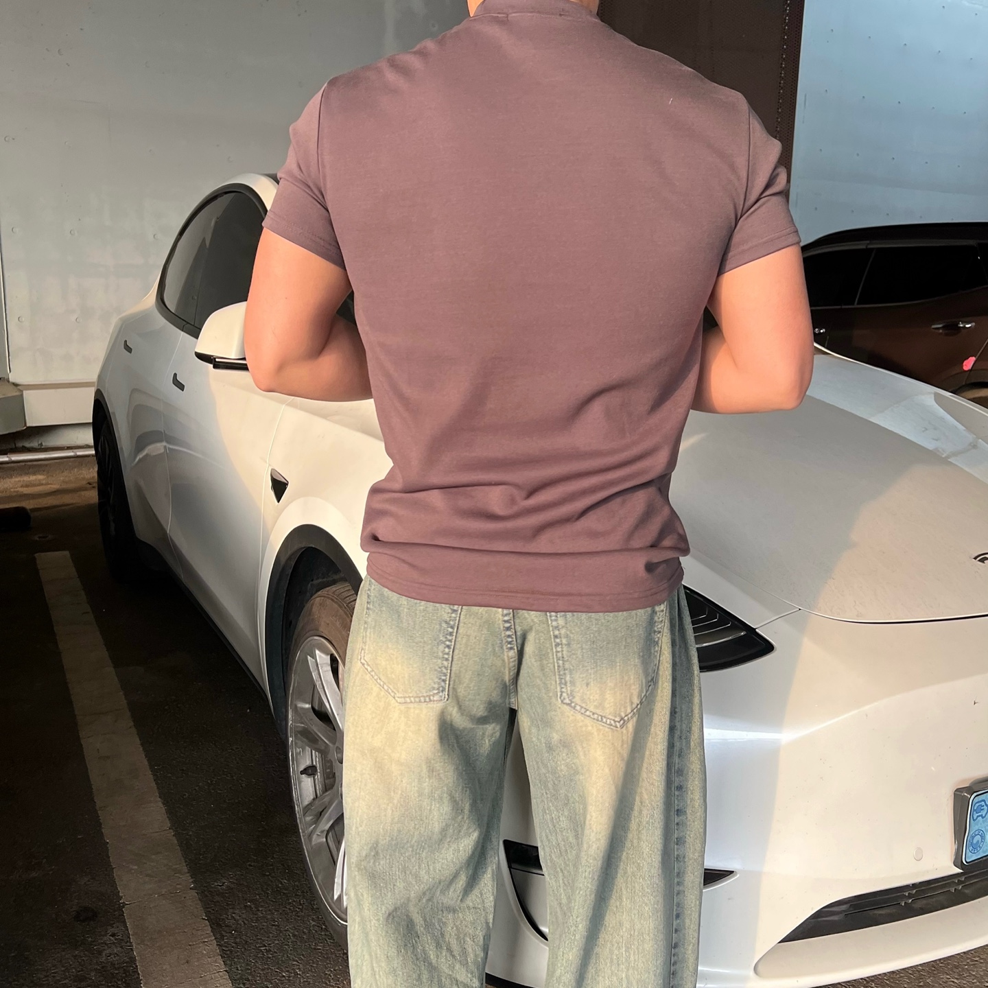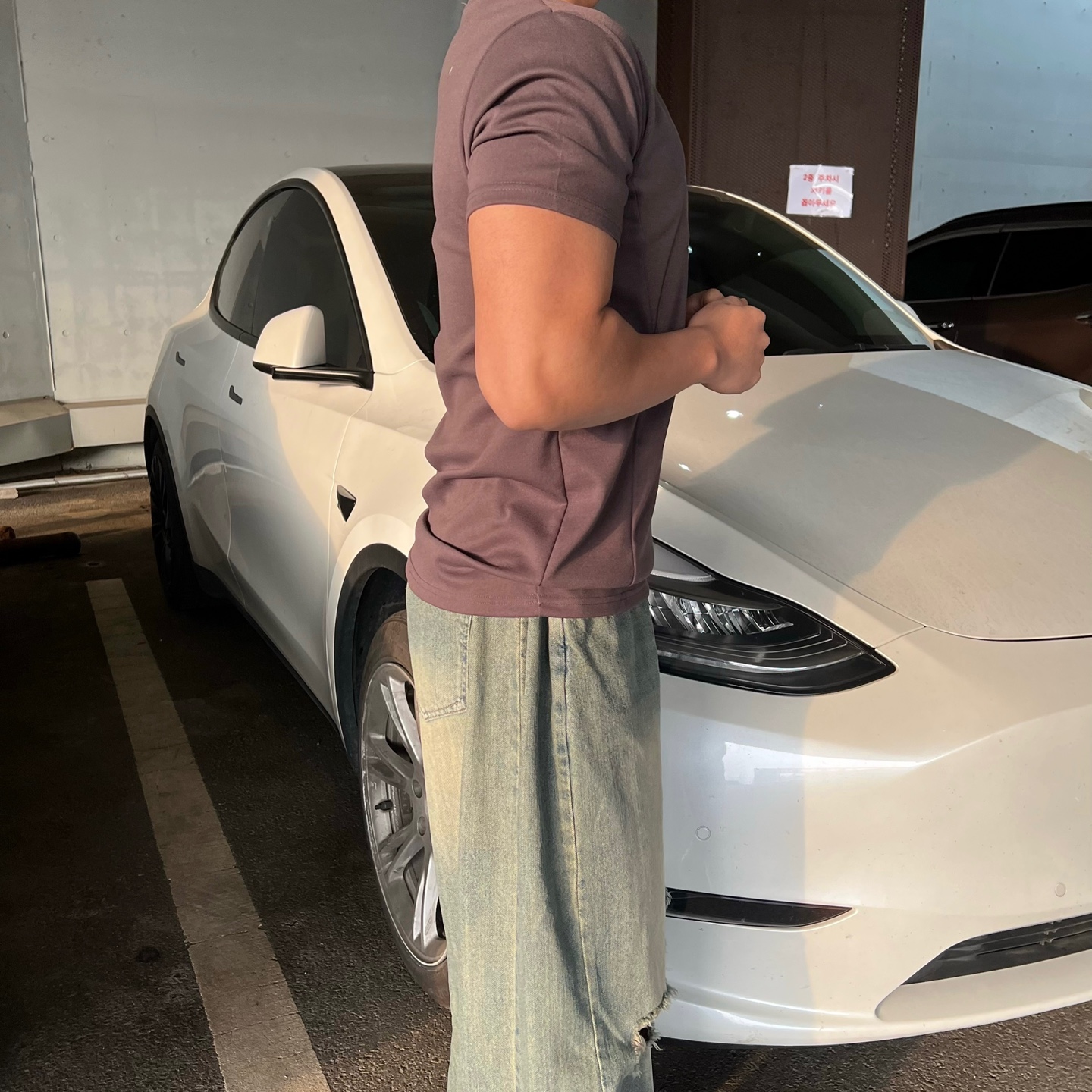 - 전면 커팅 포인트가 매력적인 머슬핏 반팔