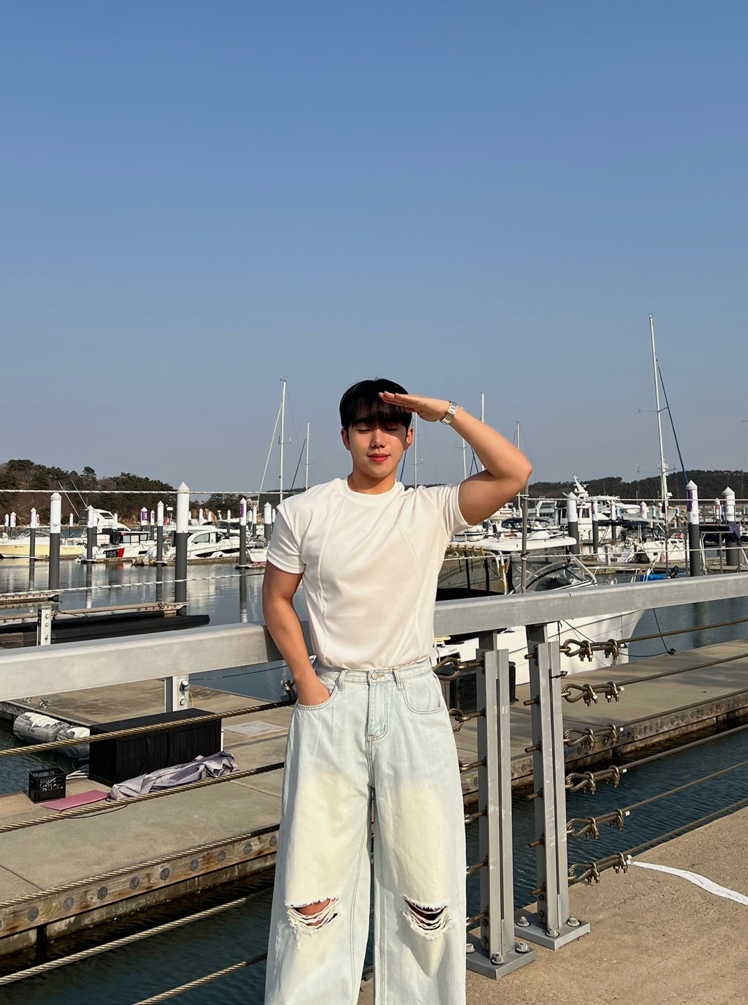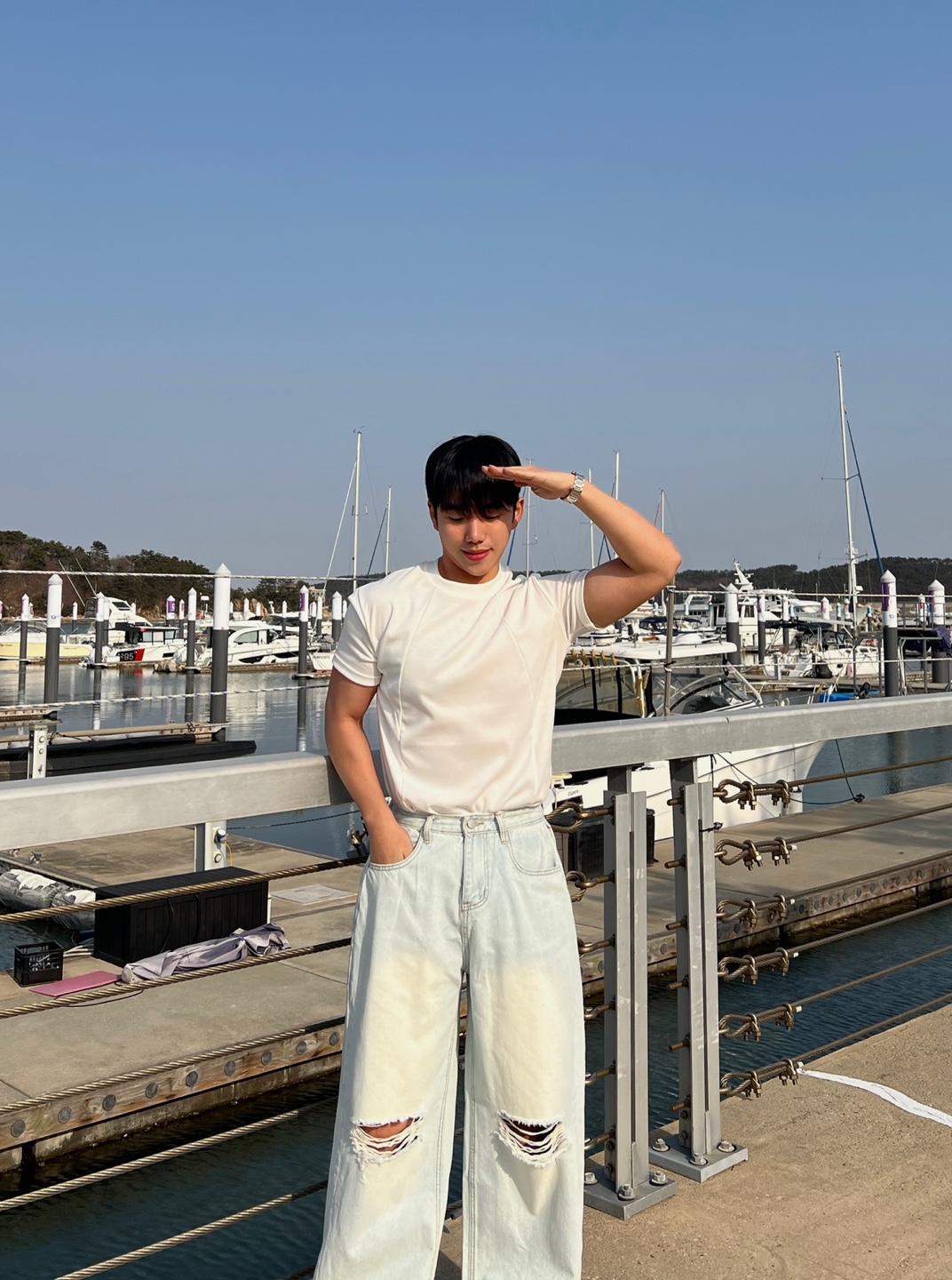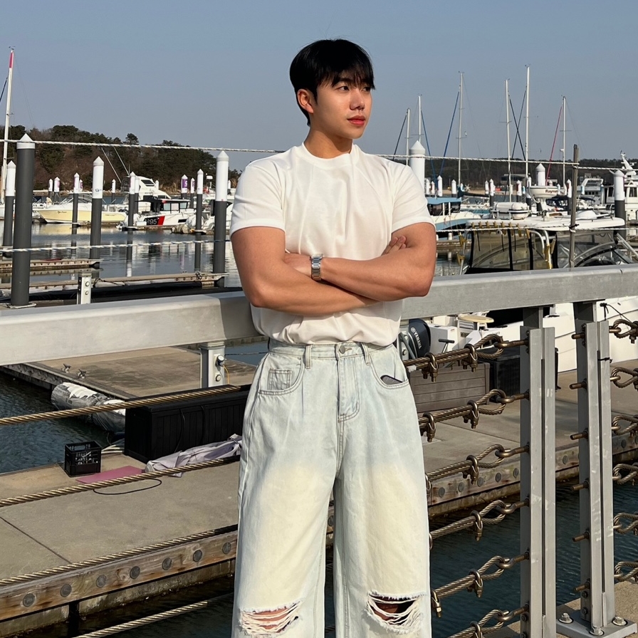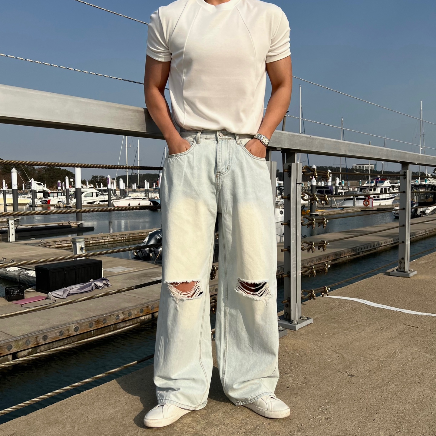 - 전면 커팅 포인트가 매력적인 머슬핏 반팔