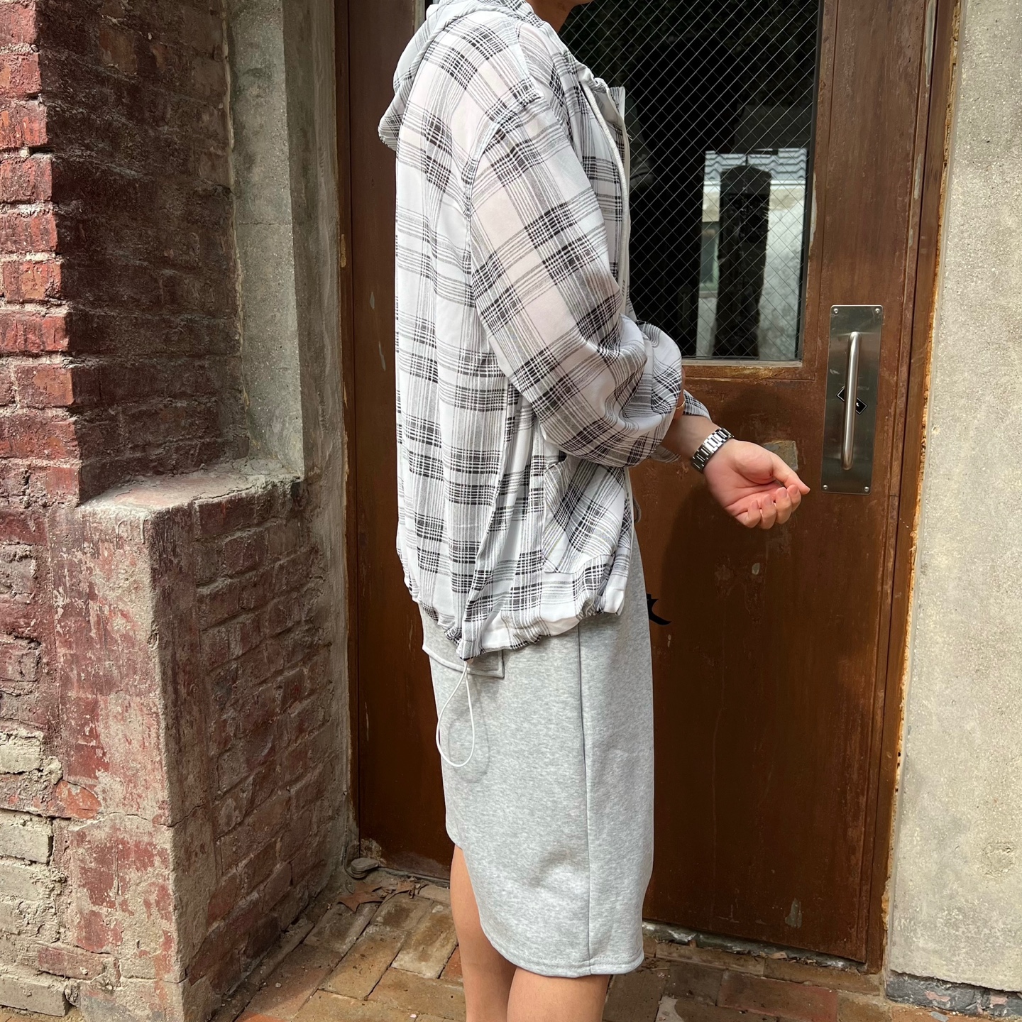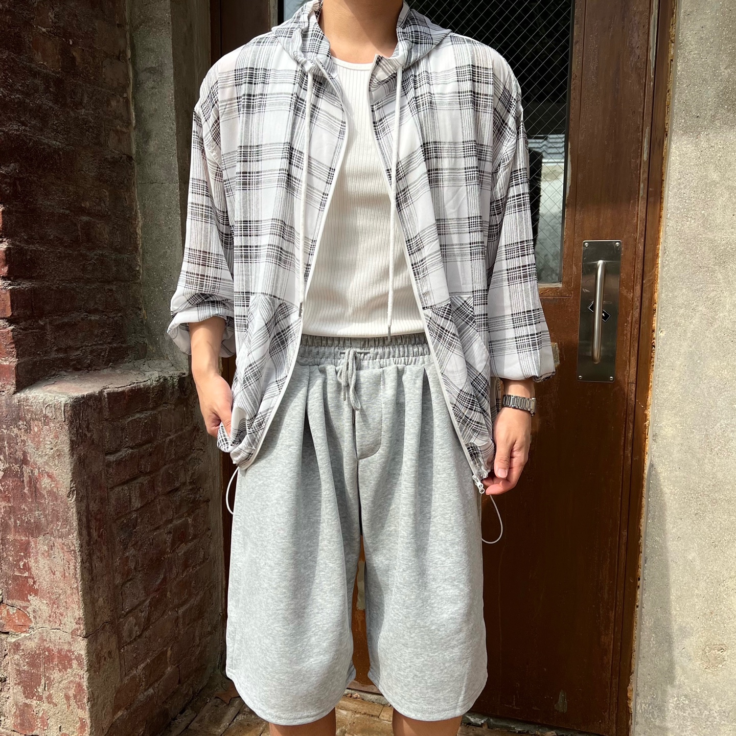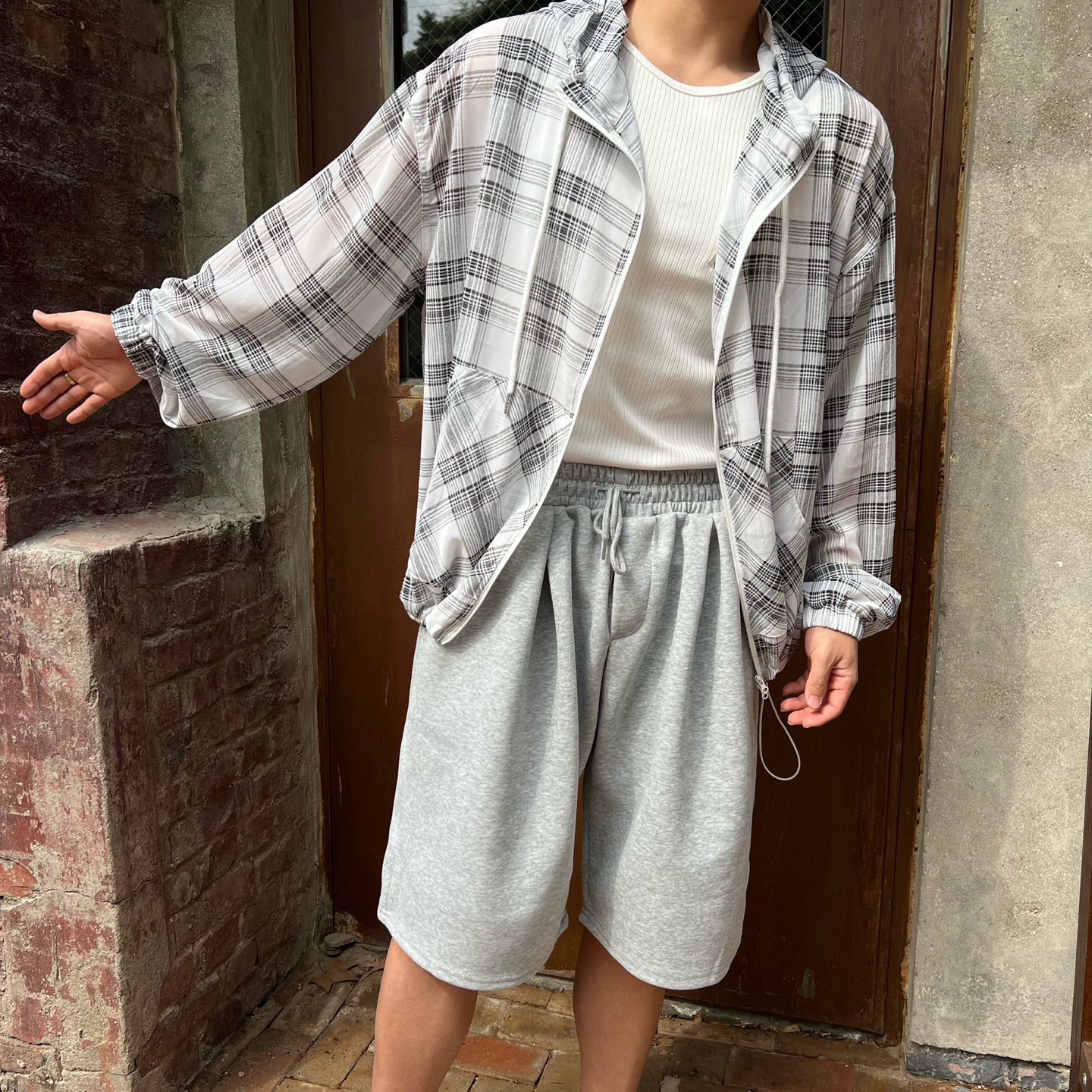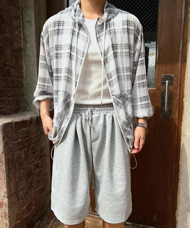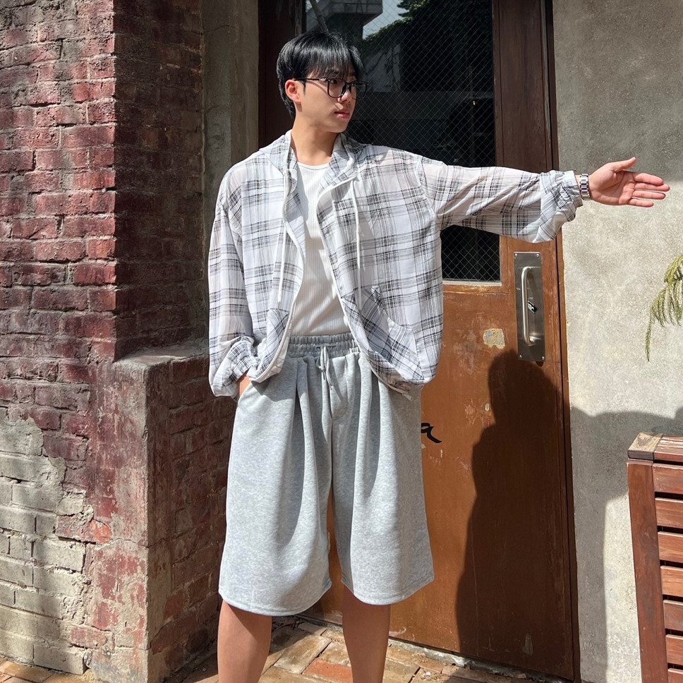 - 체크 패턴이 매력적인 고퀄리티 여름 후드 자켓