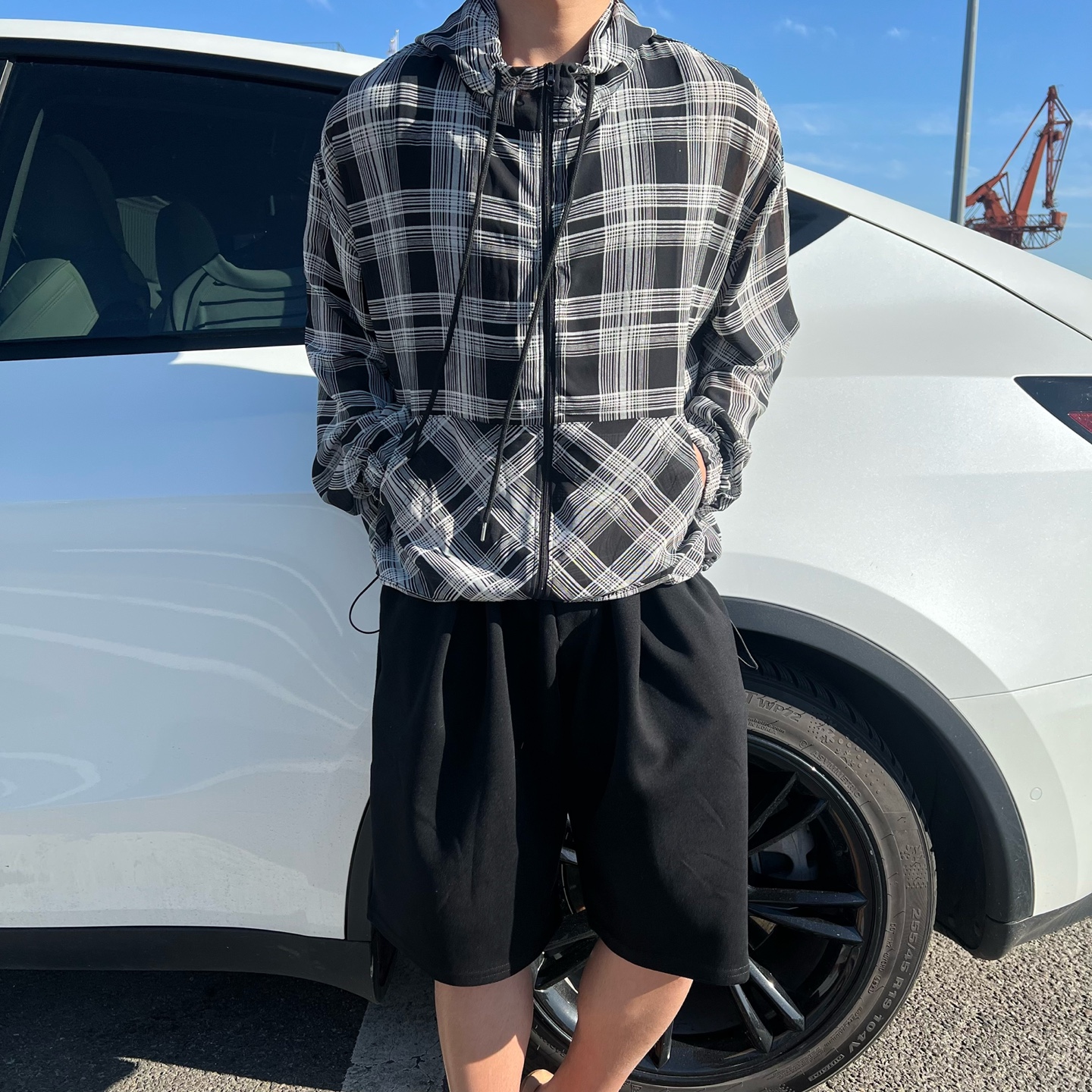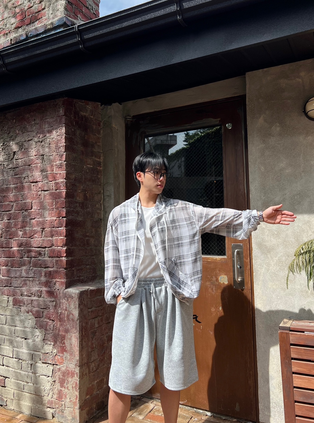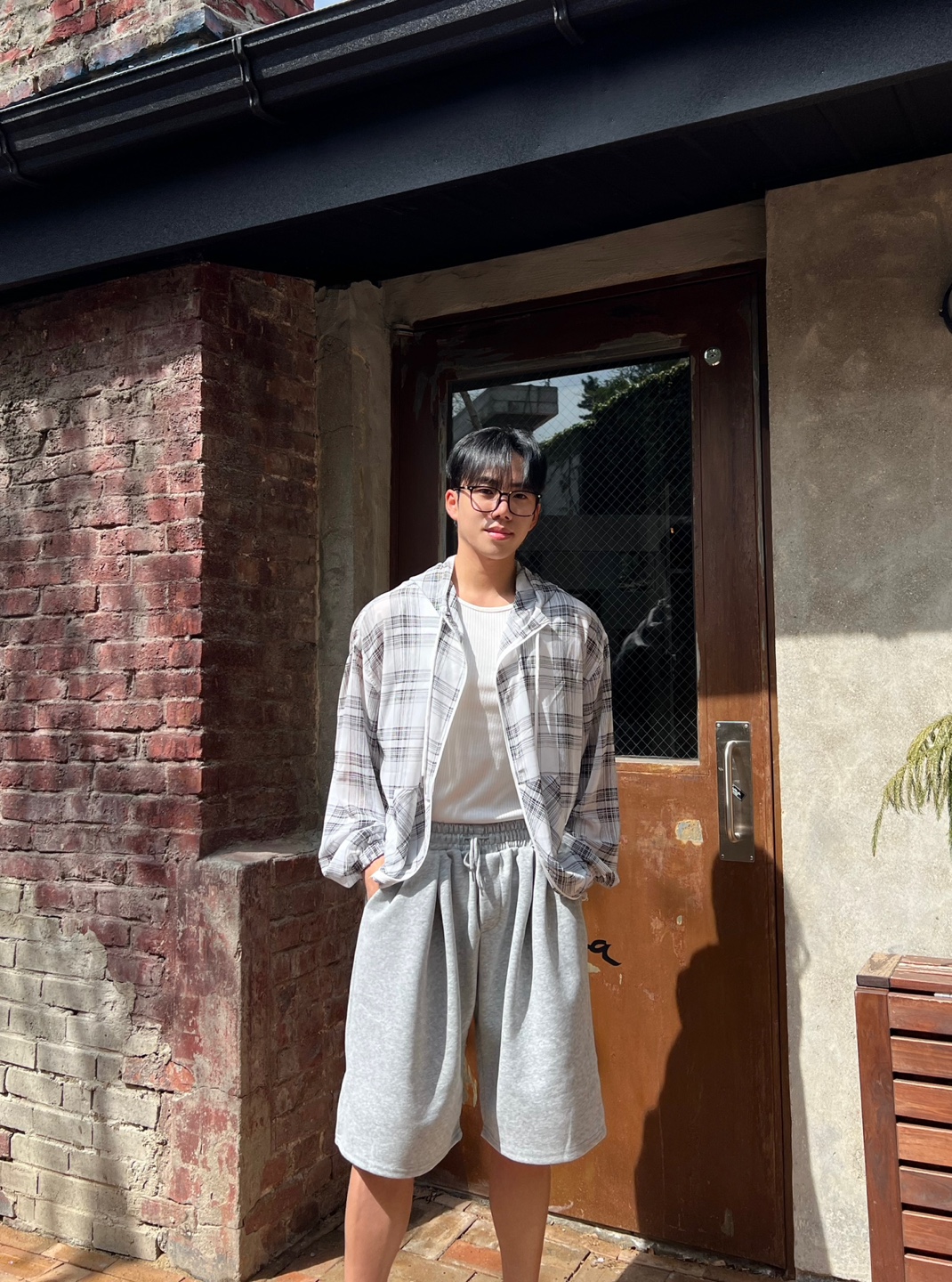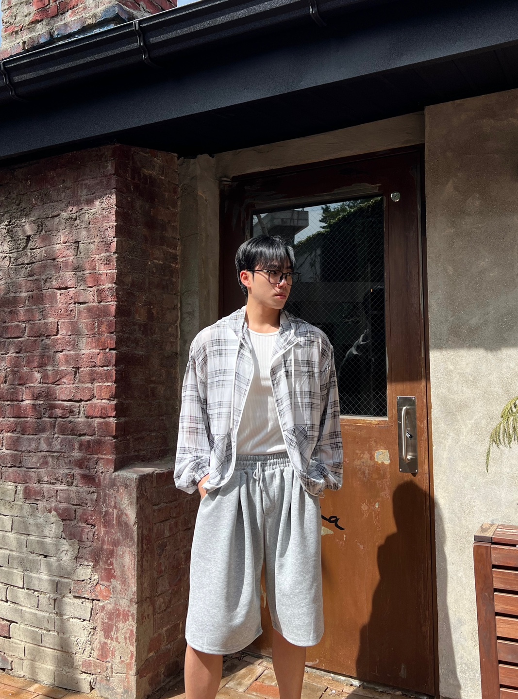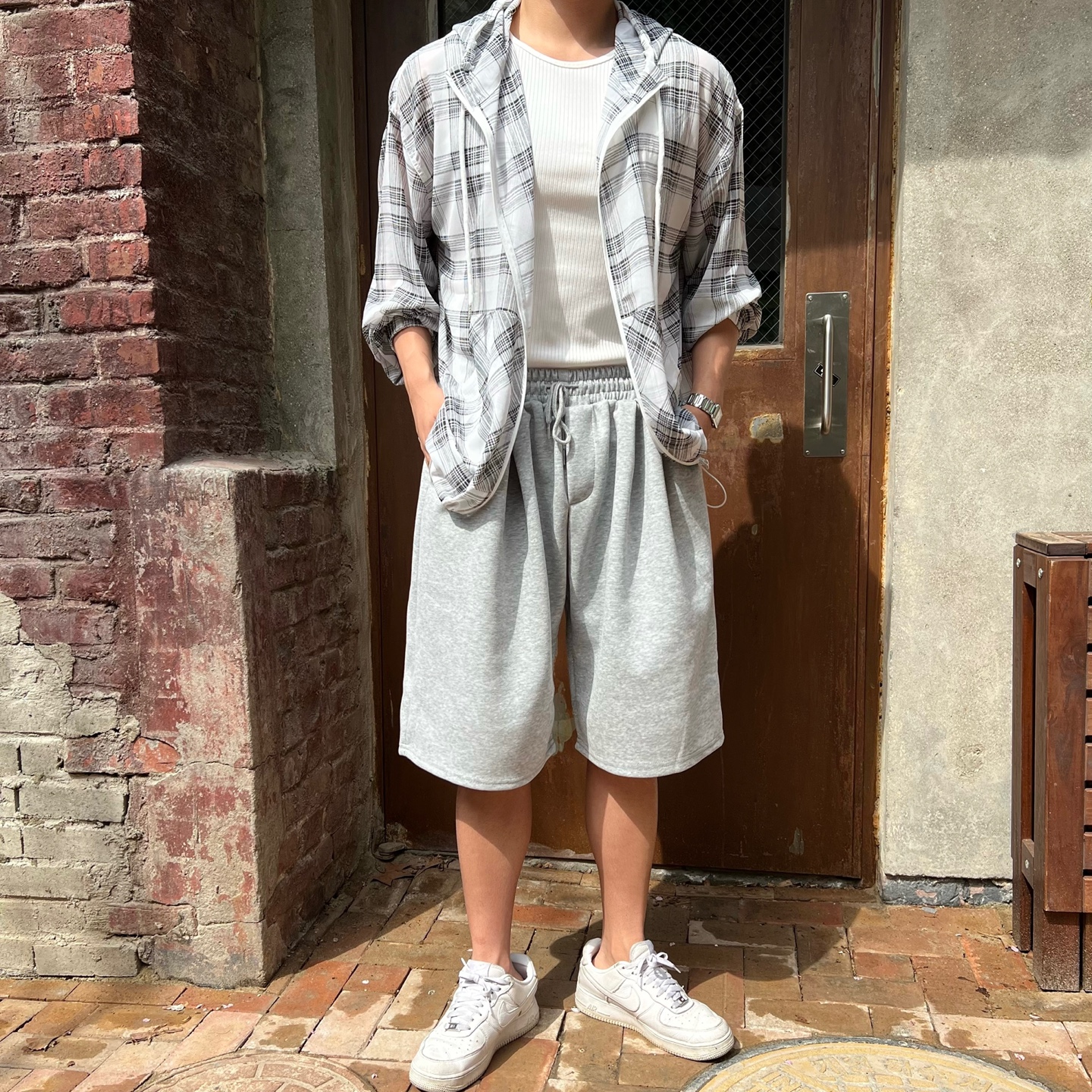 - 체크 패턴이 매력적인 고퀄리티 여름 후드 자켓