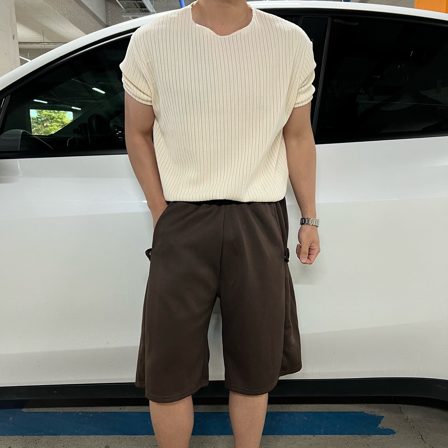 - 몸을 잡아주는 머슬핏으로 제작