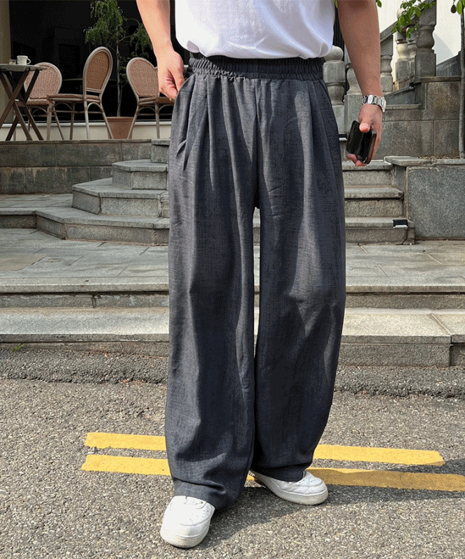 키브 린넨 밴딩 와이드 팬츠 (3color)