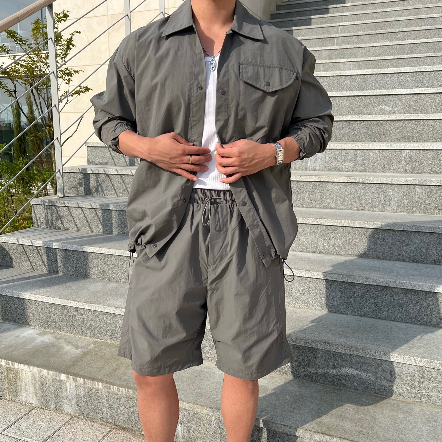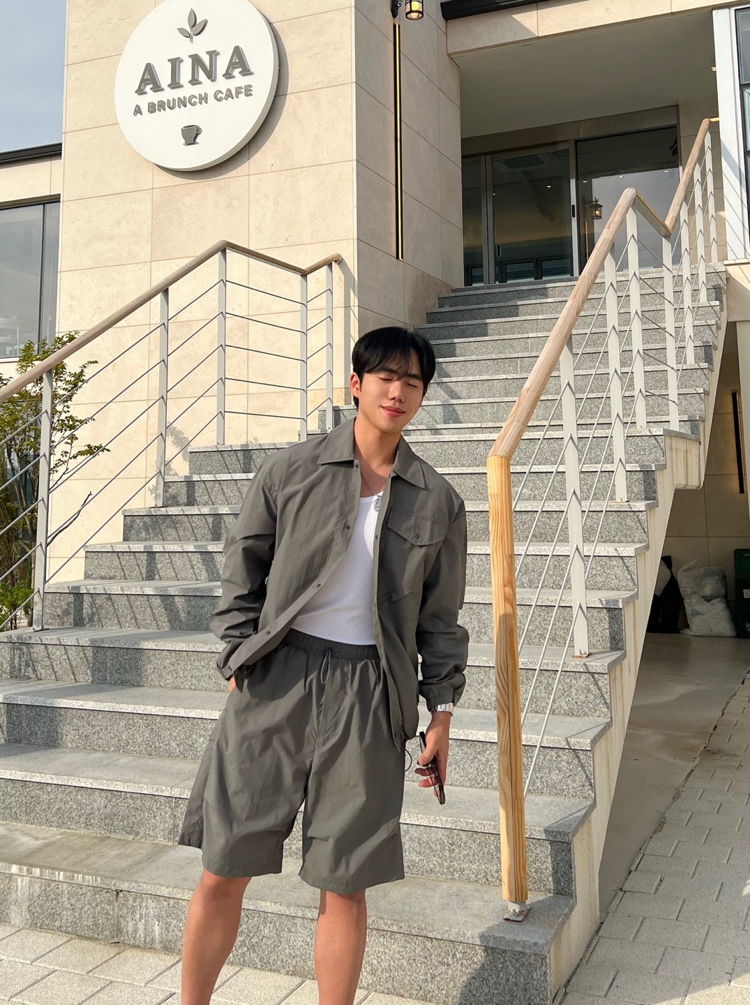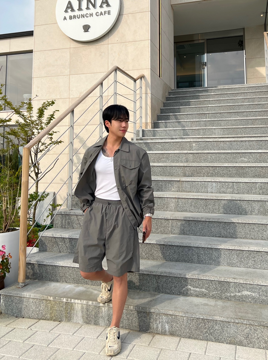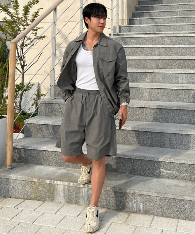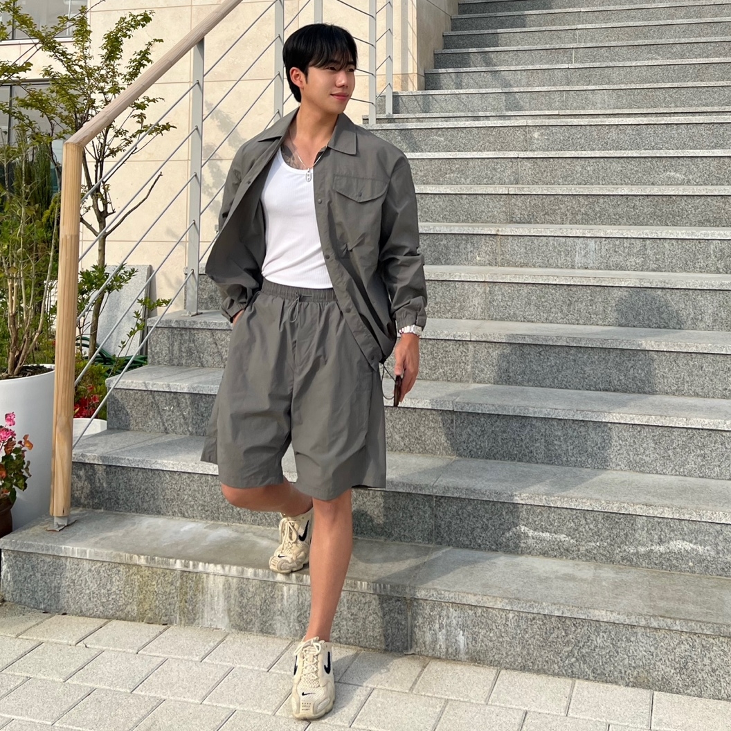 - 두께감이 얇아 봄, 여름, 가을 간단하게 걸치기 좋은 셋업