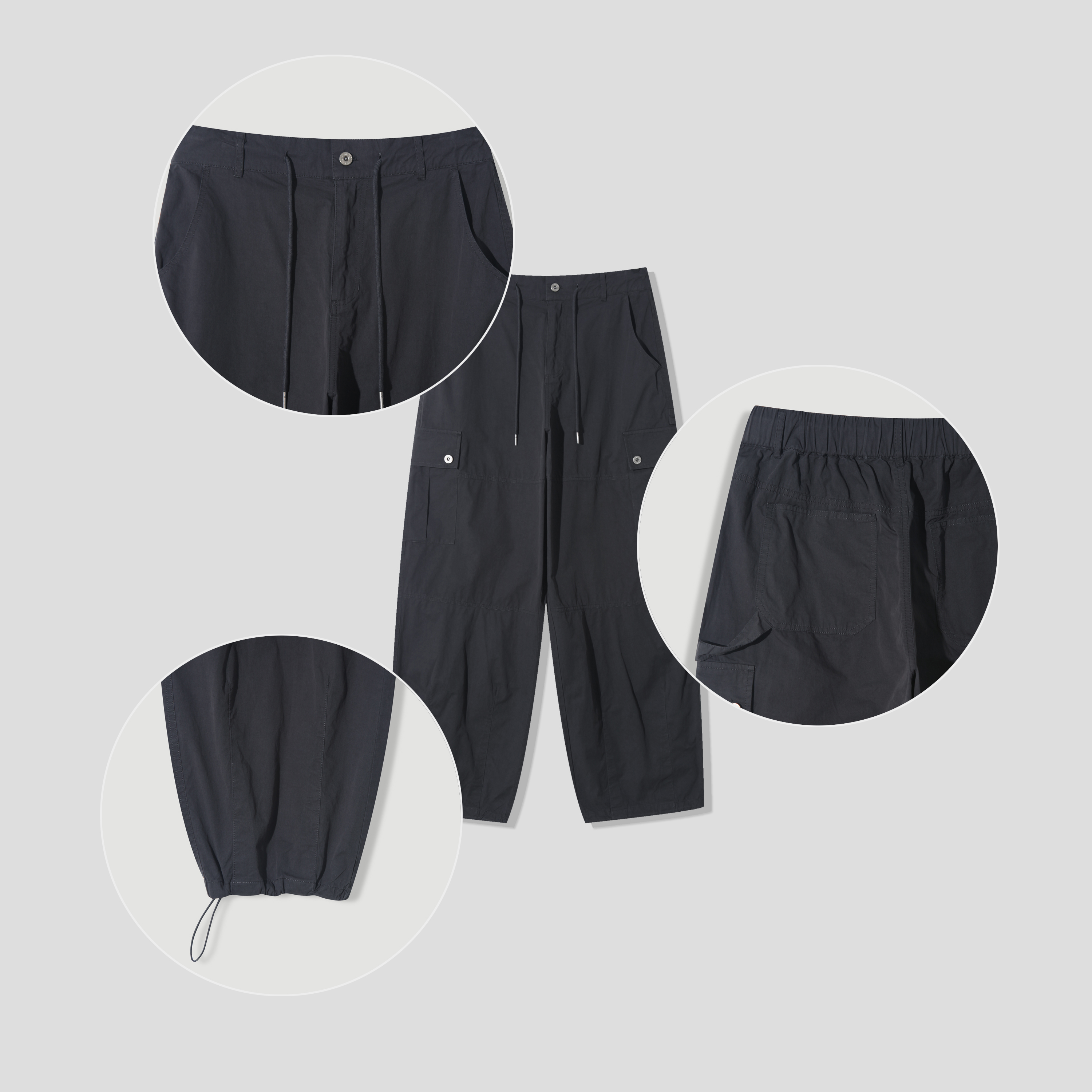 - 허리 반 밴딩 + 밑단 스트링 디테일로 편안한 착용감을 선사