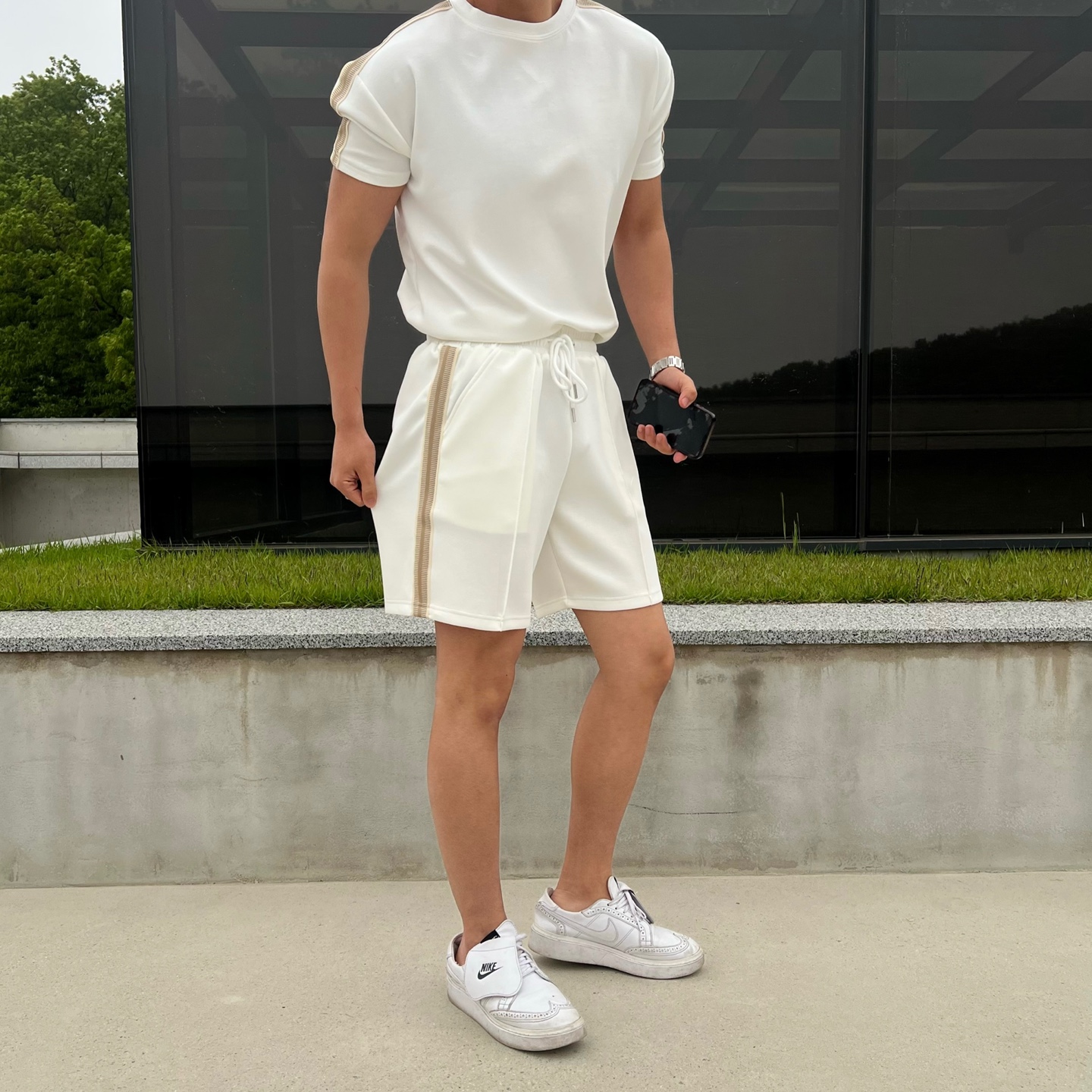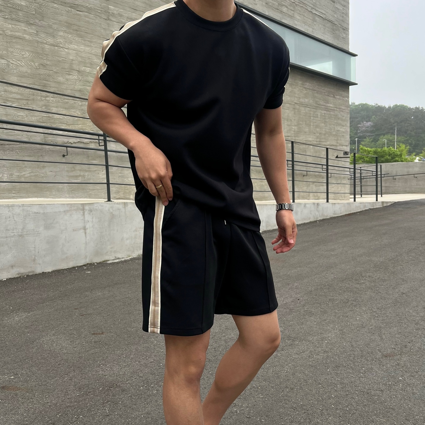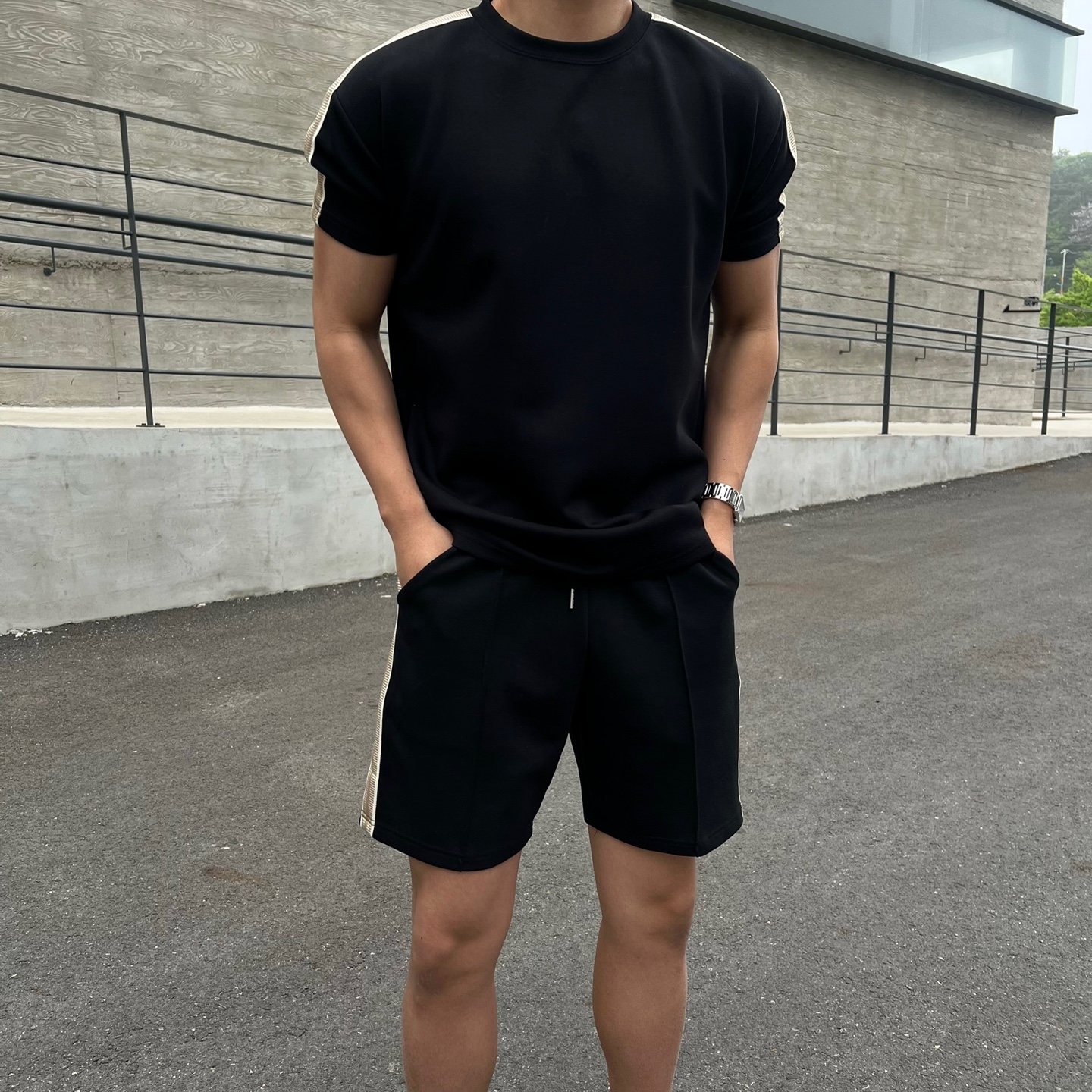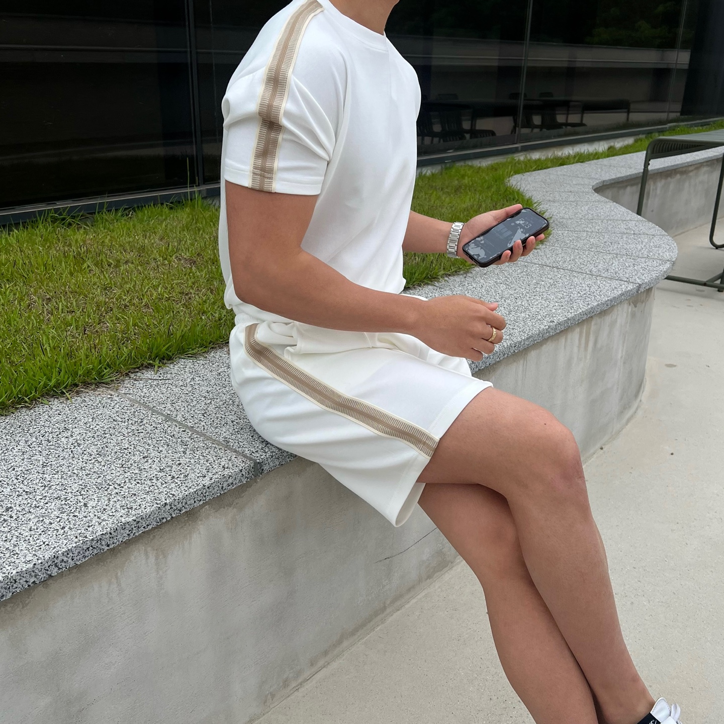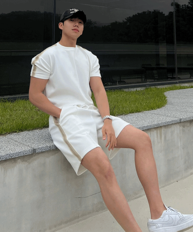 - 반팔부터 반바지까지 이어지는 고급스러운 트랙 라인 디테일