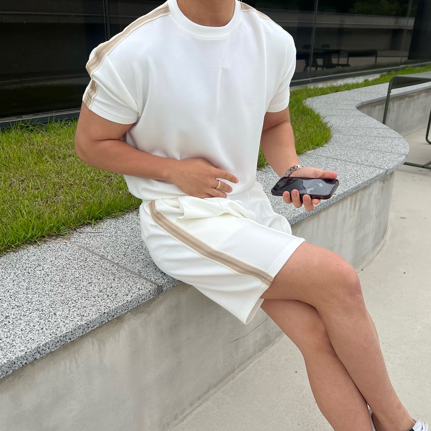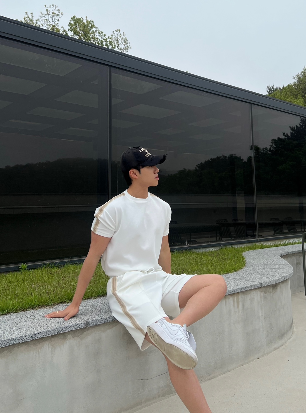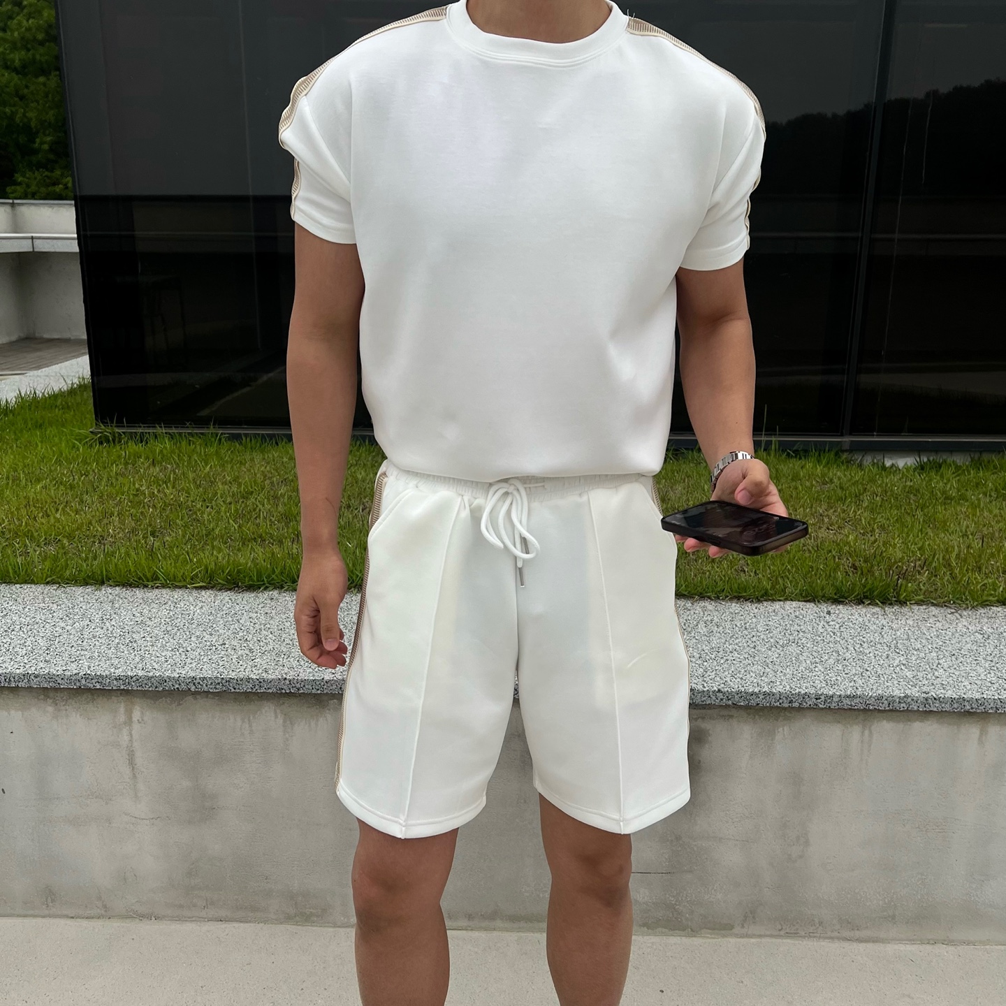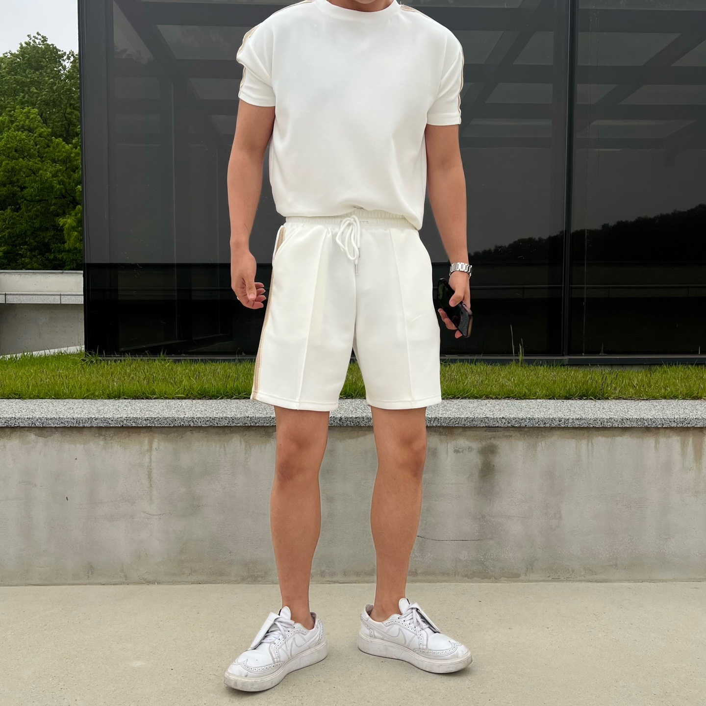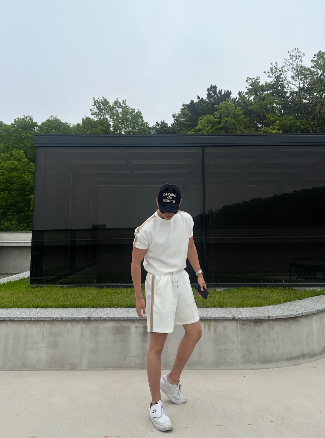 - 반팔부터 반바지까지 이어지는 고급스러운 트랙 라인 디테일