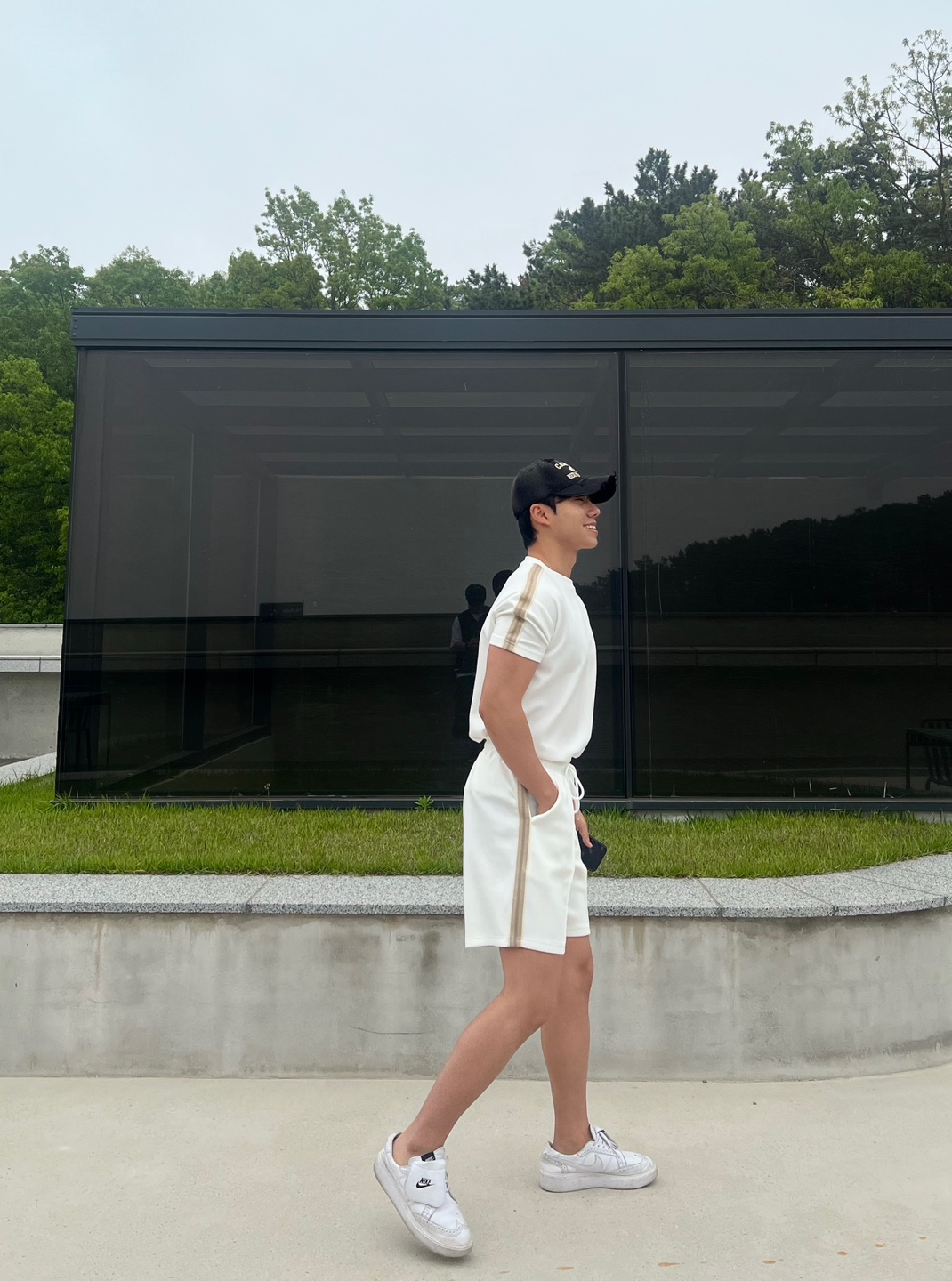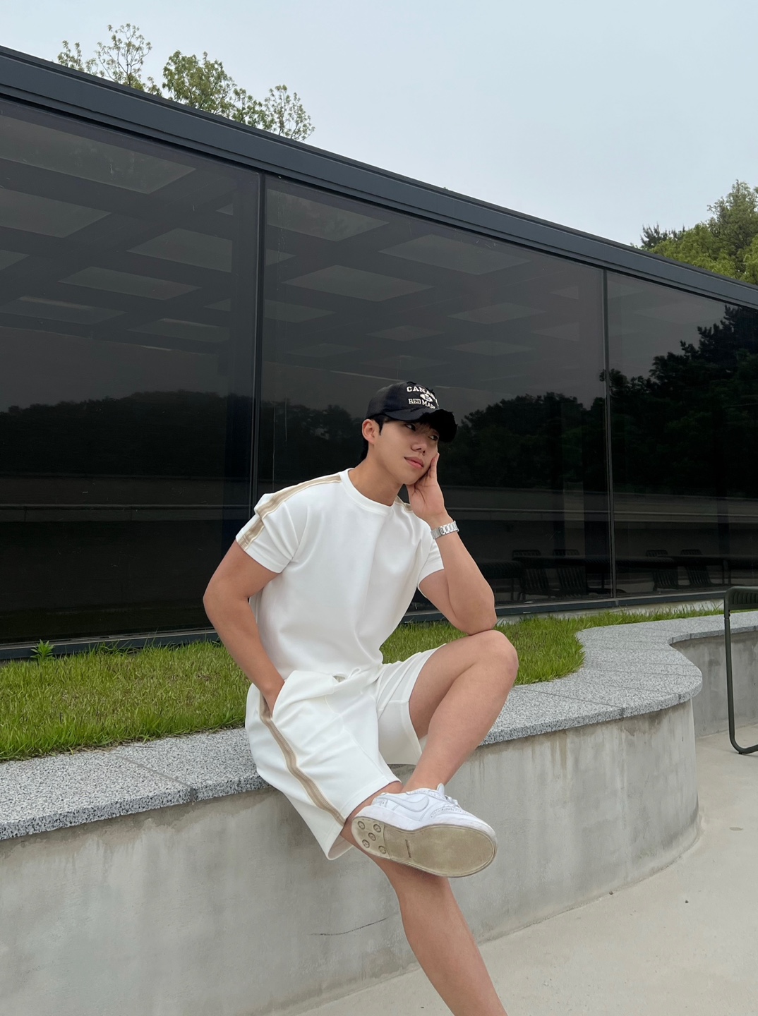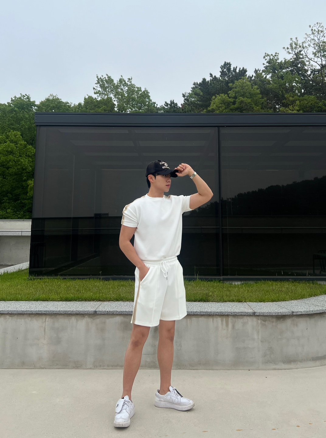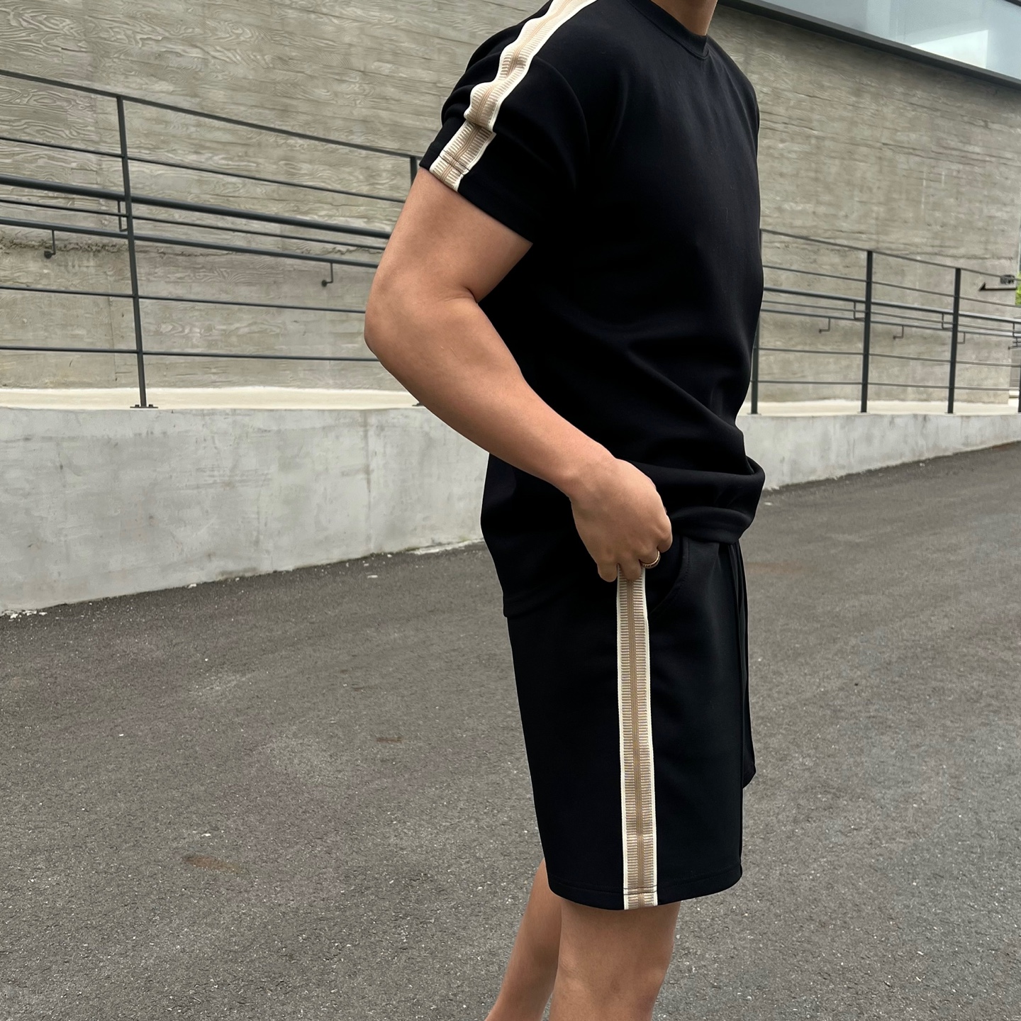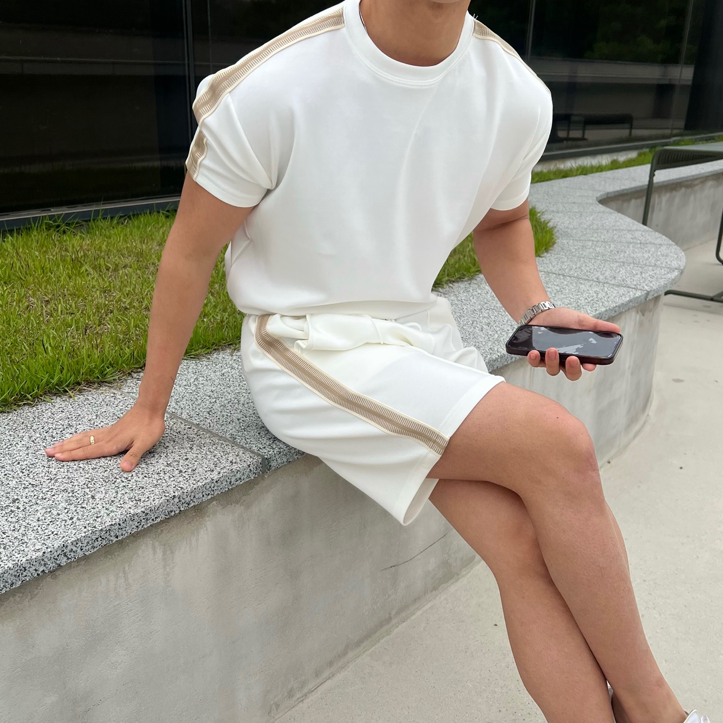 - 반팔부터 반바지까지 이어지는 고급스러운 트랙 라인 디테일