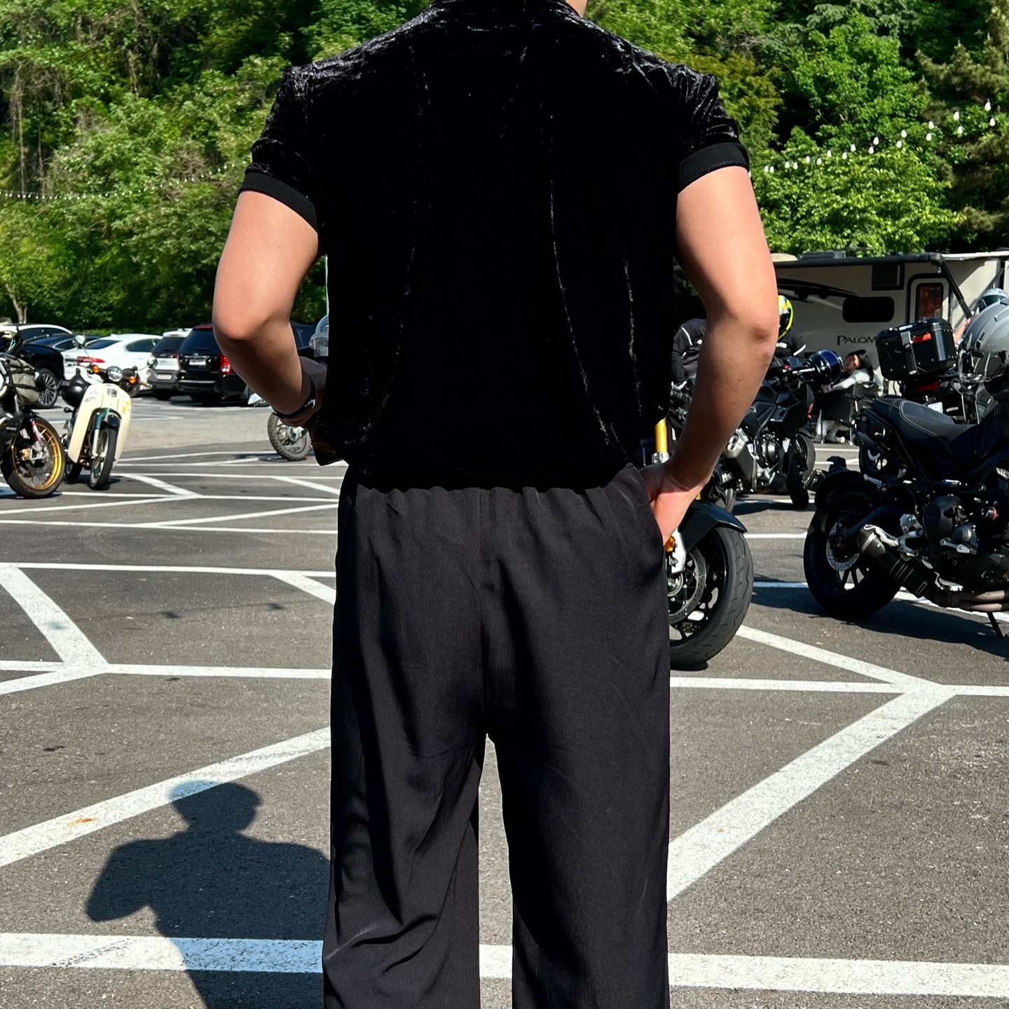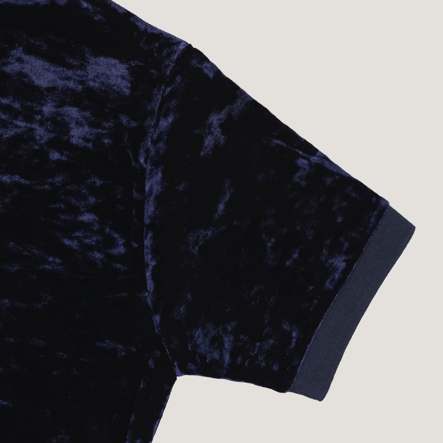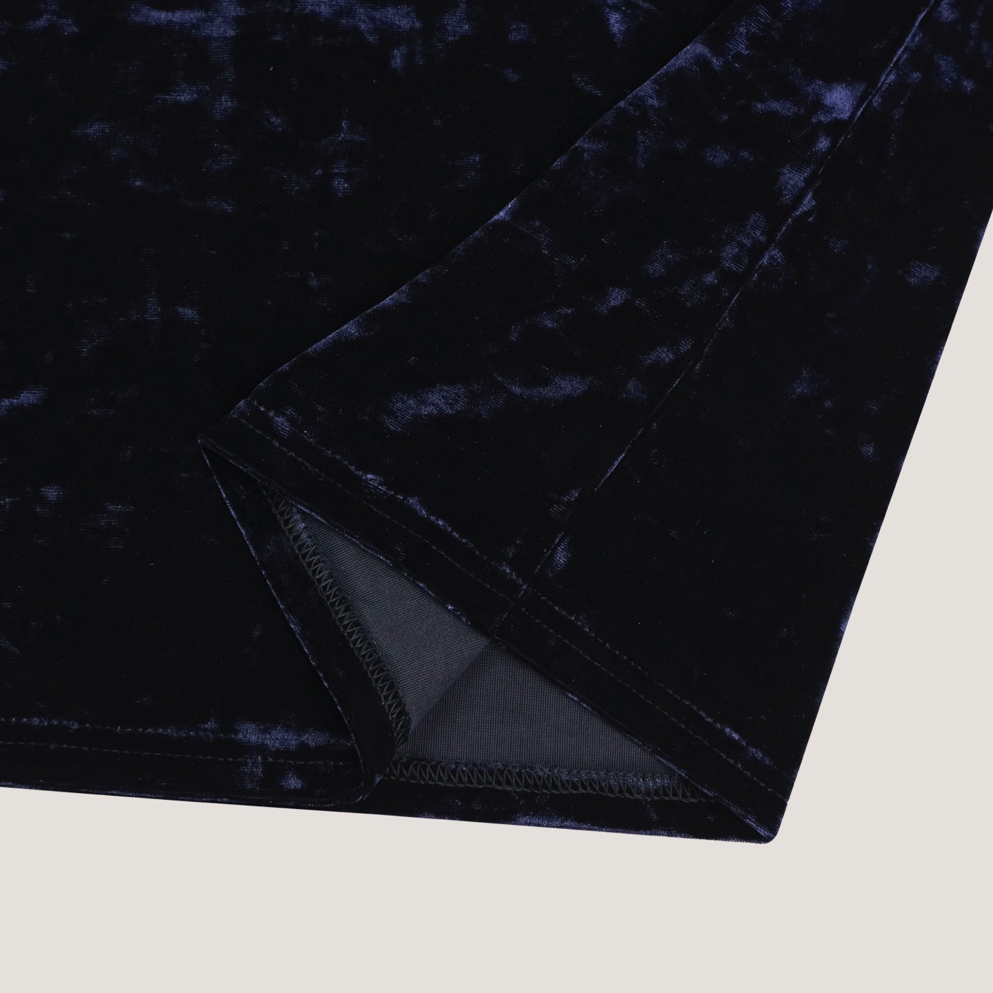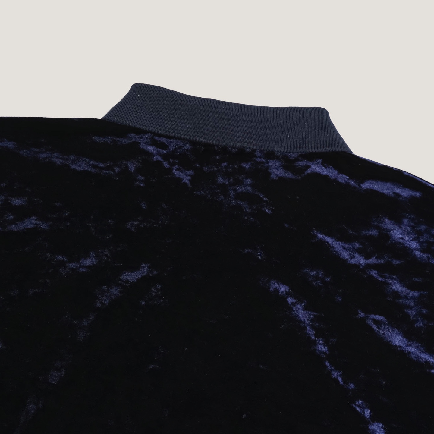 - 벨벳 소재로 광택이 도는 질감과 시보리 소매와 카라의 디테일