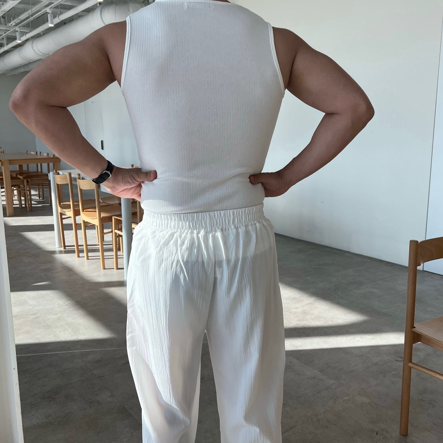 - 허리 밴딩 디테일로 체형 상관없이 안정적이고 편안한 착용 가능