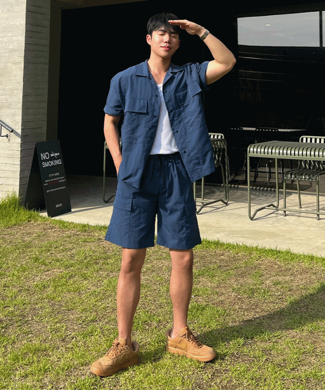 - 카고 포켓 반바지로 캐주얼하면서도 실용적인 포인트