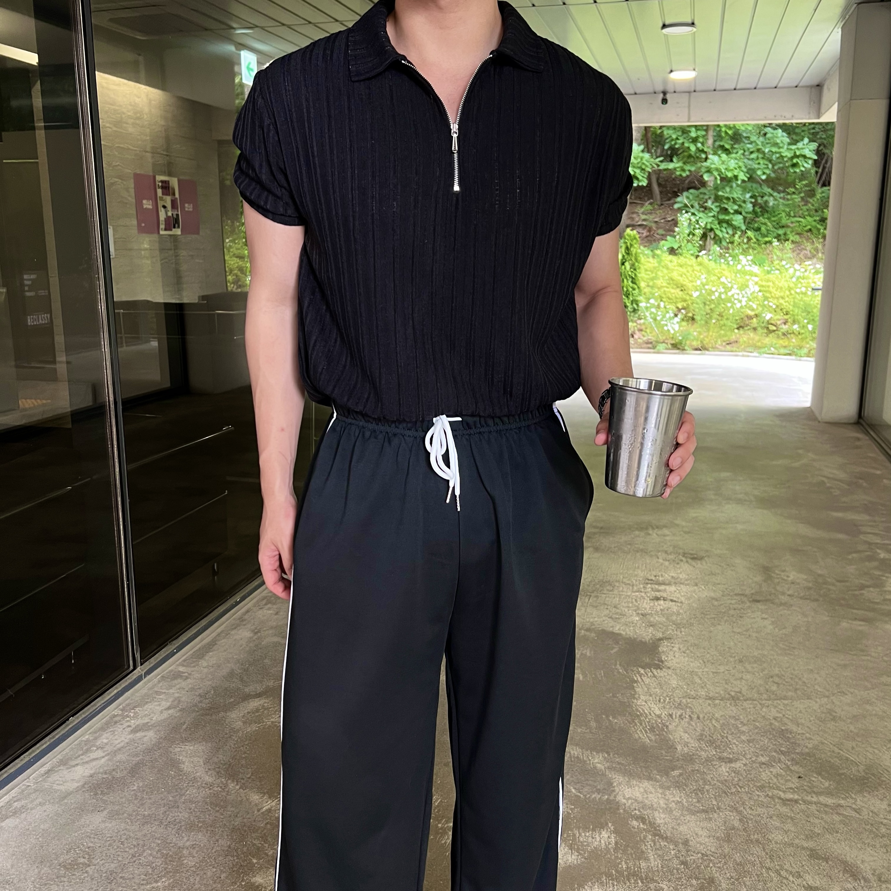 - 버튼 대신 지퍼로 마감된 넥라인은 실용성과 세련미를 모두 겸비한 포인트