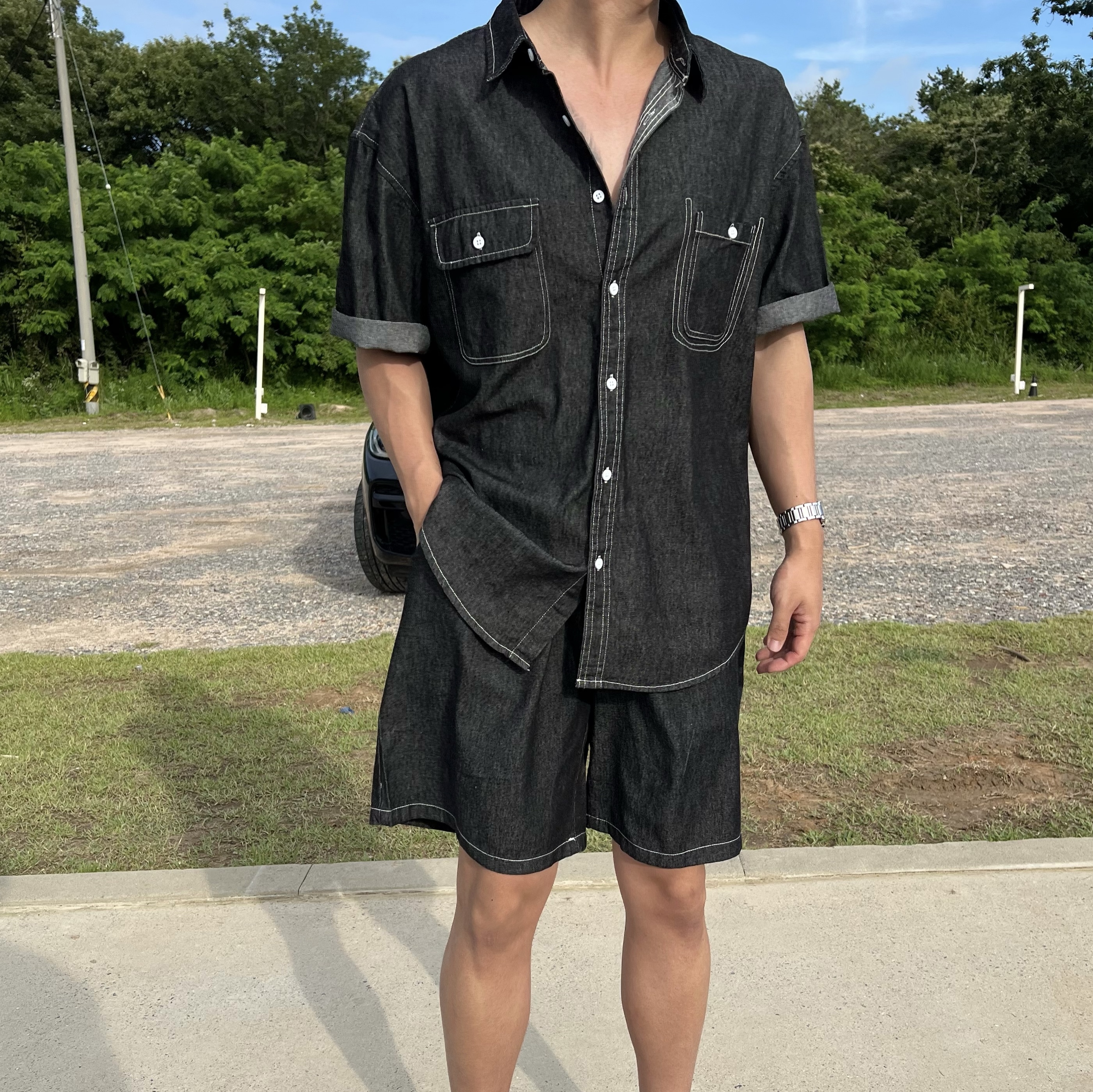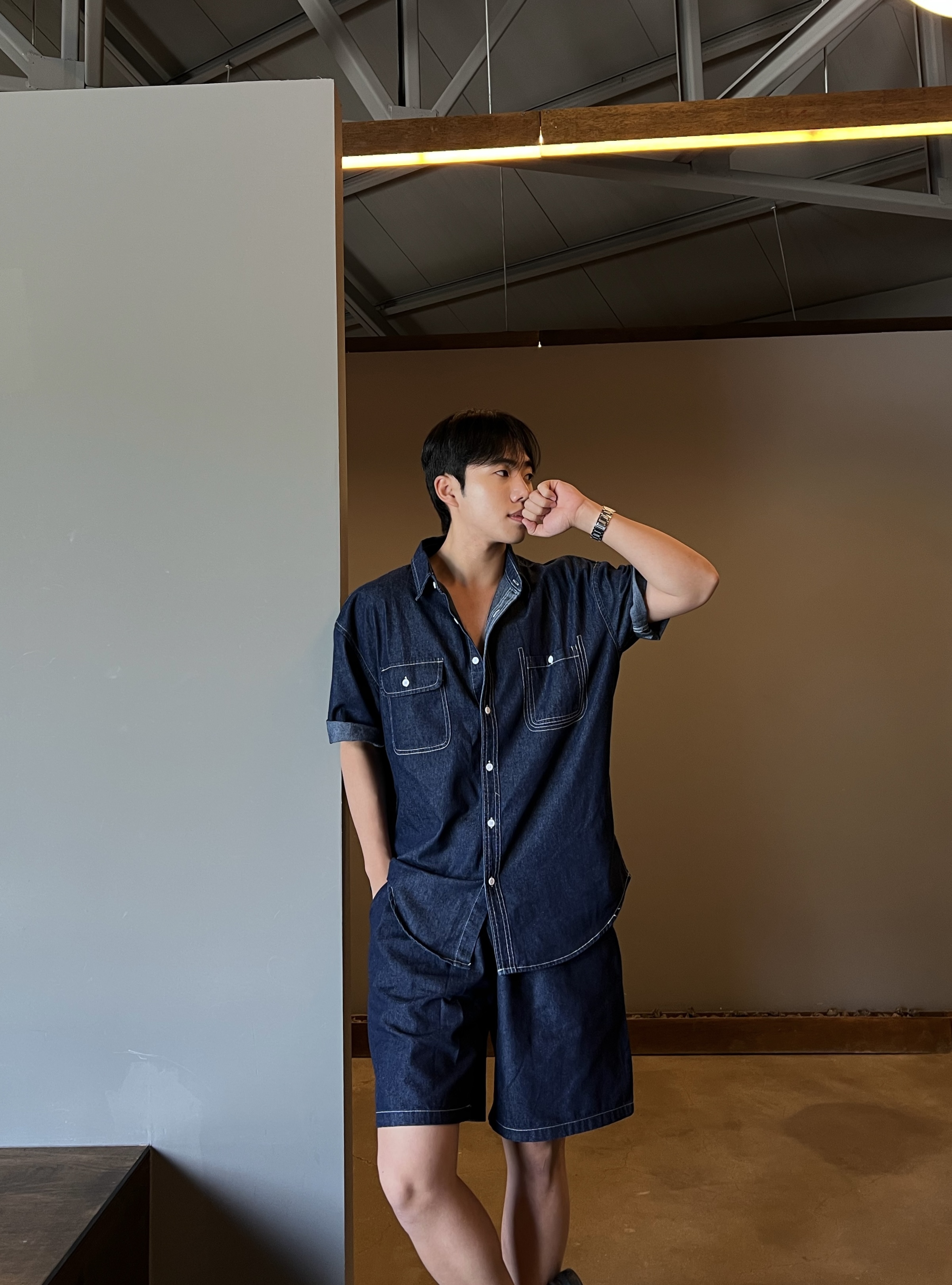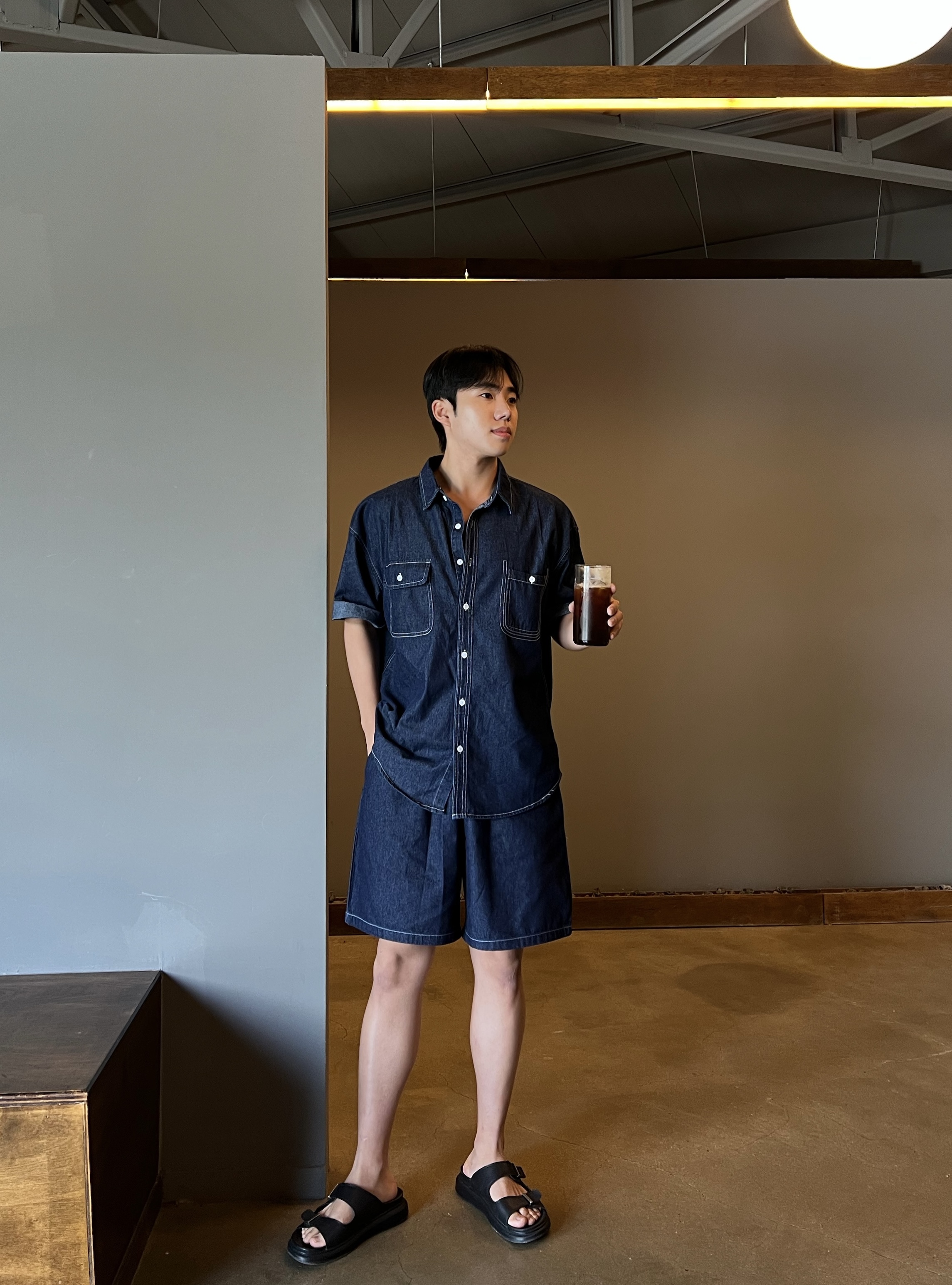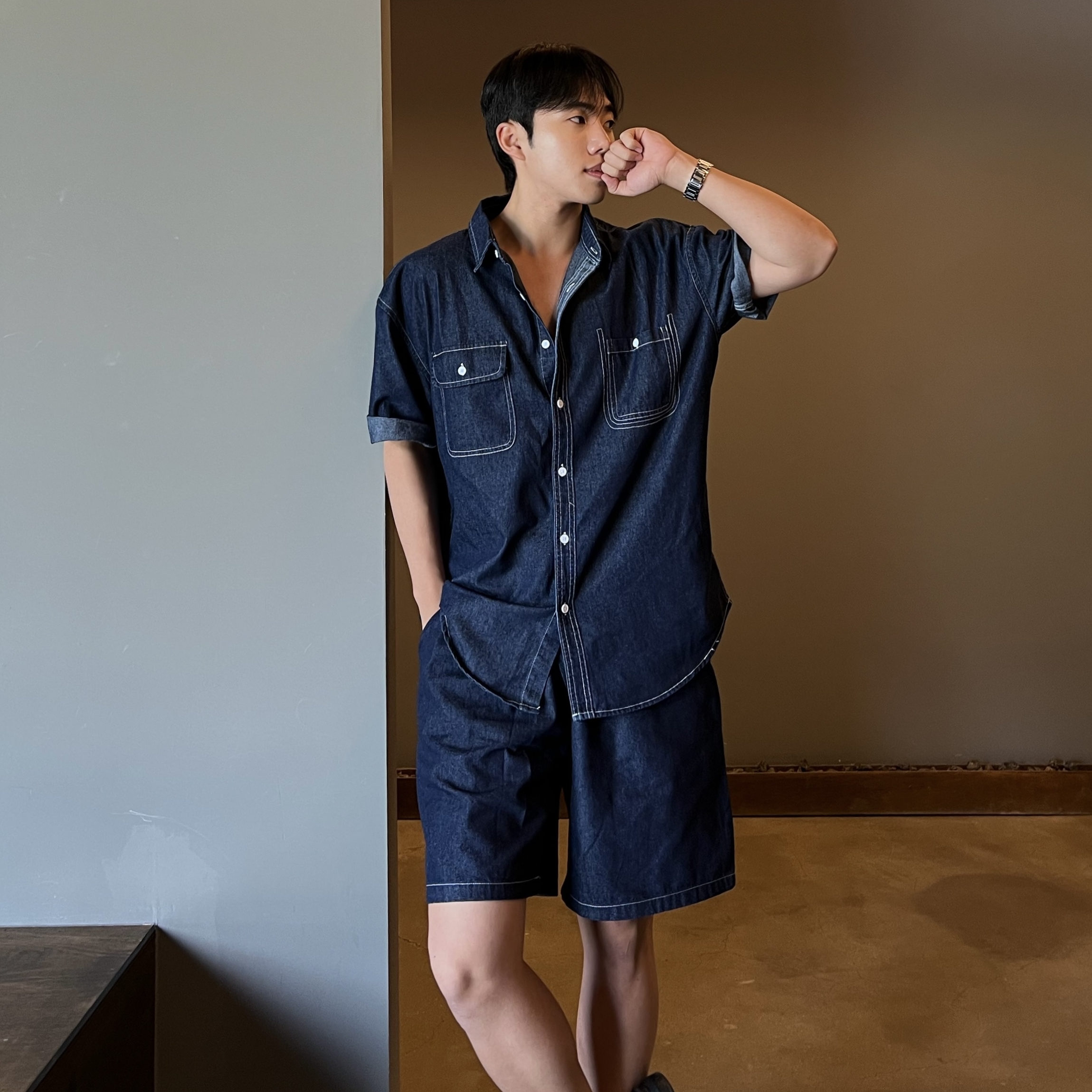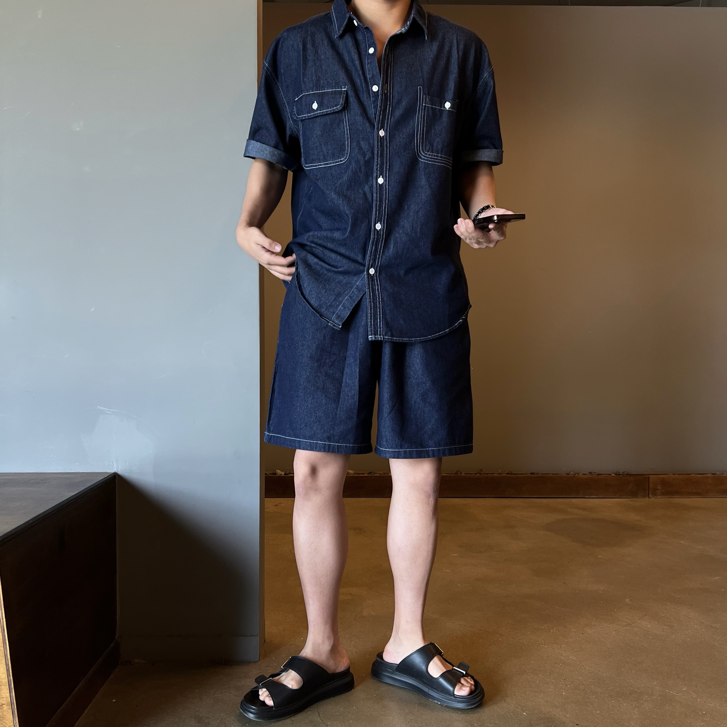 - 트렌디한 올데님 셋업 스타일 데님 원단으로 제작되어 감각적인 셋업 연출 가능
