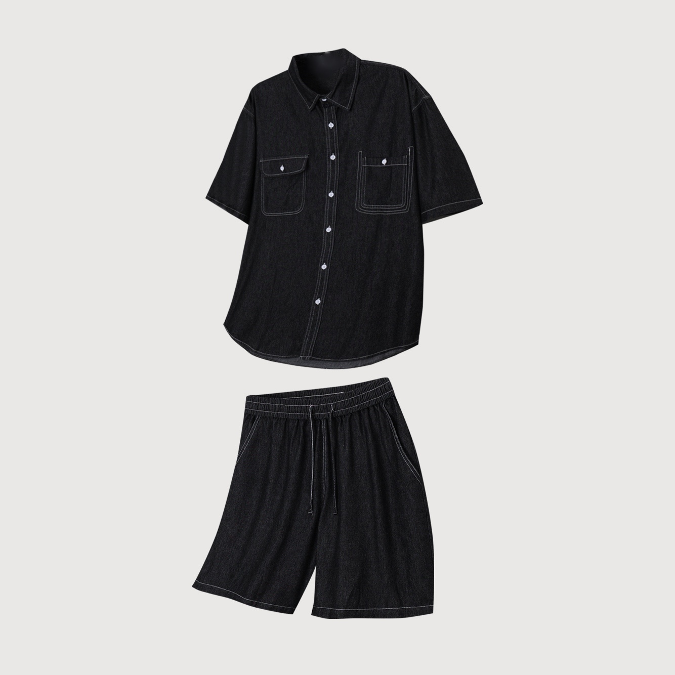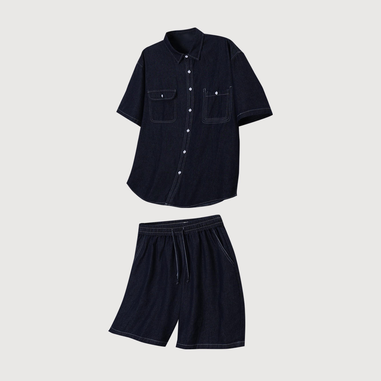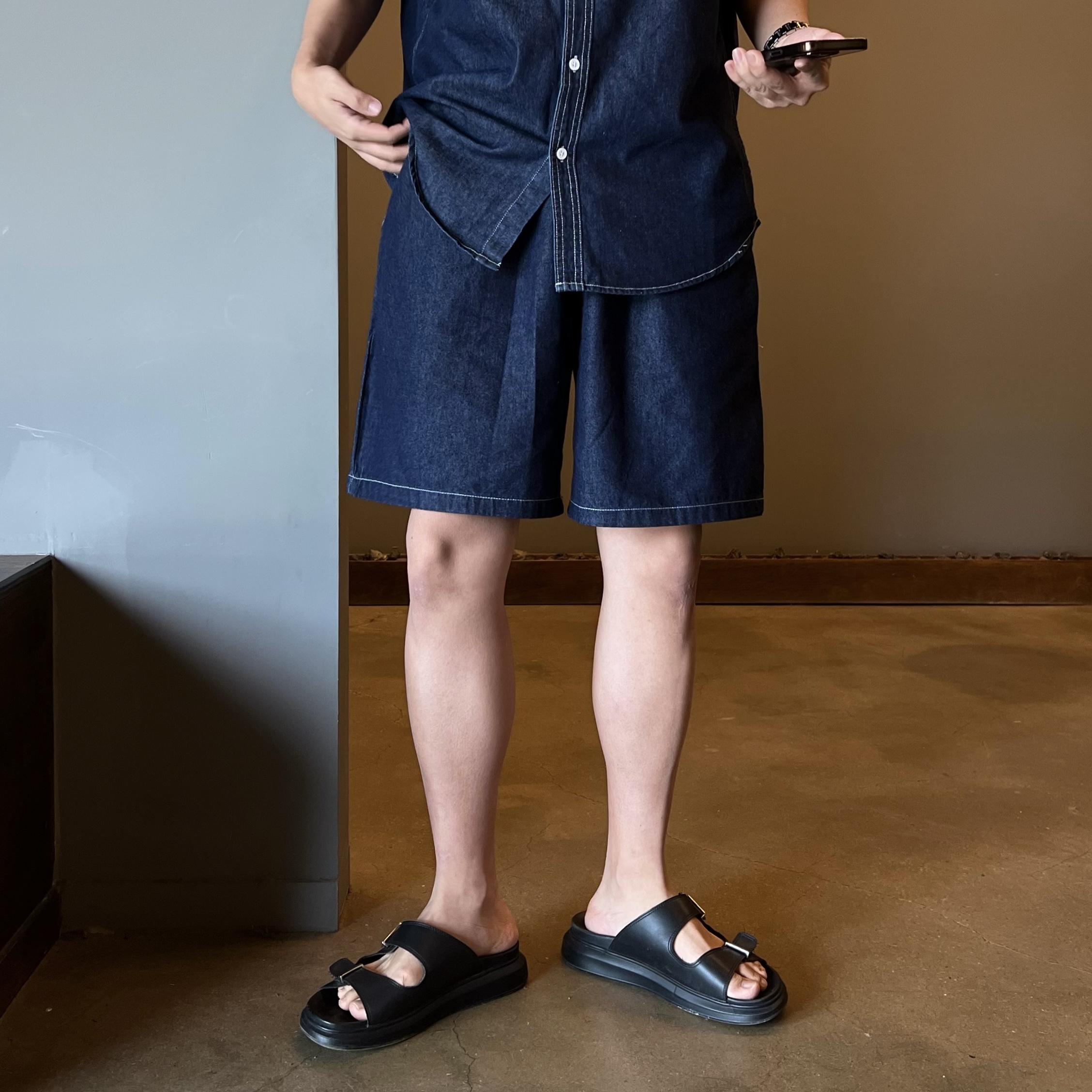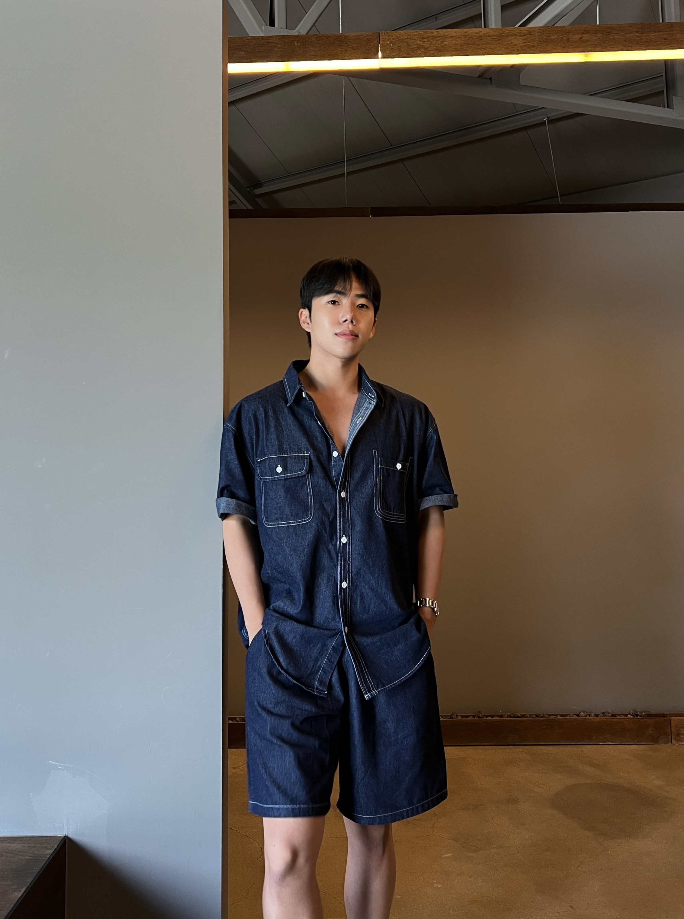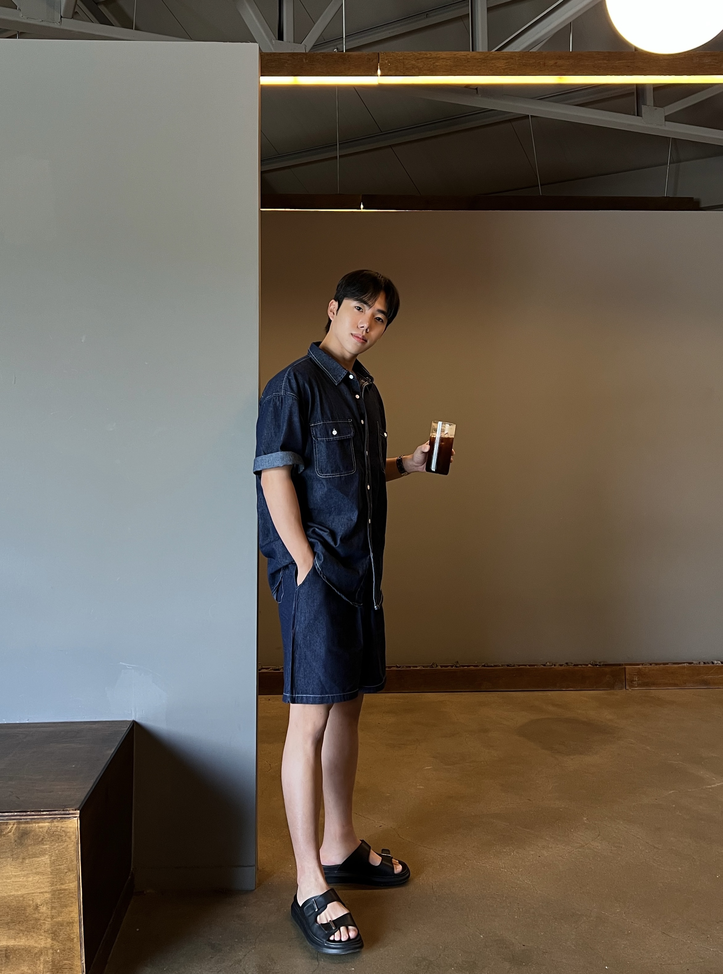 - 트렌디한 올데님 셋업 스타일 데님 원단으로 제작되어 감각적인 셋업 연출 가능