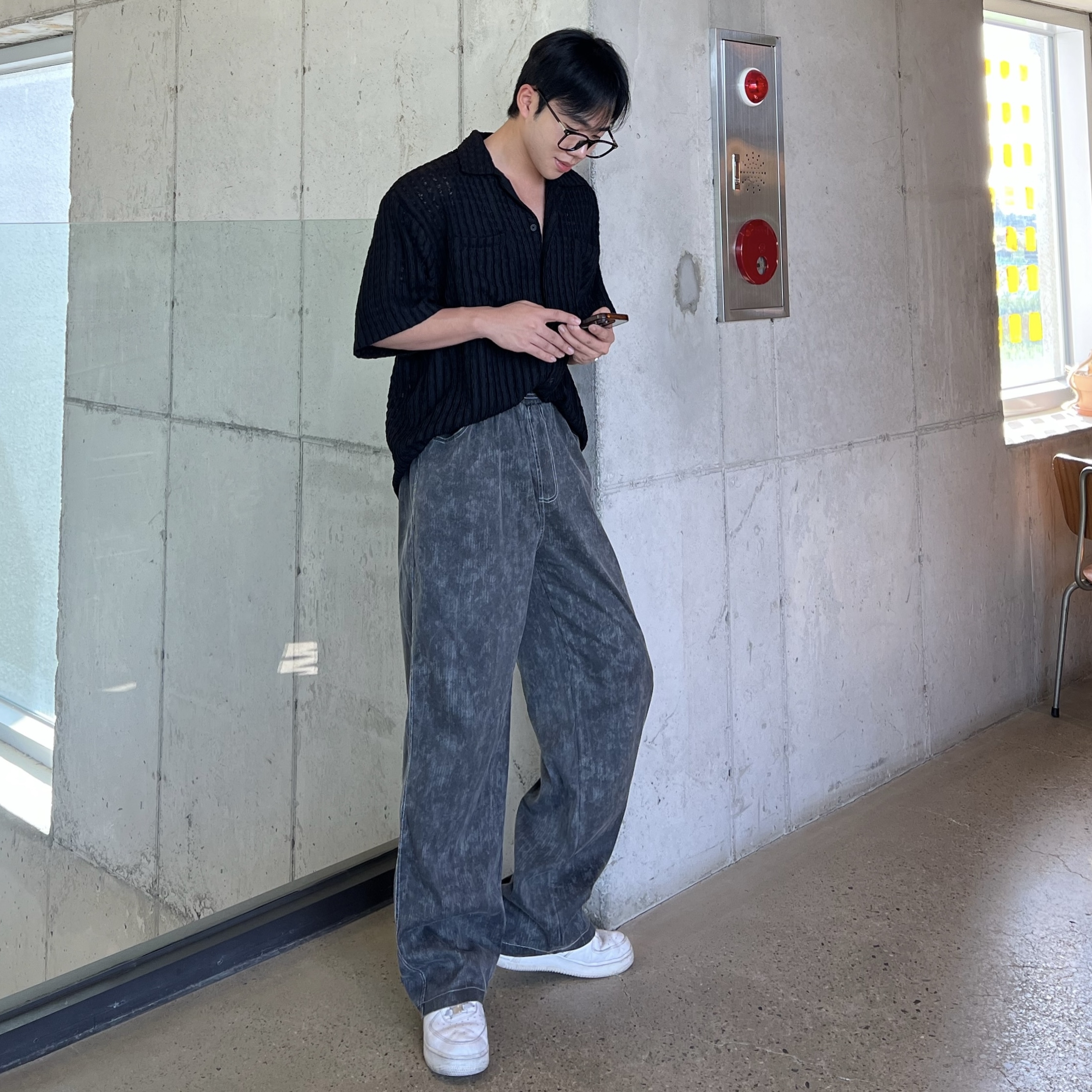 [1+1] 니셀 피그먼트 워싱 밴딩 와이드 팬츠 (3color)