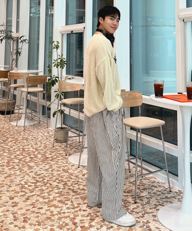 - 선명한 세로 스트라이프가 시각적으로 다리를 길어 보이게 연출하며, 클래식하면서도 감각적인 인상을 부여