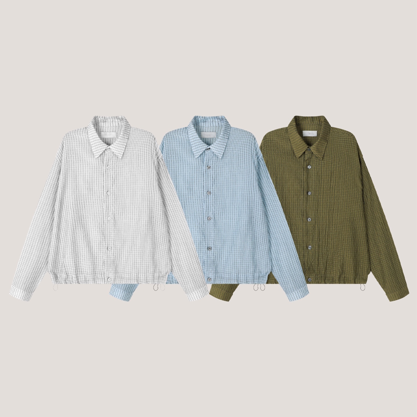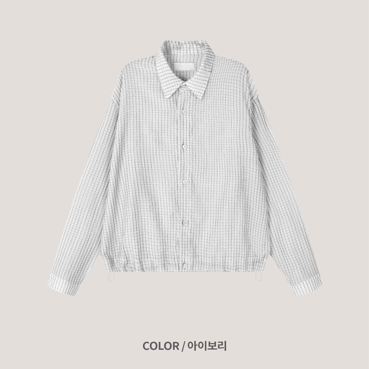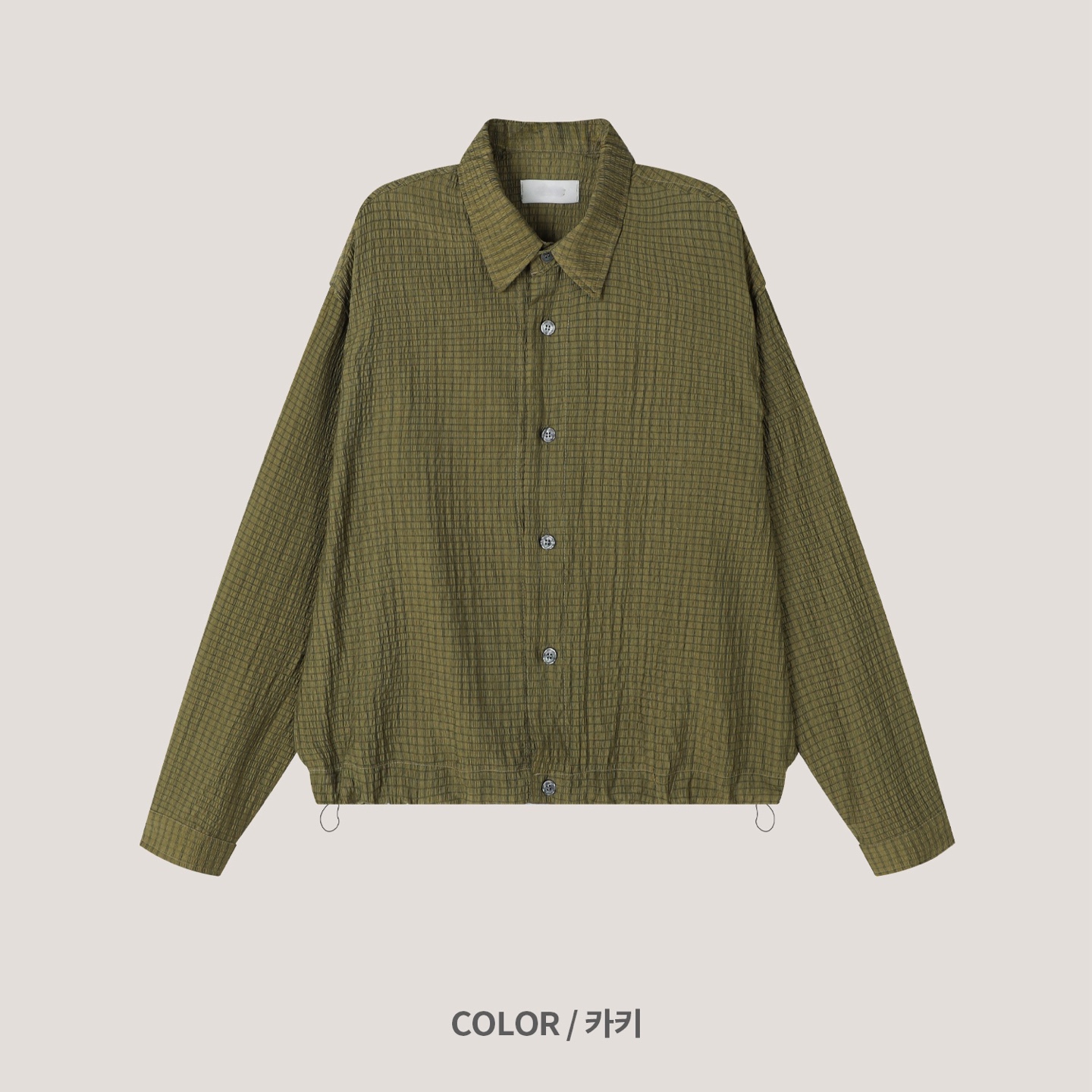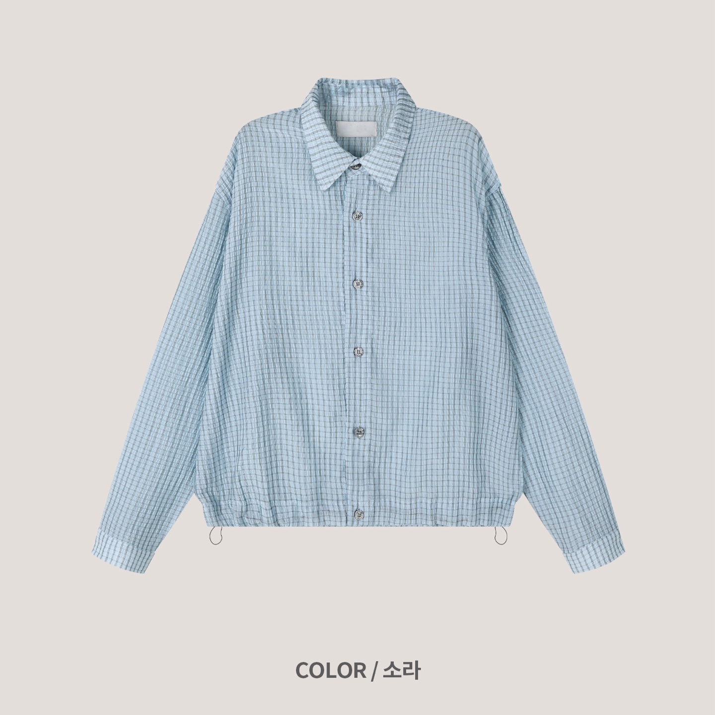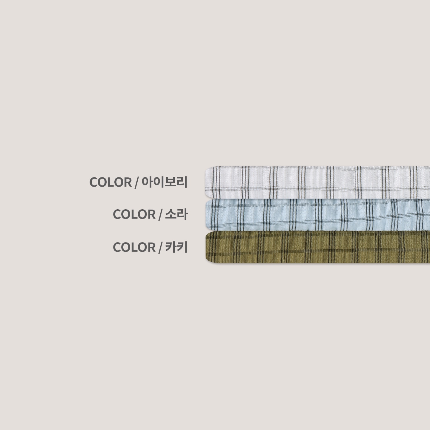 - 가볍고 드라이한 터치감의 크링클 체크 원단으로 제작되어 여름철에도 쾌적하게 착용 가능