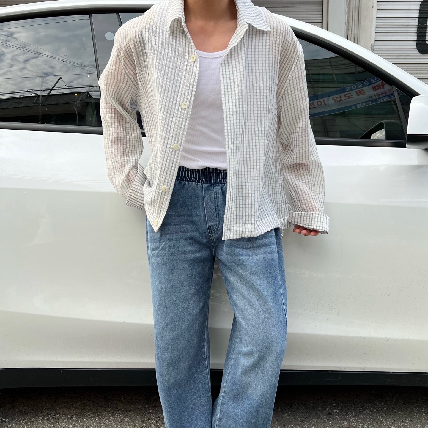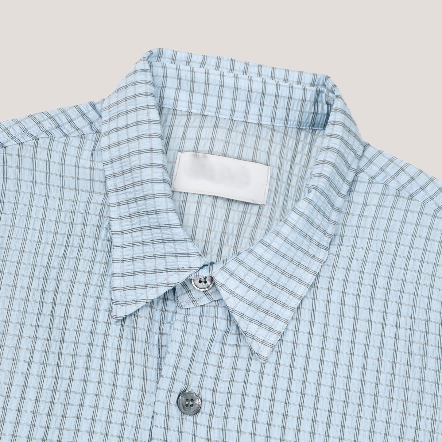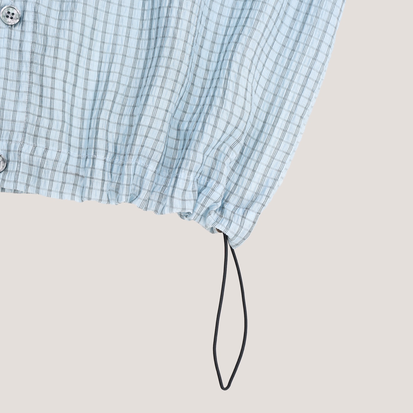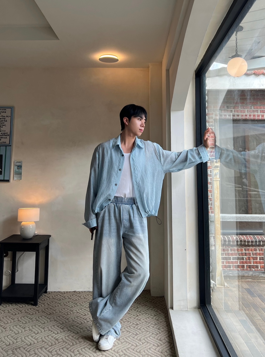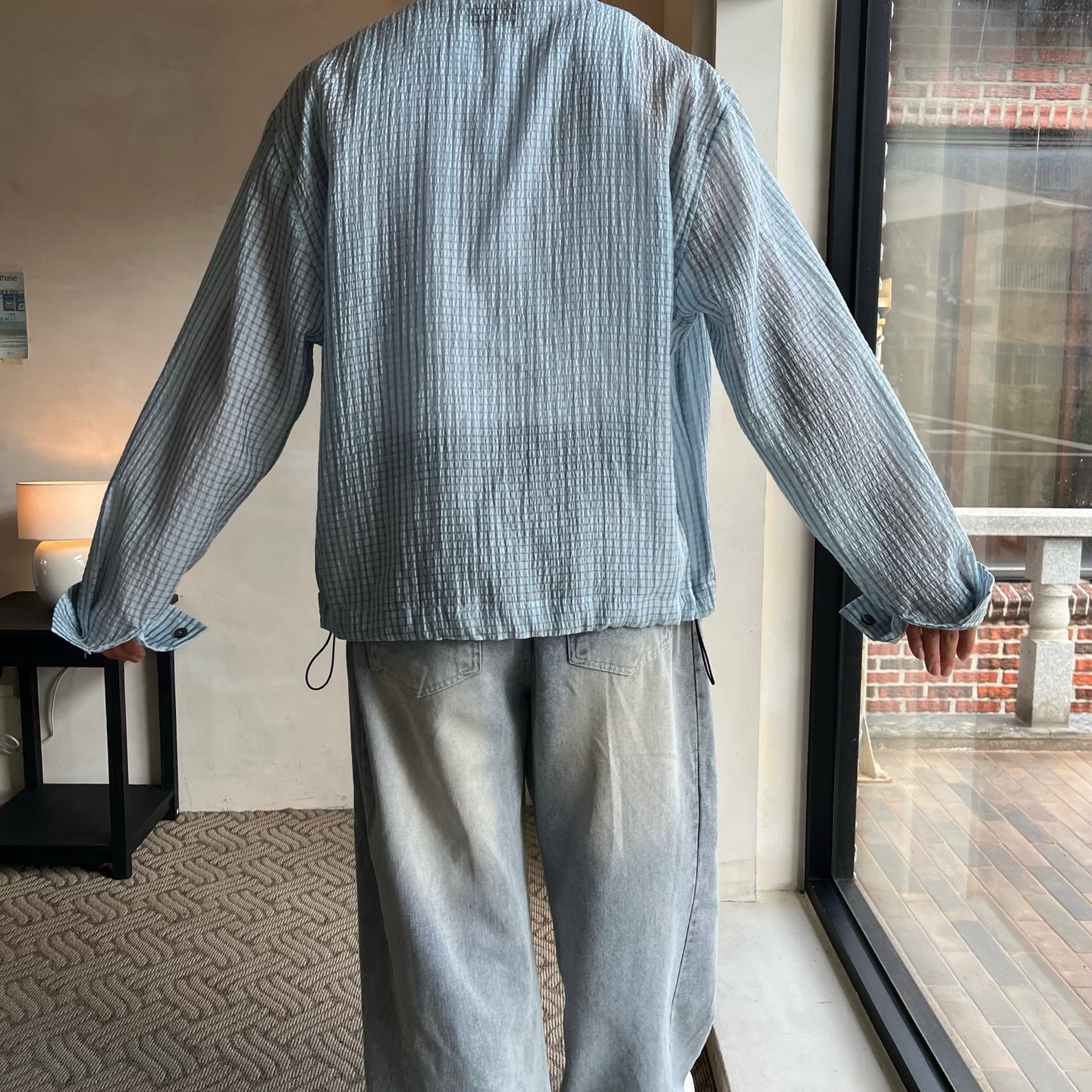 - 가볍고 드라이한 터치감의 크링클 체크 원단으로 제작되어 여름철에도 쾌적하게 착용 가능