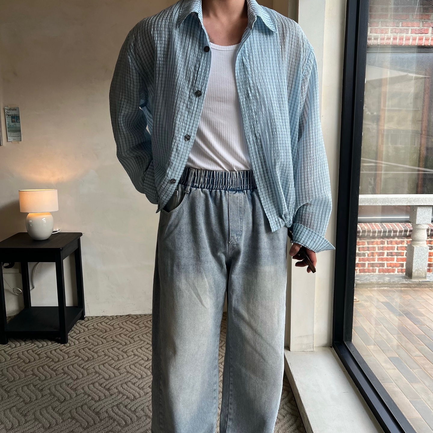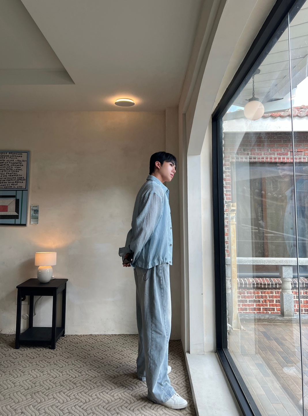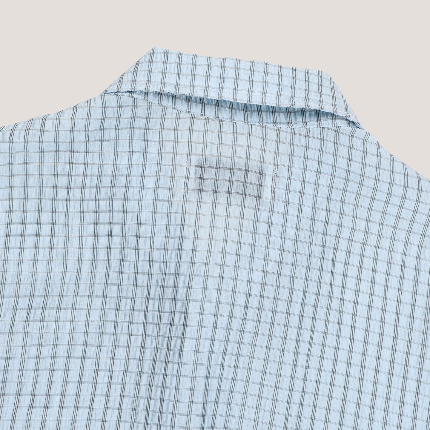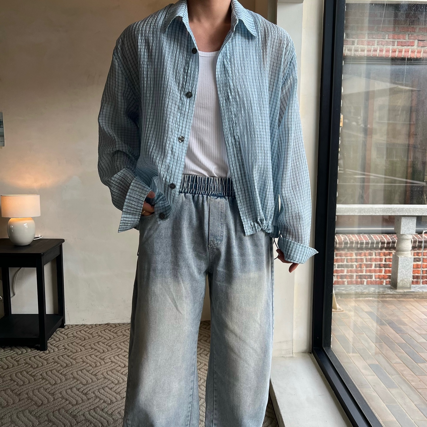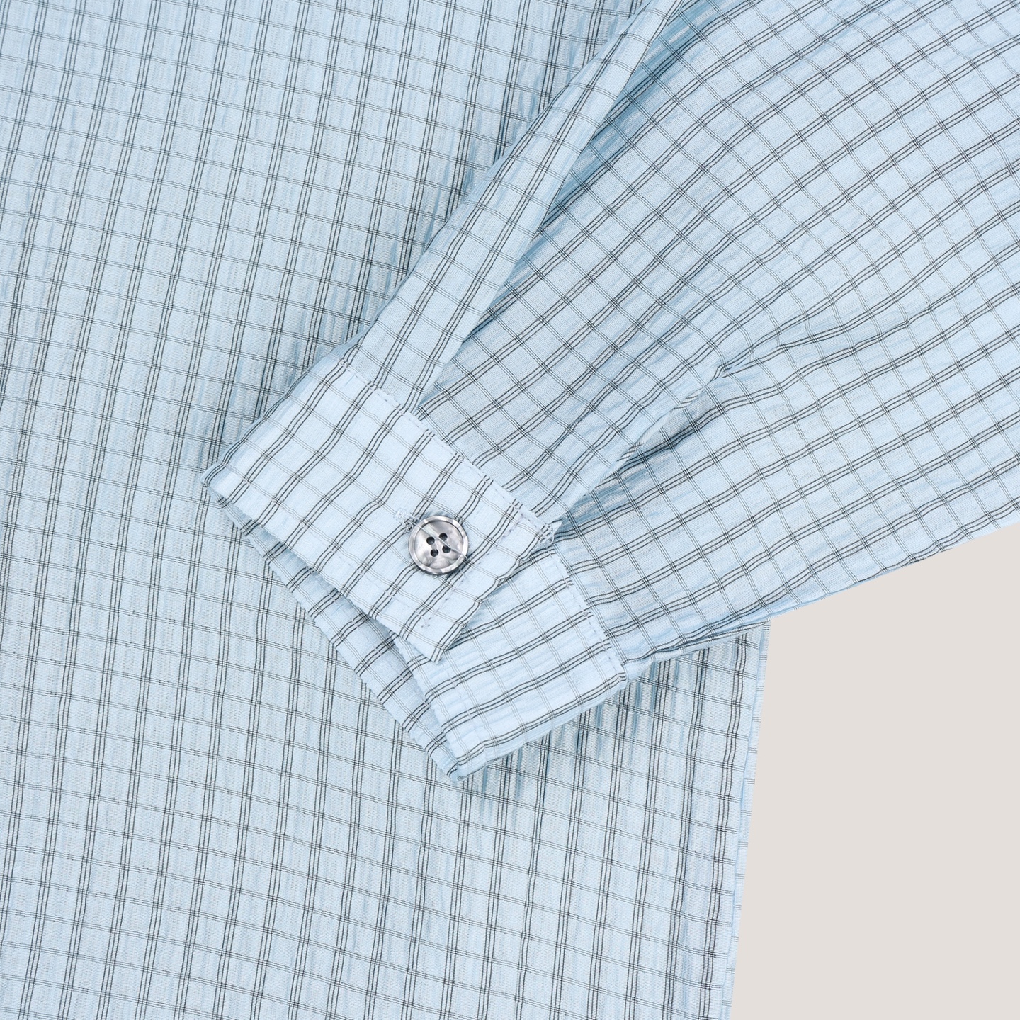 - 가볍고 드라이한 터치감의 크링클 체크 원단으로 제작되어 여름철에도 쾌적하게 착용 가능